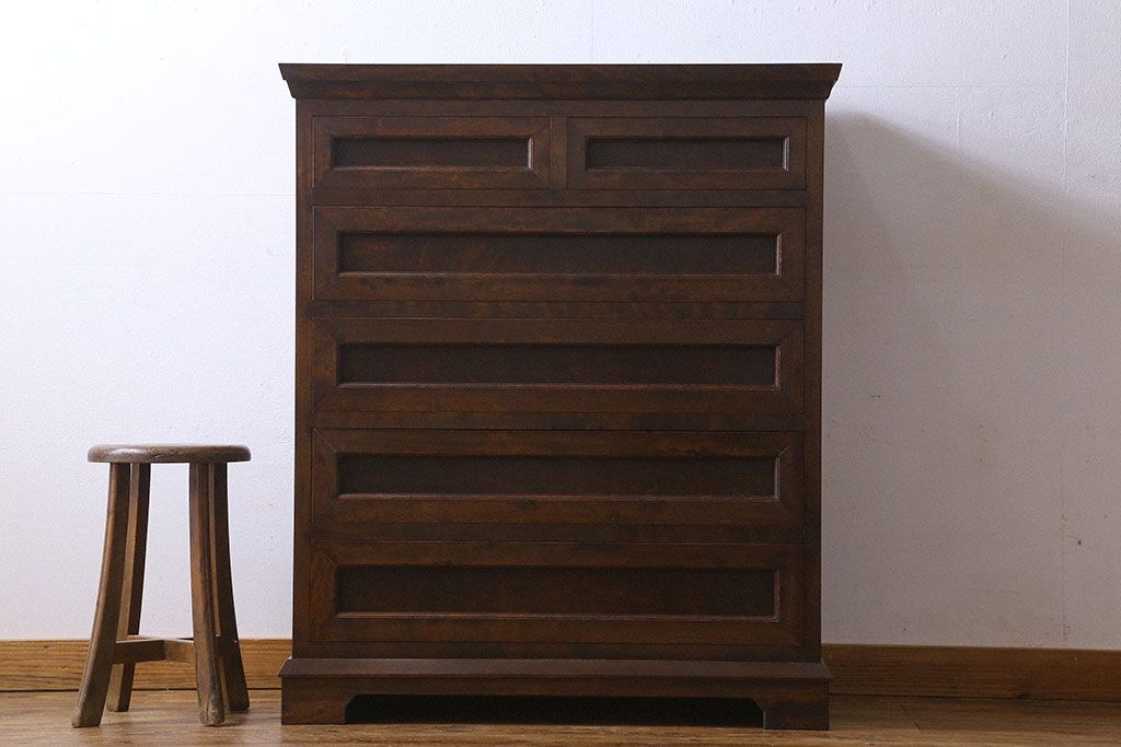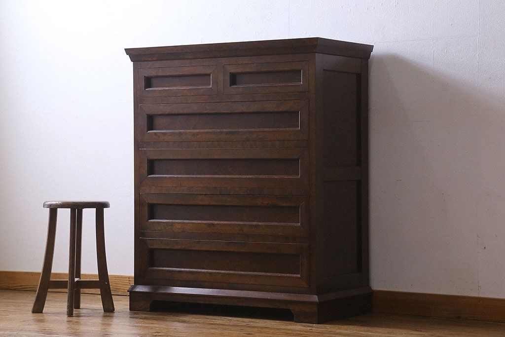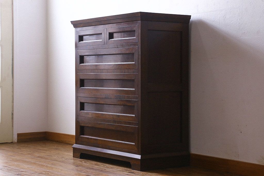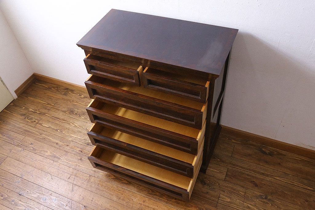 中古 松本民芸家具 503型 直線のデザインが目を引く整理箪笥(引き出し、衣装箪笥、チェスト)(定価約28万円)