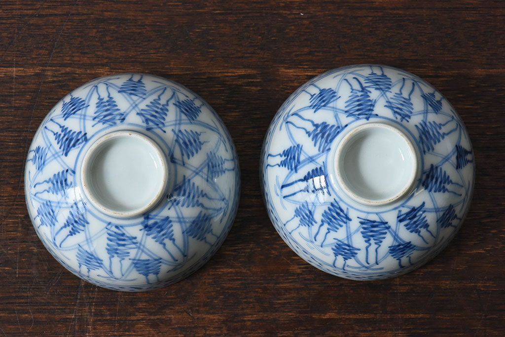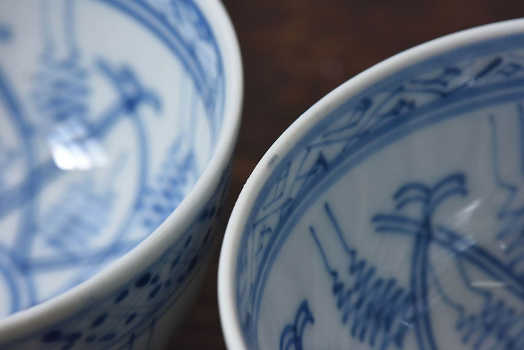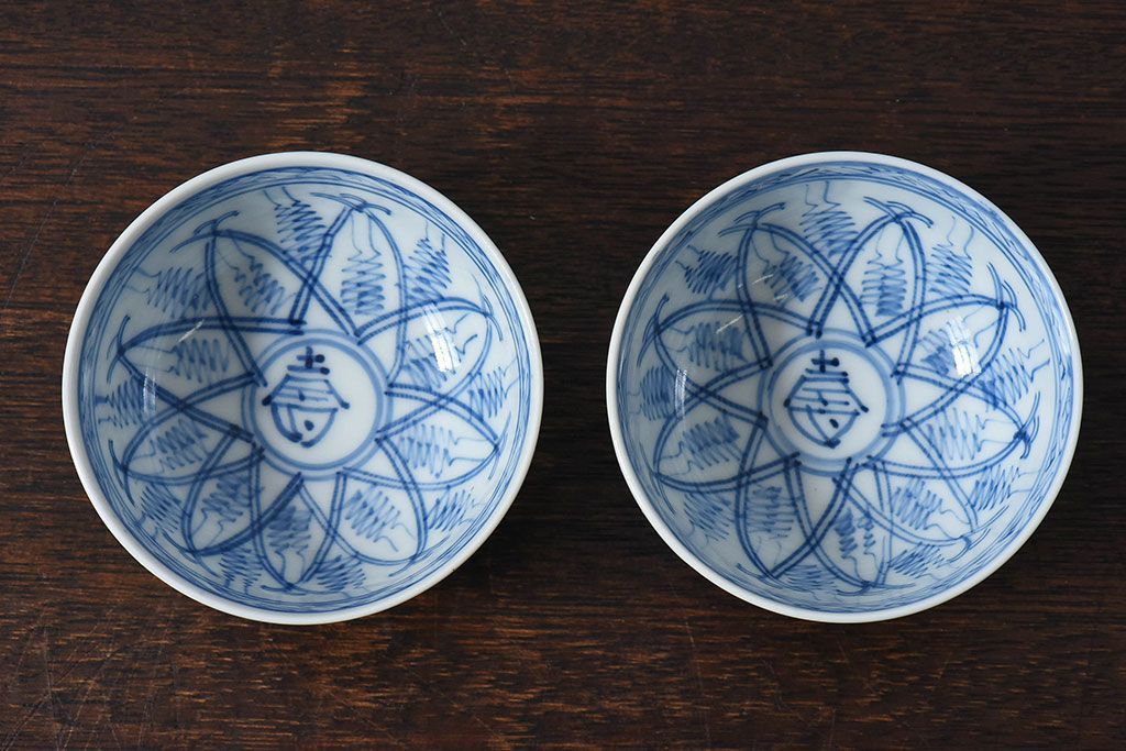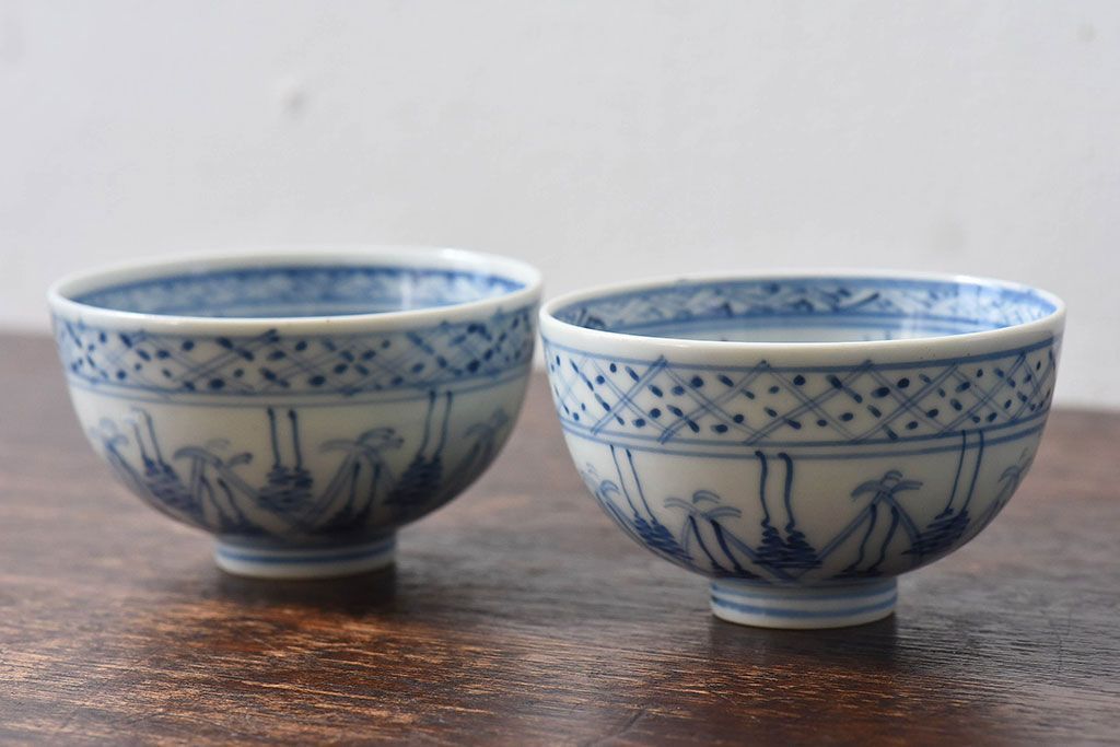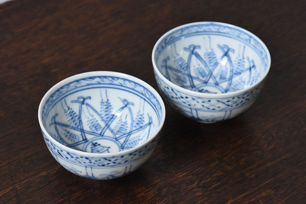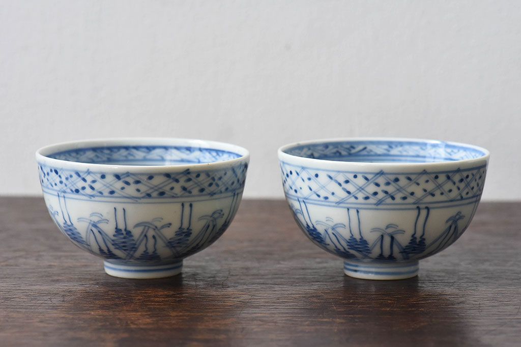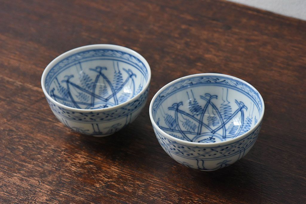 ラフジュ工房> 和食器・茶道具> お椀・茶碗 > 大正昭和初期 染付 アンティーク湯呑(茶碗)2客セット