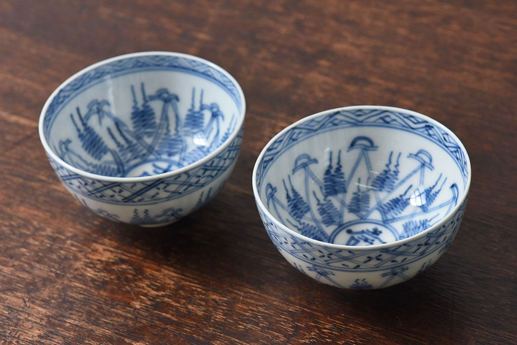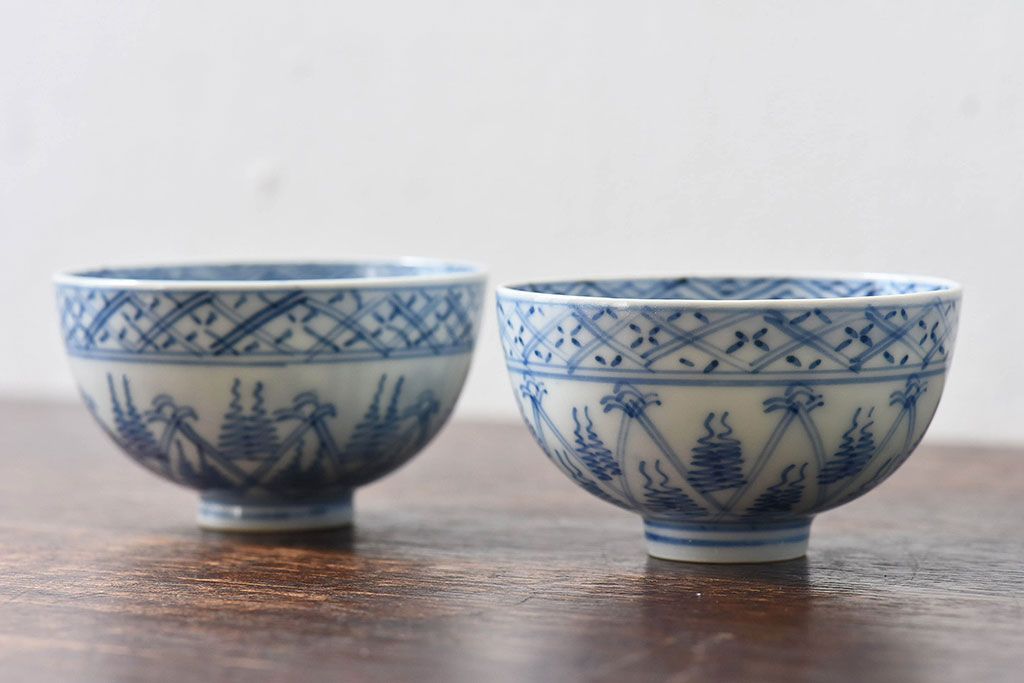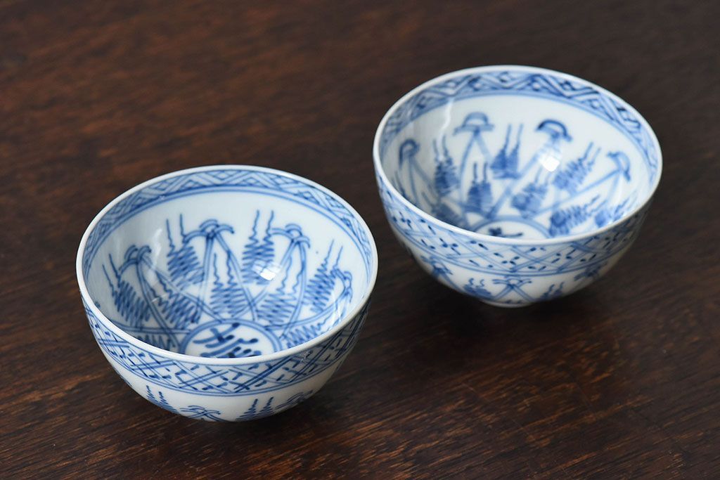ラフジュ工房> 和食器・茶道具> 急須・湯吞み > 大正昭和初期 染付 アンティーク湯呑(茶碗)2客セット(2)