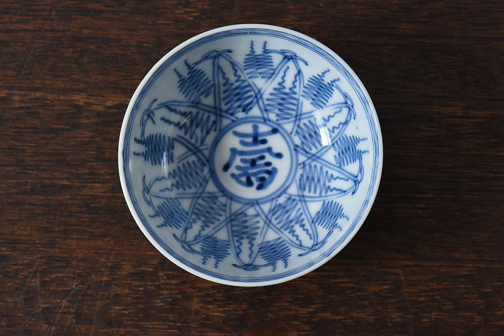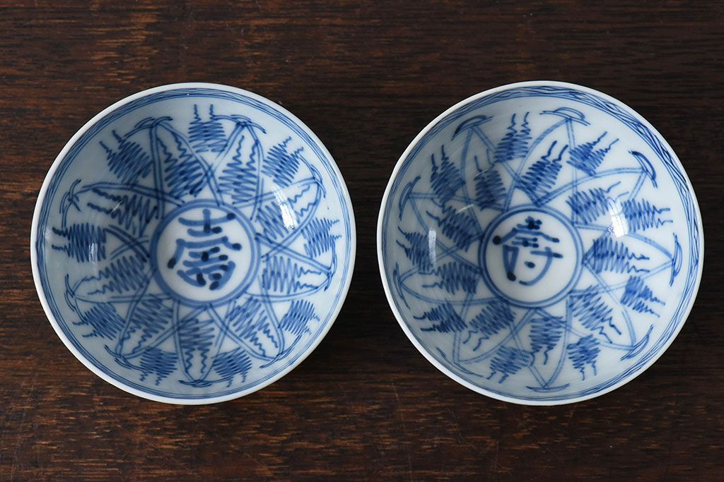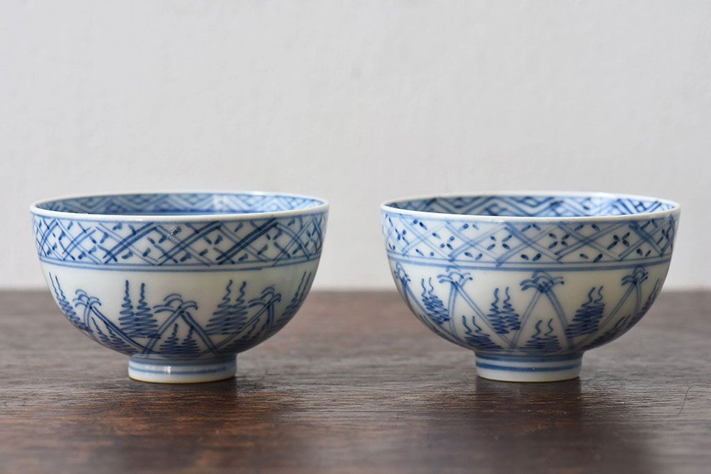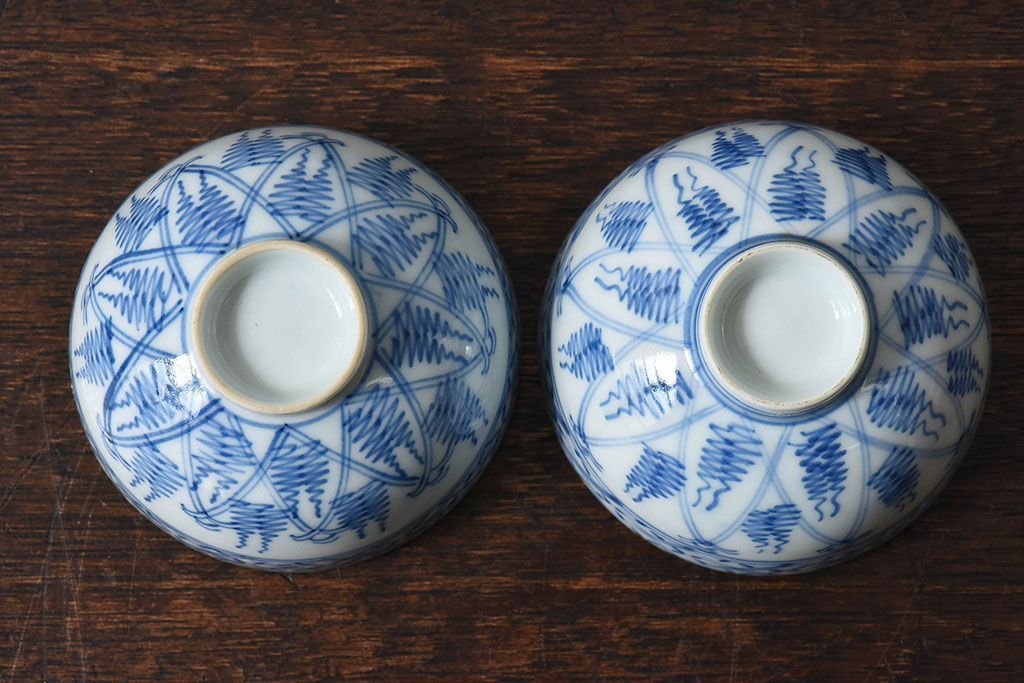 ラフジュ工房> 和食器・茶道具> お椀・茶碗 > 大正昭和初期 染付 アンティーク湯呑(茶碗)2客セット(2)