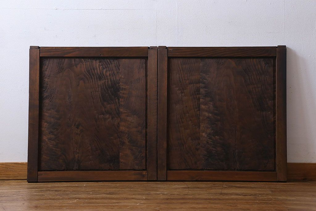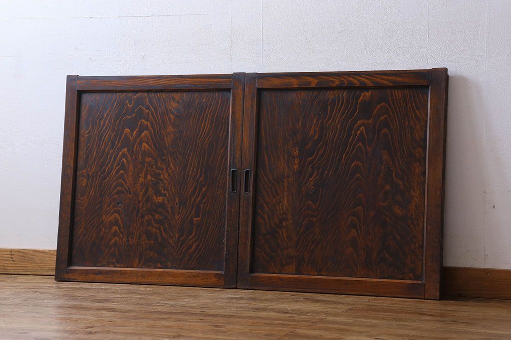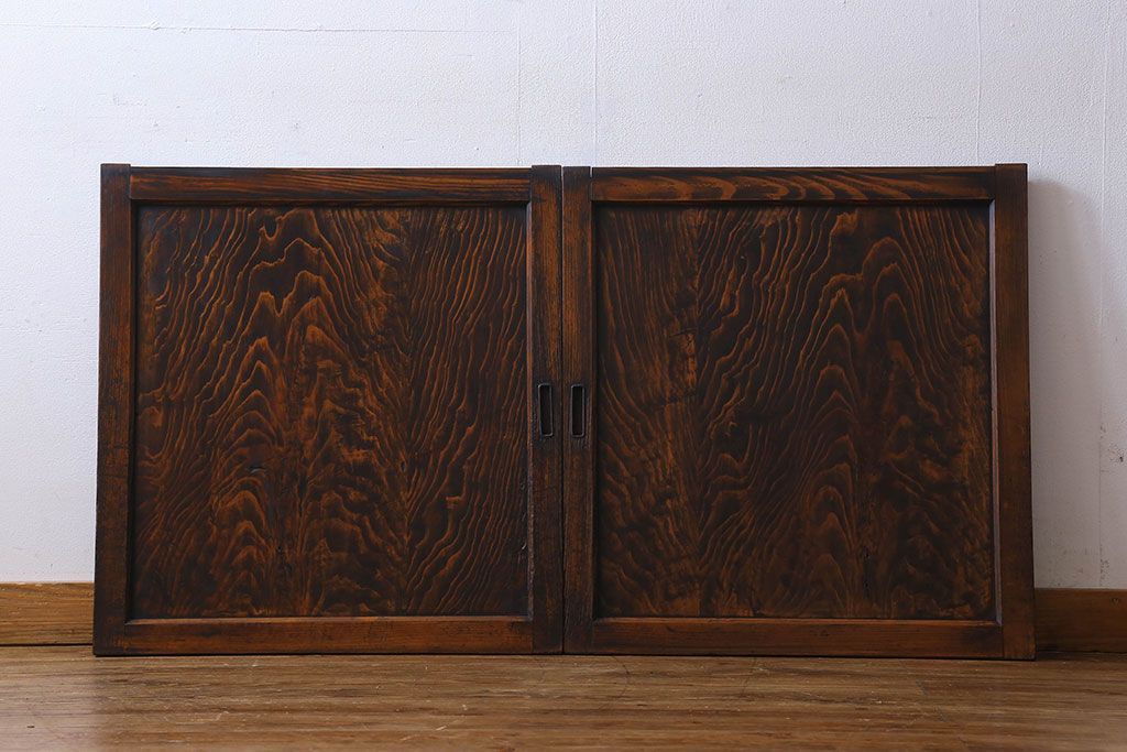 和製アンティーク 杢目が印象的な杉材一枚板の板戸(窓、引き戸)2枚組(1)