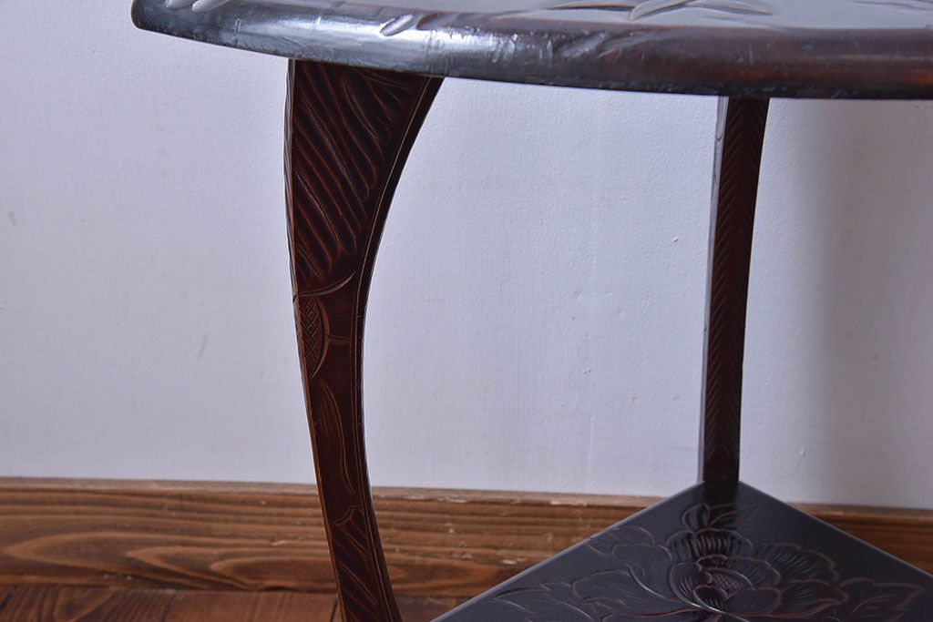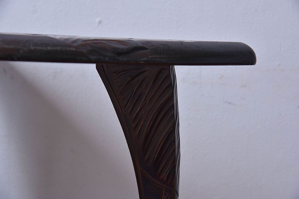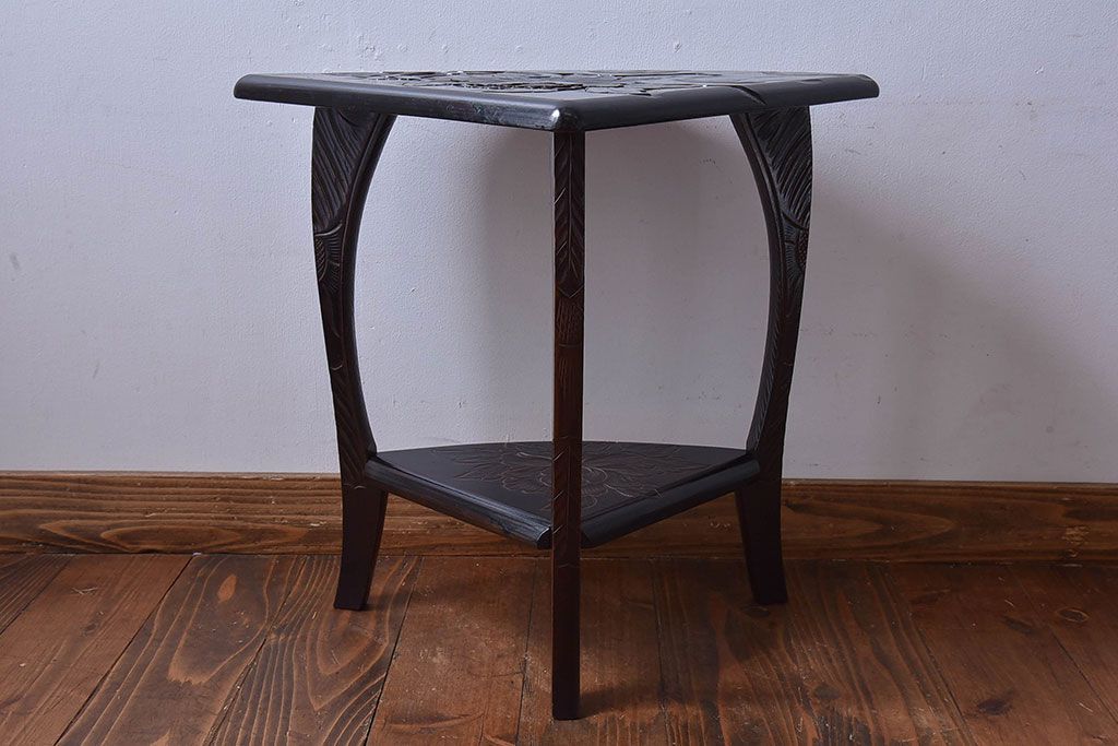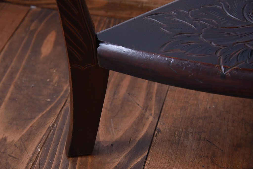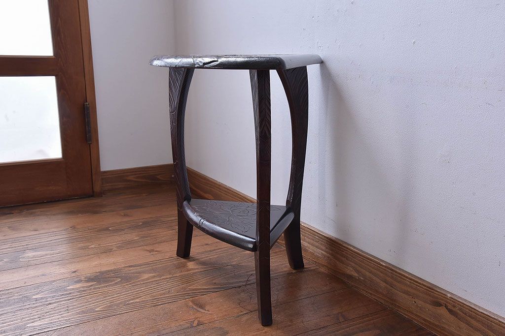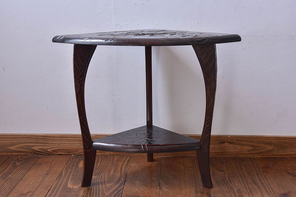 花台・飾り台 > アンティーク雑貨 伝統工芸 軽井沢彫りの小振りなビンテージコーナーラック(隅棚、飾り棚)