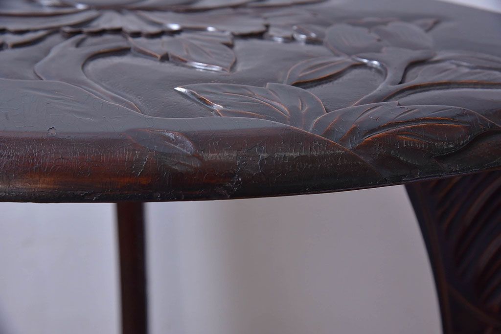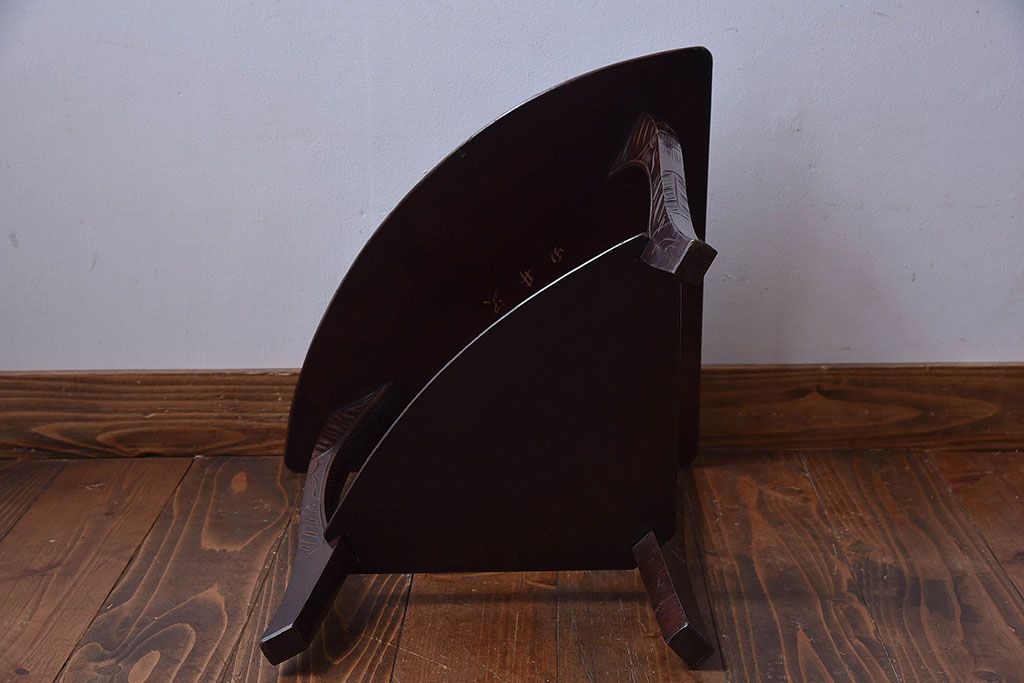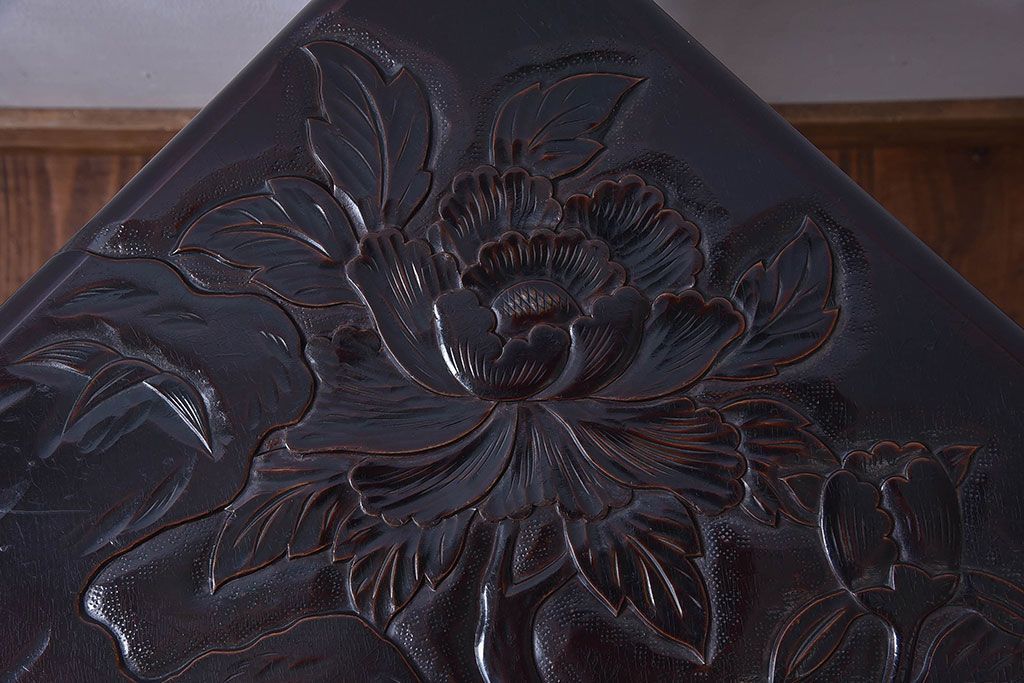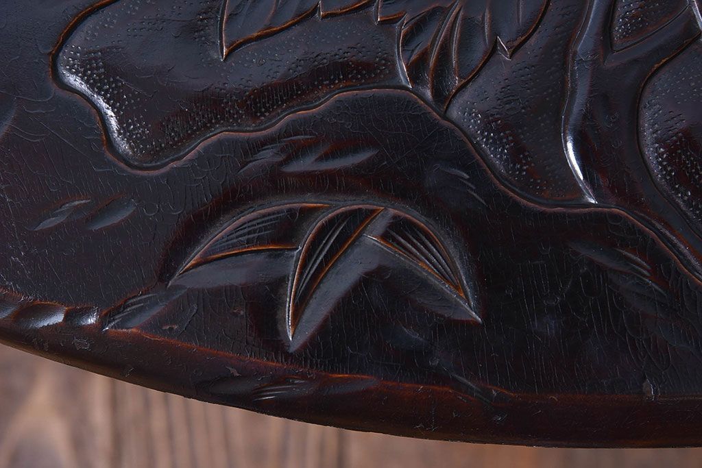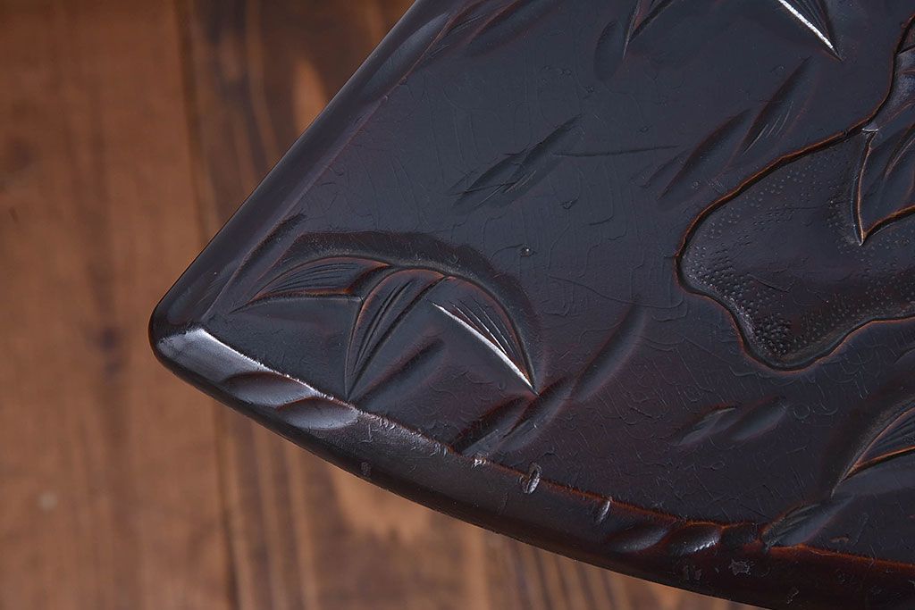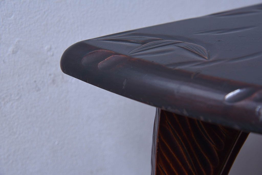 花台・飾り台 > アンティーク雑貨 伝統工芸 軽井沢彫りの小振りなビンテージコーナーラック(隅棚、飾り棚)