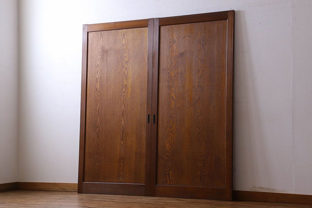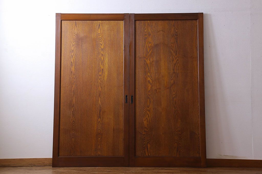 昭和レトロ 鏡板タモ材 味わいのある木味の板戸(引き戸、建具)