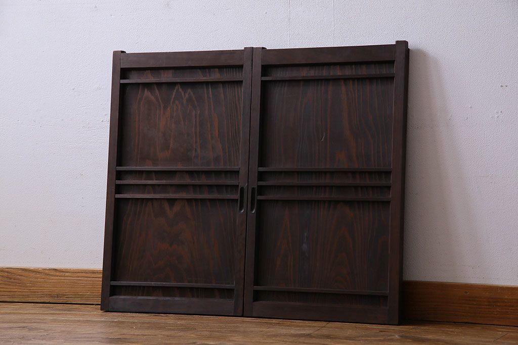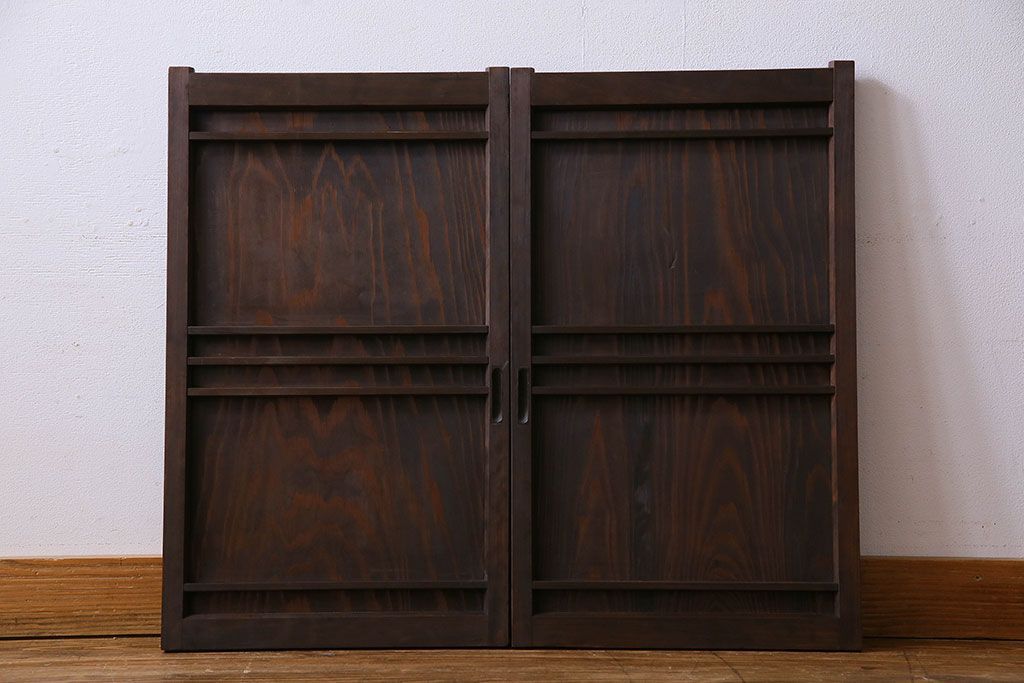 杉材の杢目が味のある横桟入りアンティーク板戸(窓、引き戸)2枚です。
