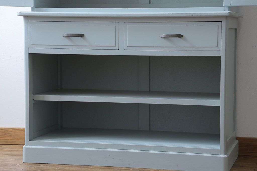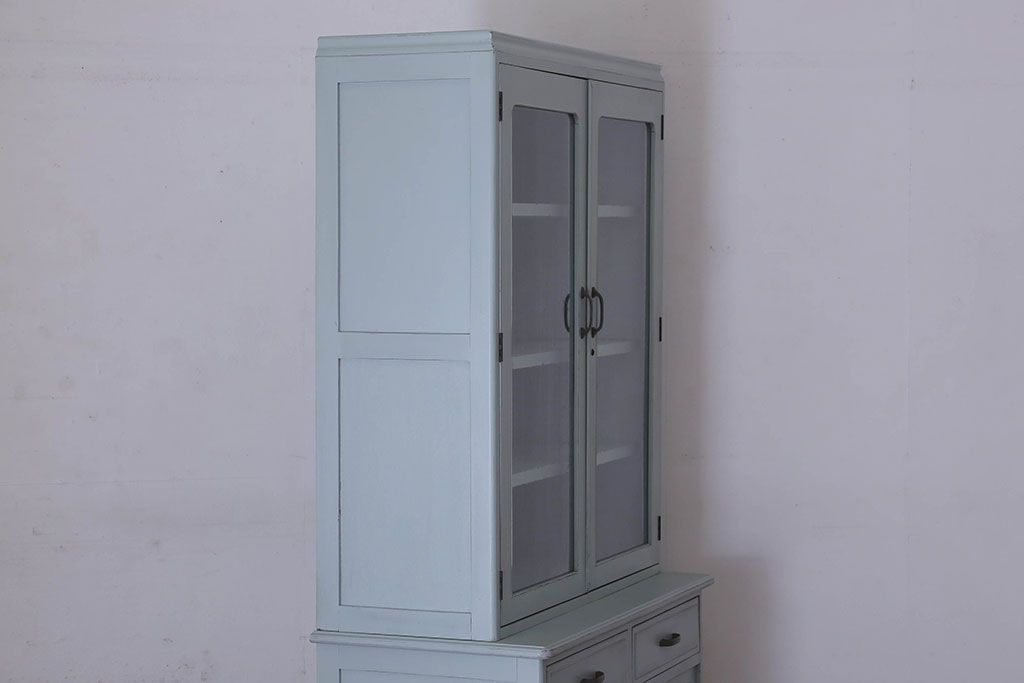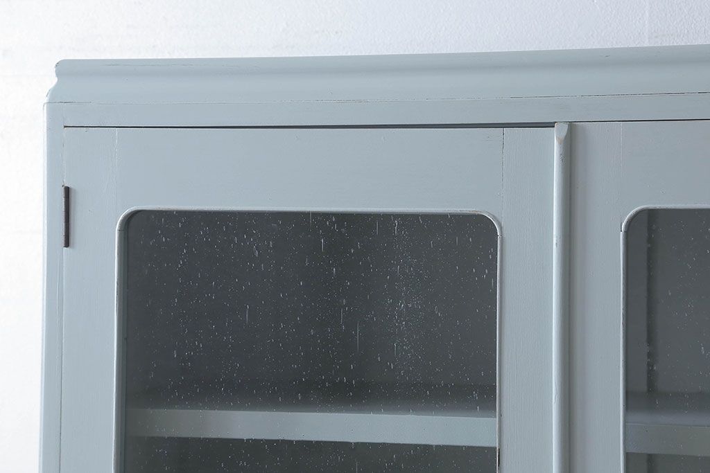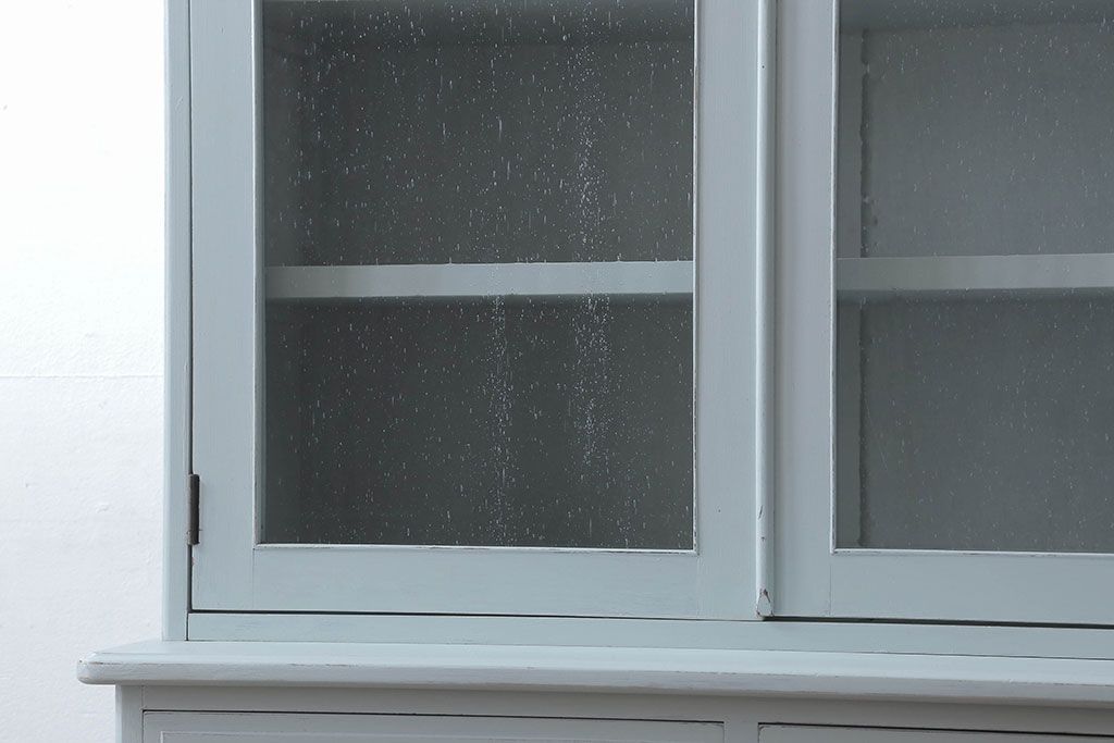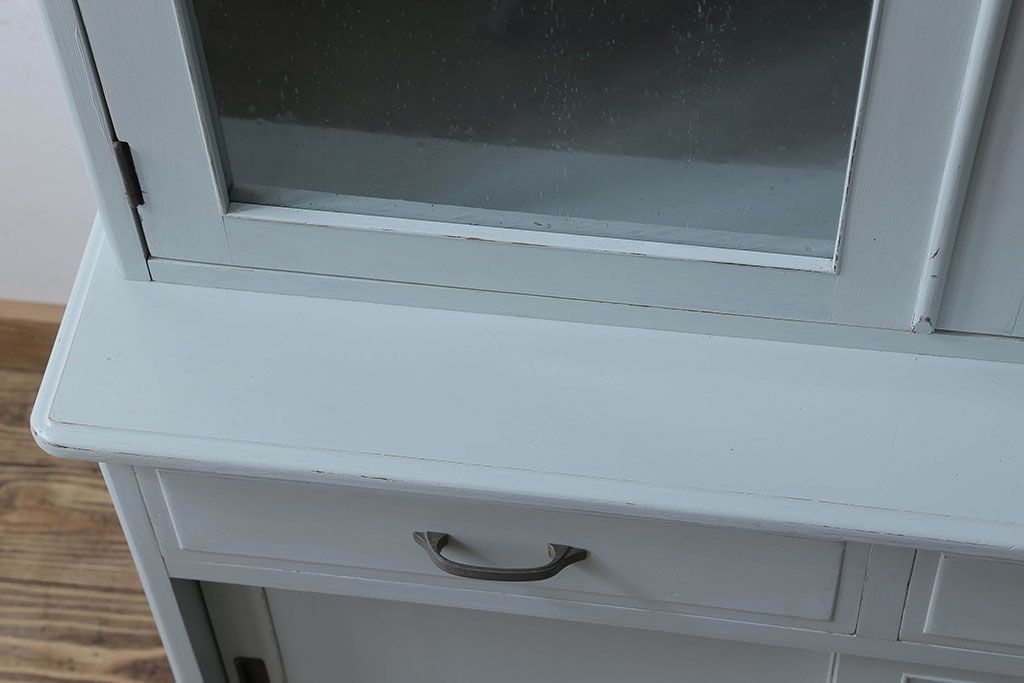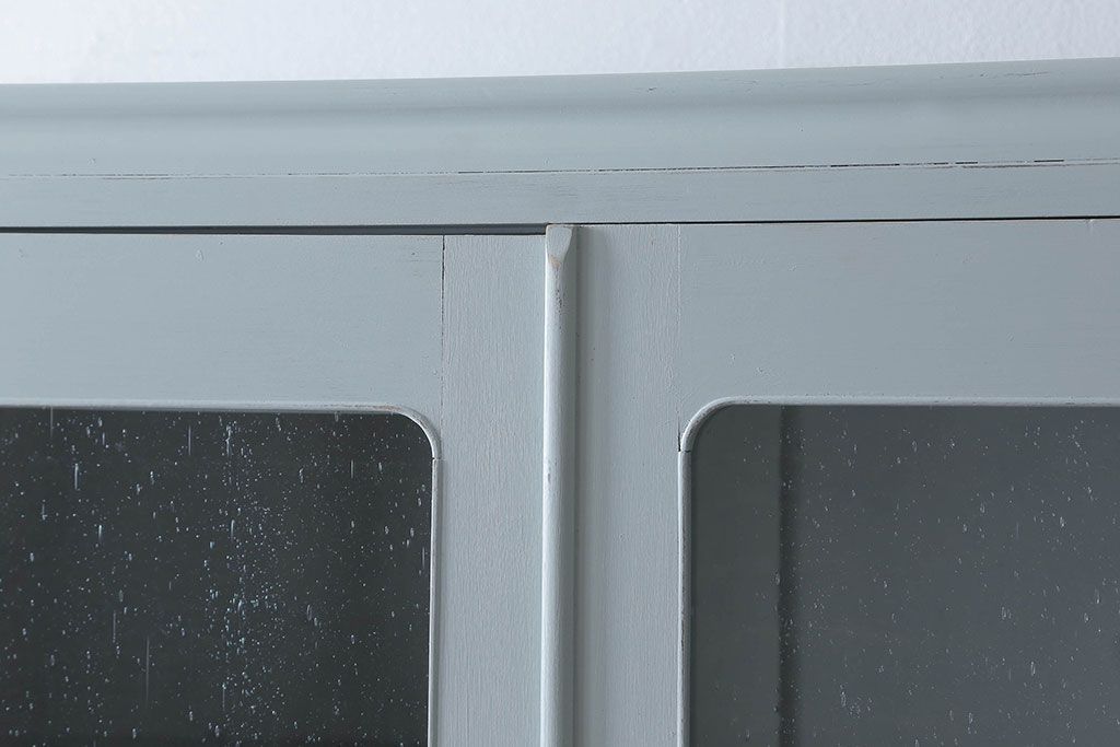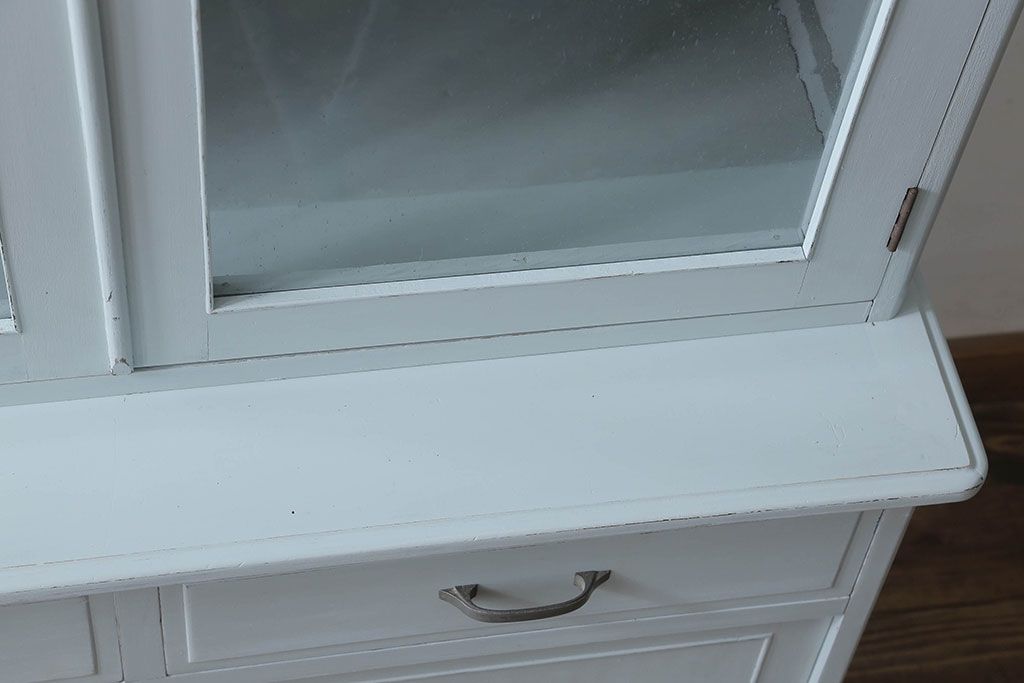 ペイント家具 気泡ガラスがお洒落なナチュラルカラーの食器棚(収納棚、戸棚、飾り棚)