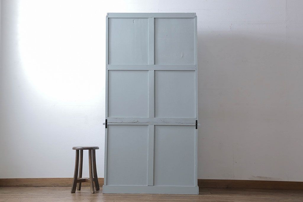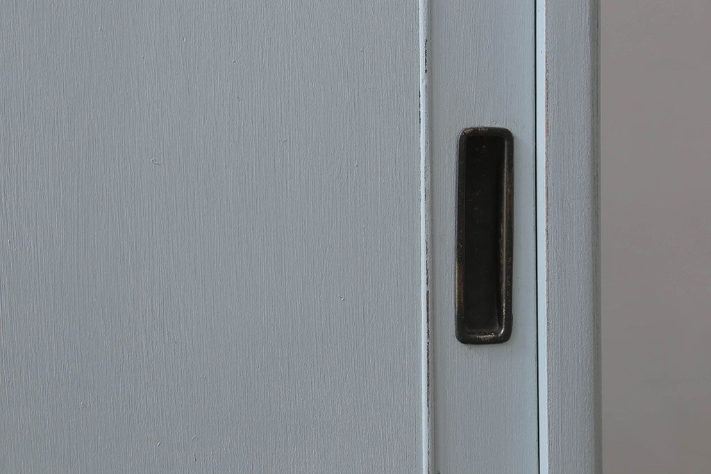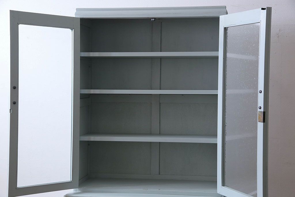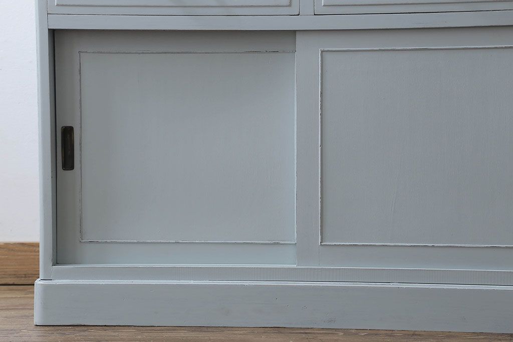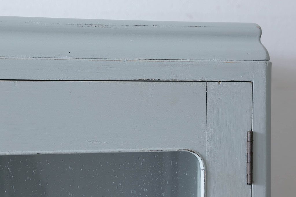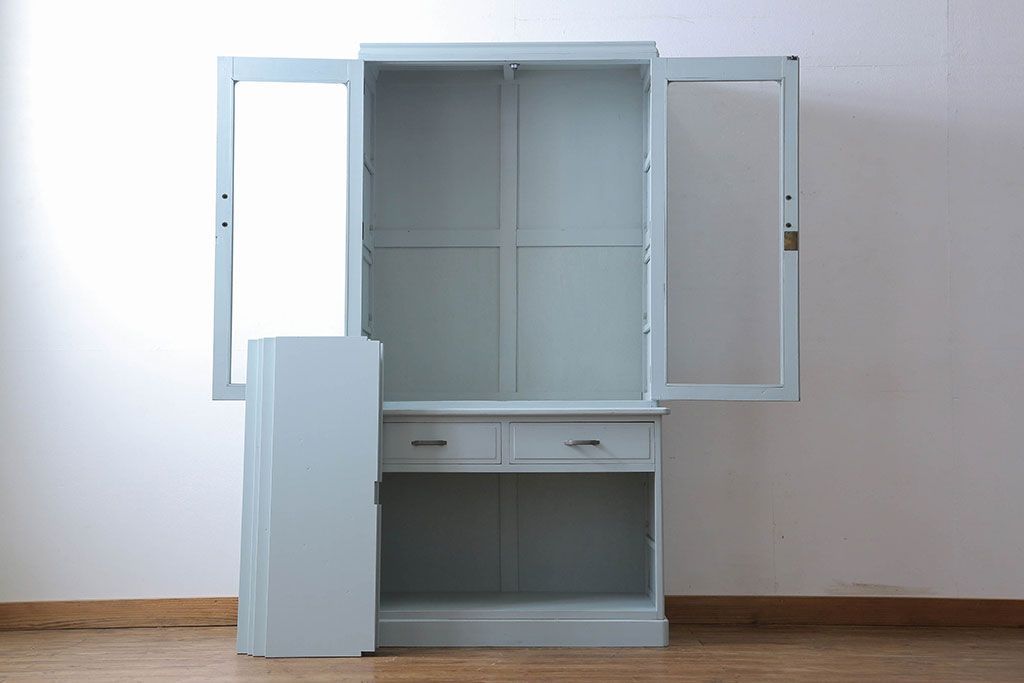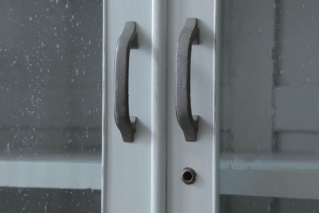 ペイント家具 気泡ガラスがお洒落なナチュラルカラーの食器棚(収納棚、戸棚、飾り棚)