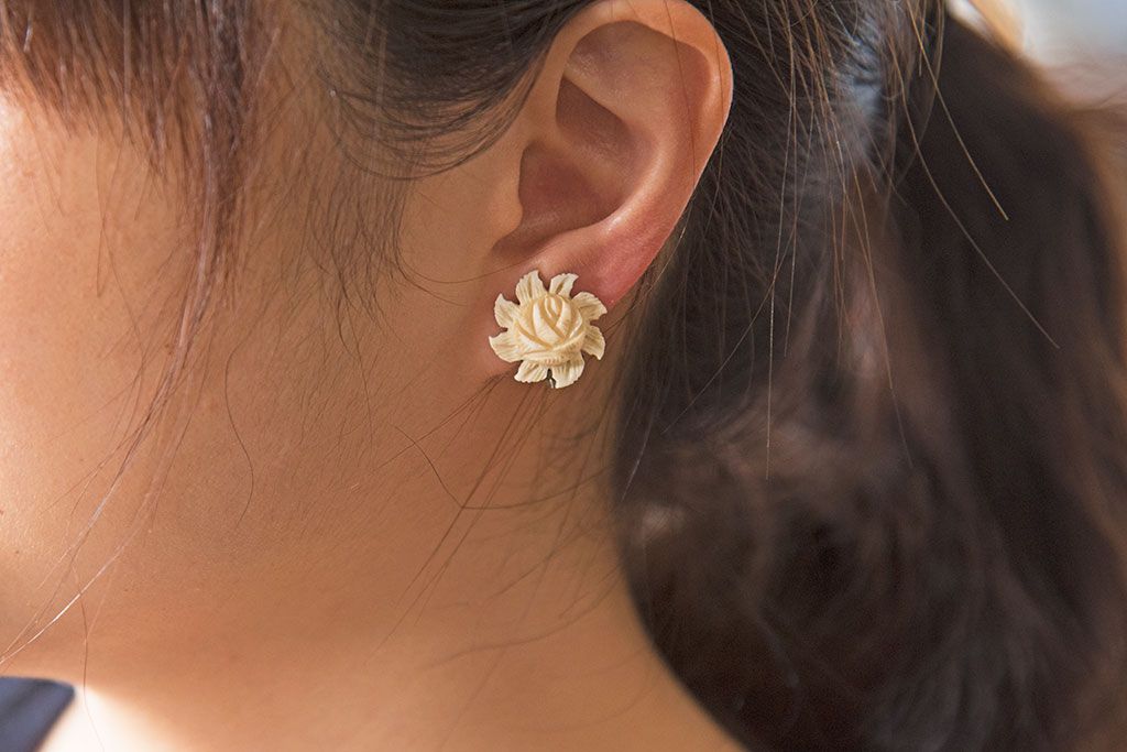 ラフジュ工房> アクセサリー> イヤリング > アンティーク雑貨 ビンテージ バラのレリーフのイヤリング