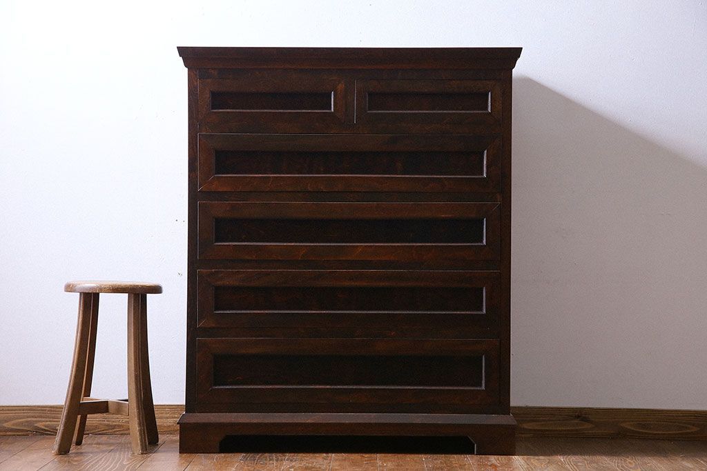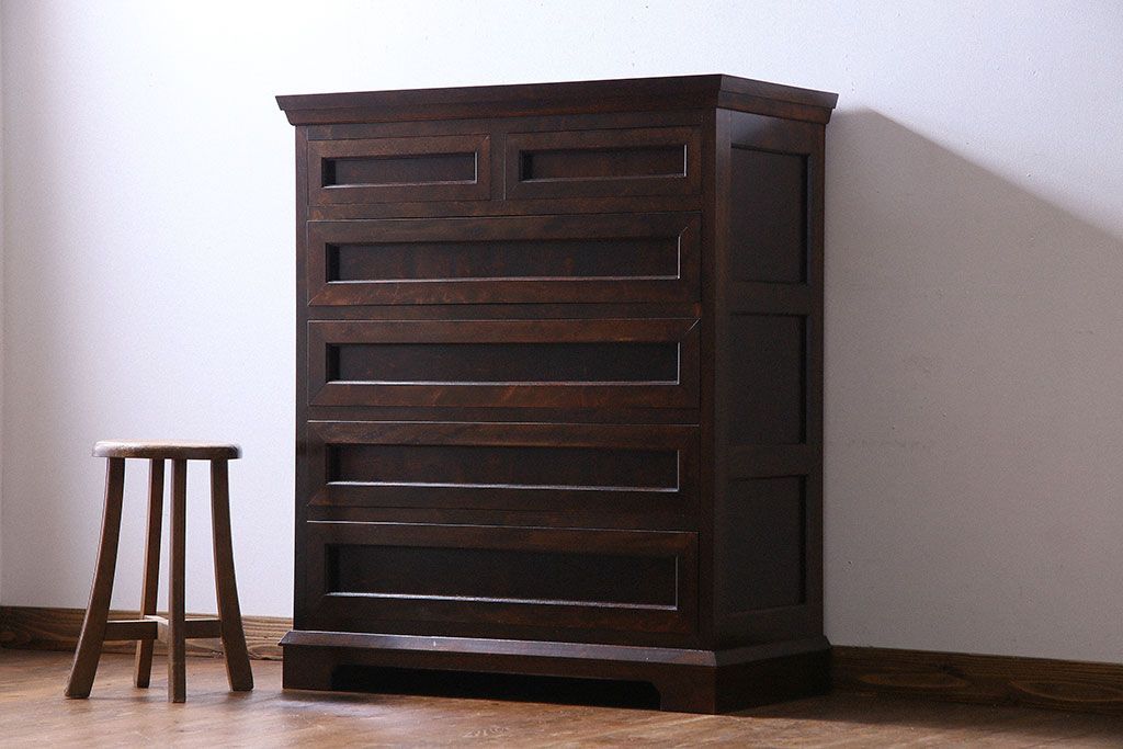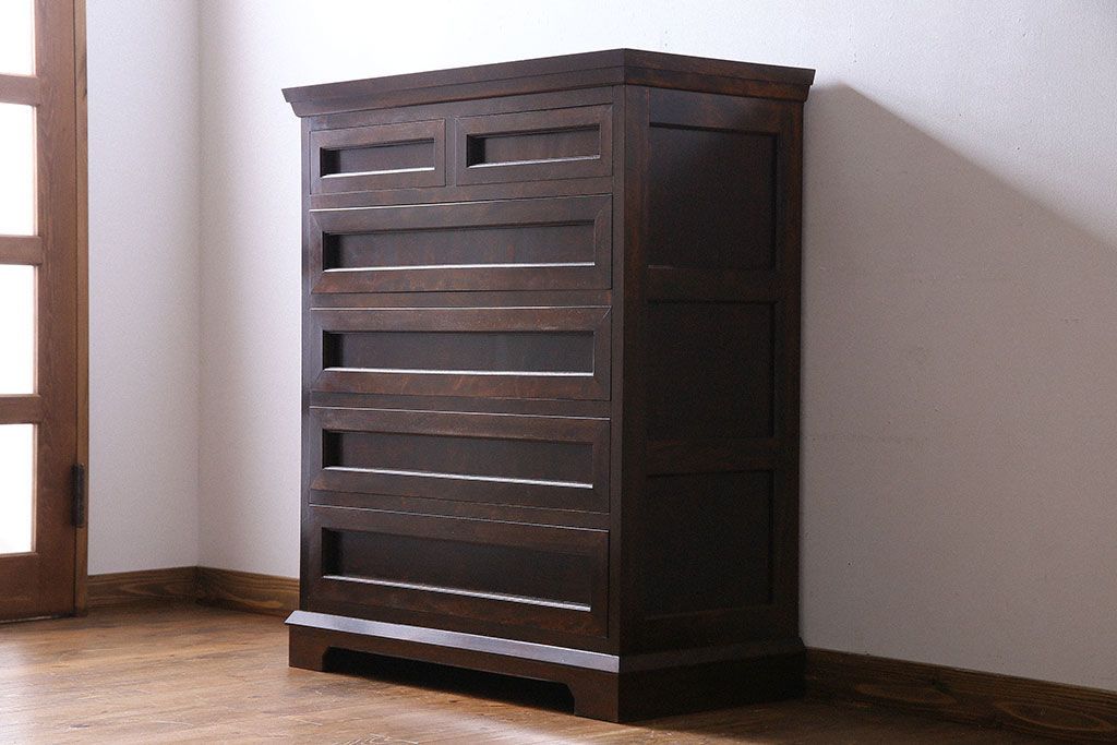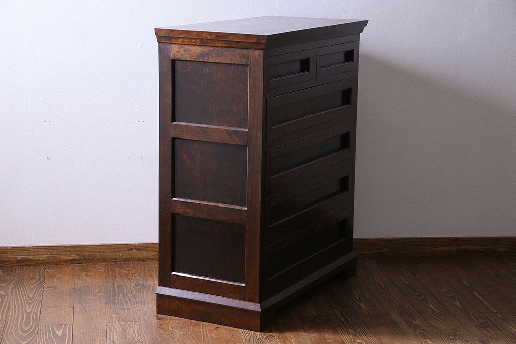 中古 美品 松本民芸家具 503型 直線のデザインが目を引く整理箪笥(引き出し、衣装箪笥、チェスト)(定価約28万円)(1)