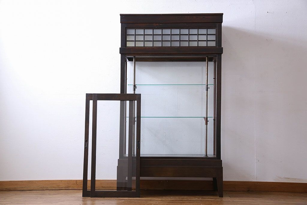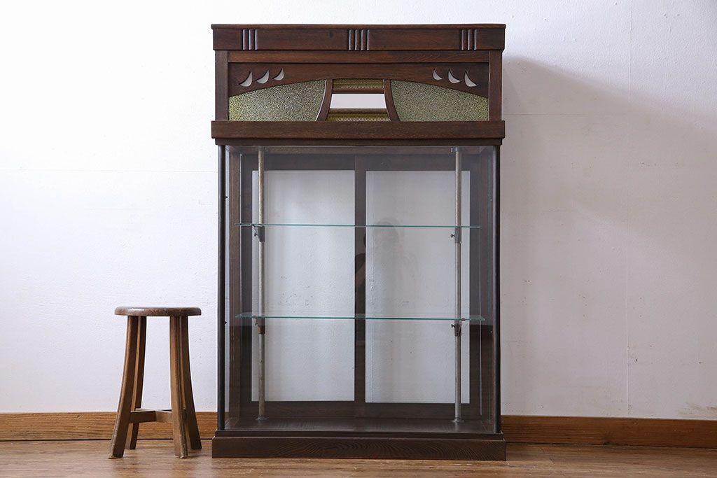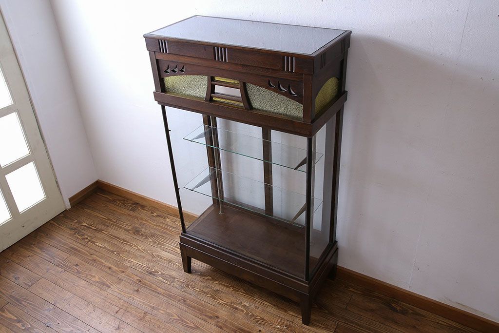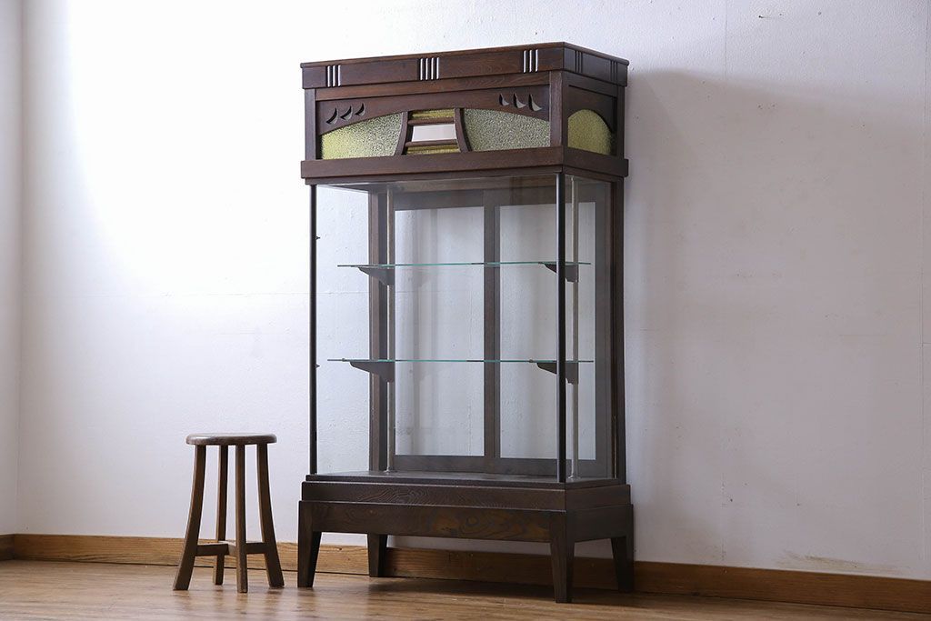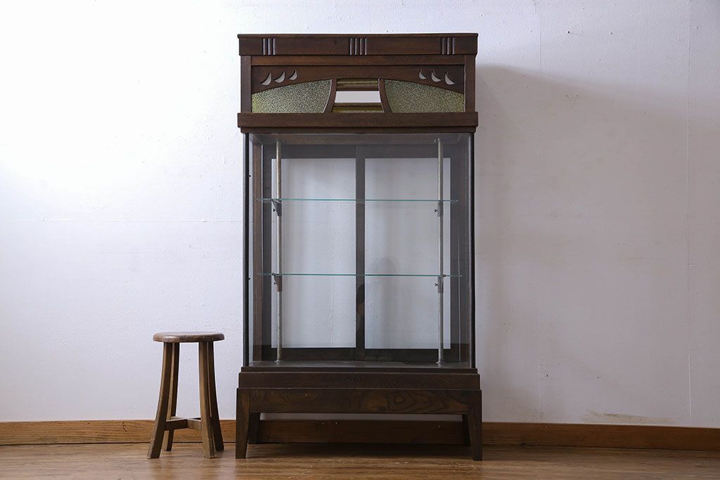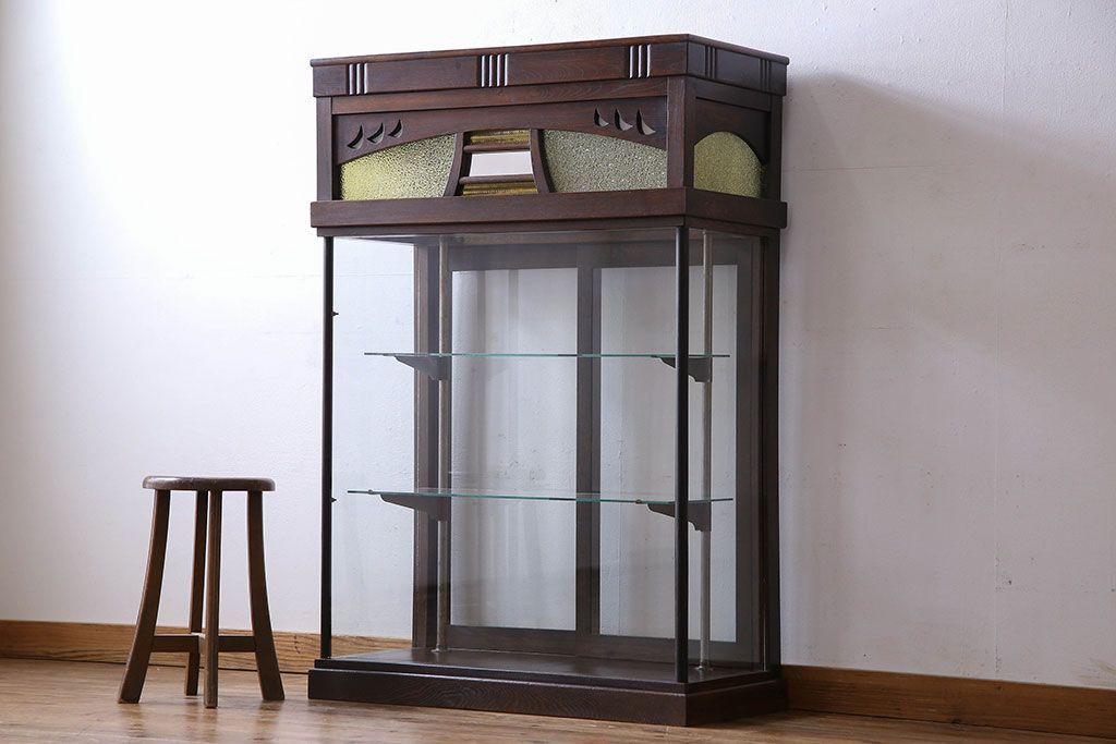 ラフジュ工房> 店舗什器 > アンティーク家具 大正ロマン 色ガラス入り シックな雰囲気漂うタバコ屋の台付きガラスケース(ショーケース、飾り棚、陳列棚)
