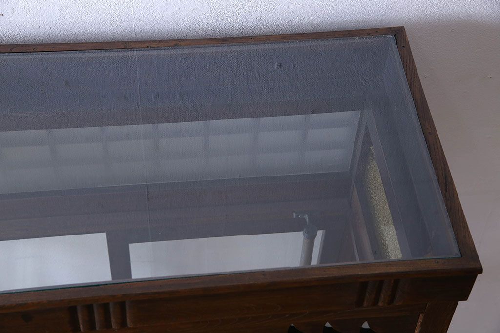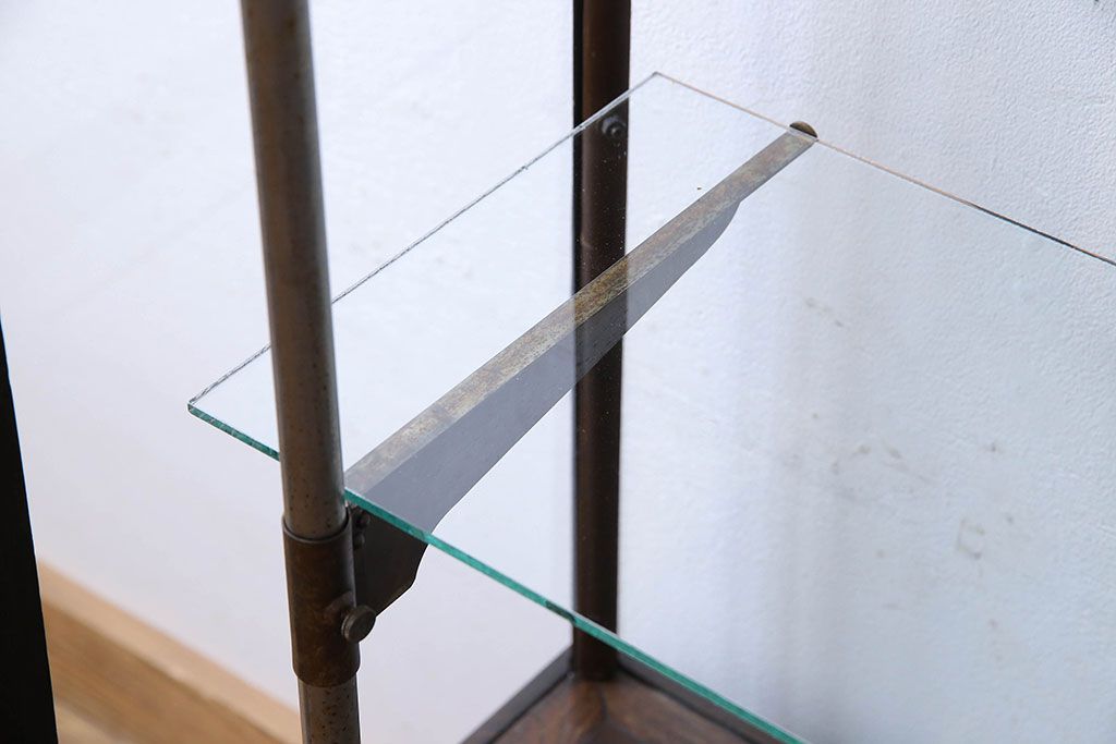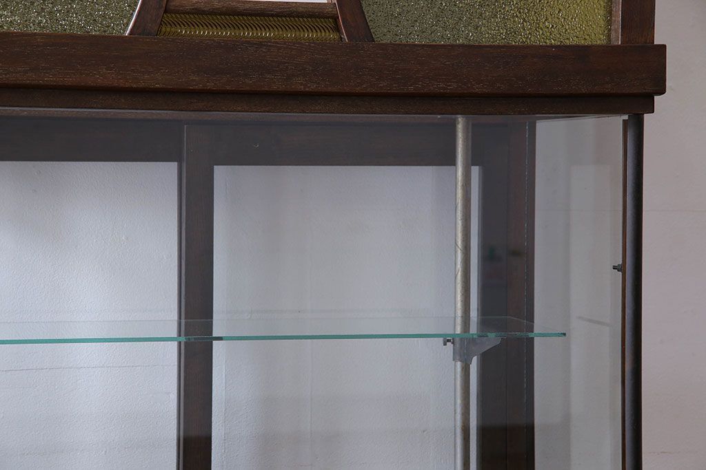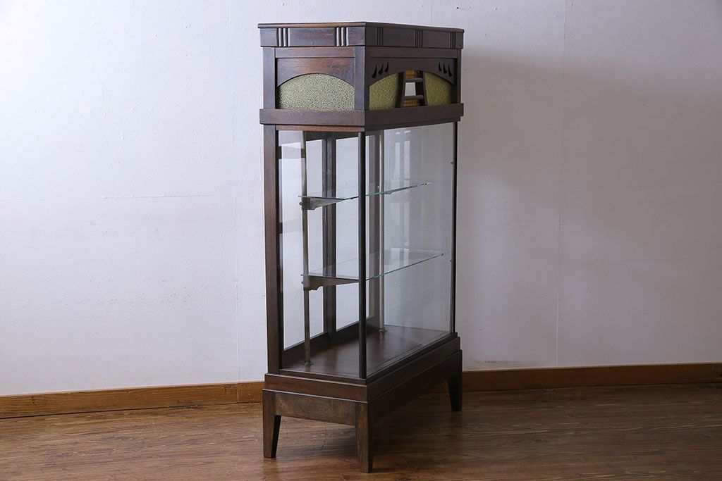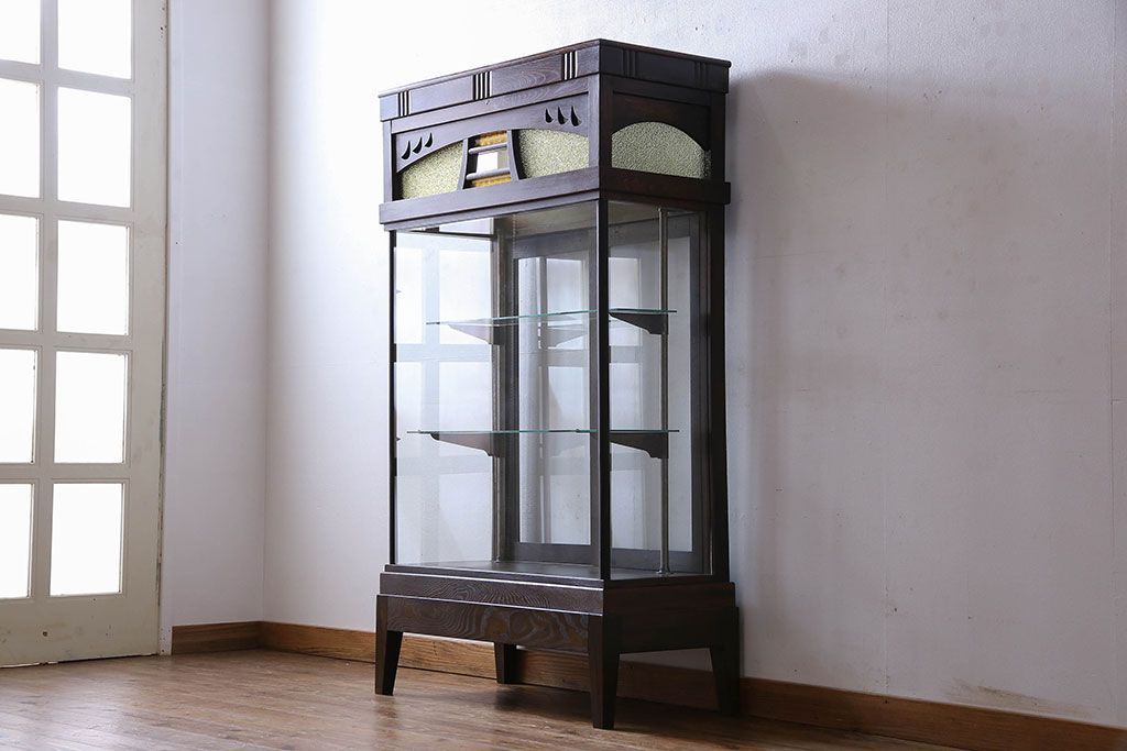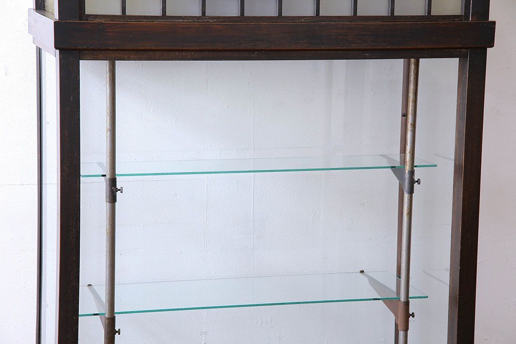 ラフジュ工房> 店舗什器 > アンティーク家具 大正ロマン 色ガラス入り シックな雰囲気漂うタバコ屋の台付きガラスケース(ショーケース、飾り棚、陳列棚)