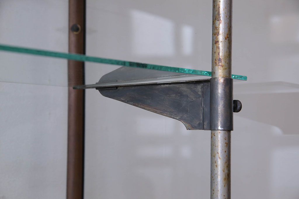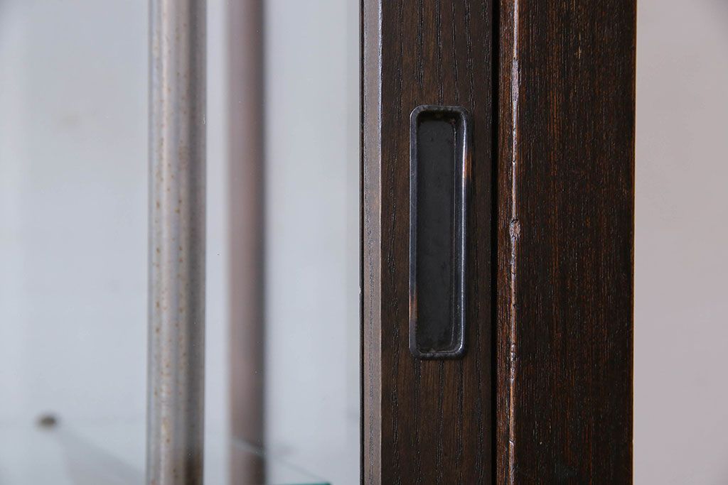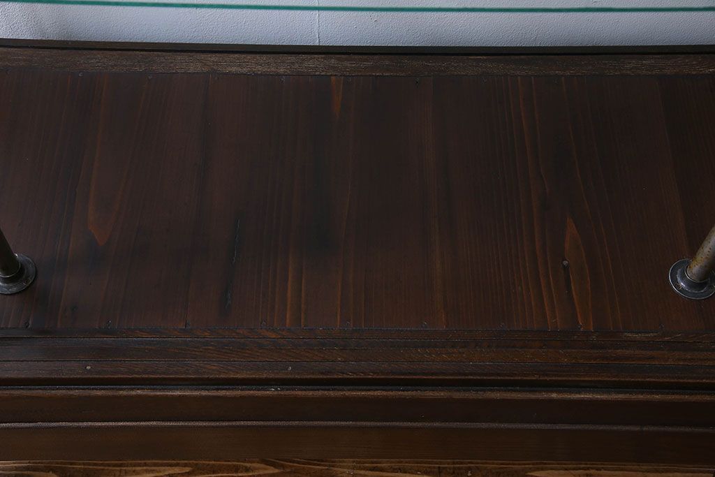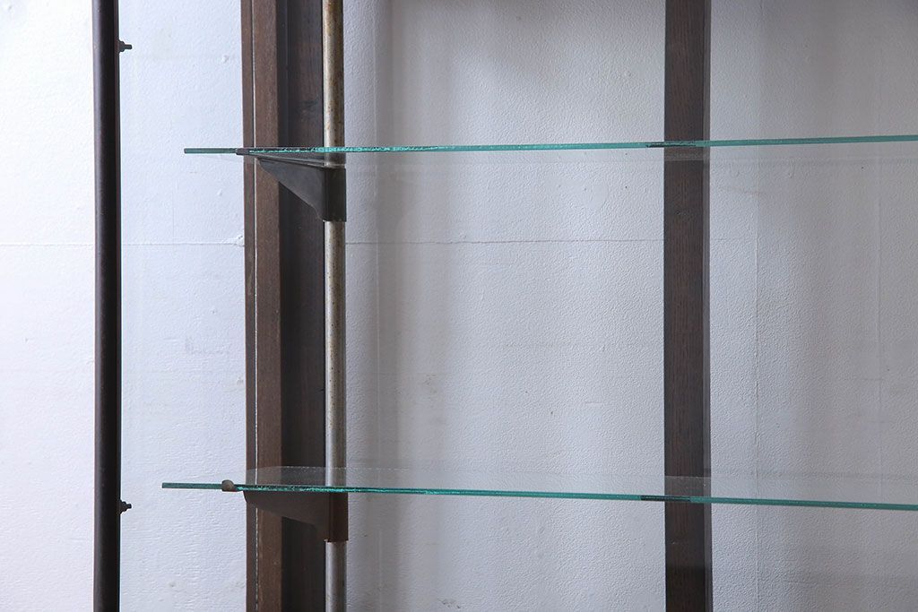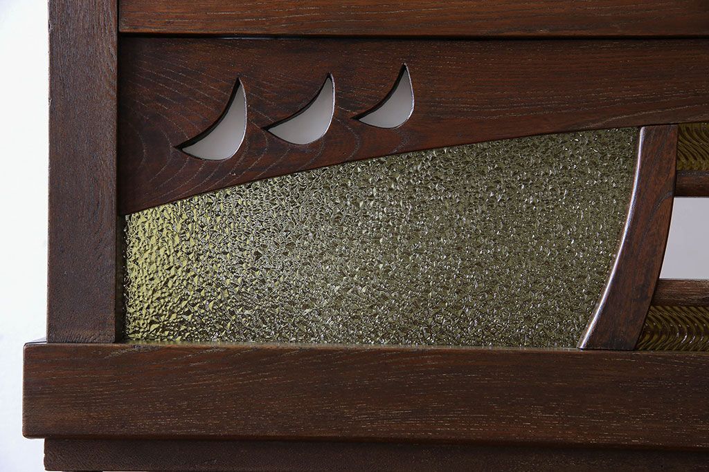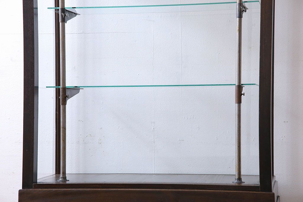 ラフジュ工房> 店舗什器 > アンティーク家具 大正ロマン 色ガラス入り シックな雰囲気漂うタバコ屋の台付きガラスケース(ショーケース、飾り棚、陳列棚)