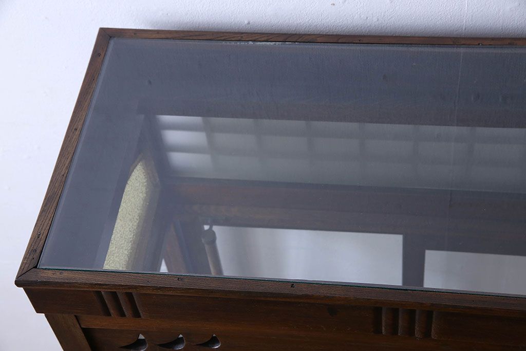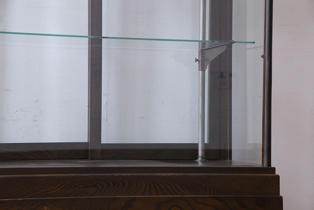 アンティーク家具 大正ロマン 色ガラス入り シックな雰囲気漂うタバコ屋の台付きガラスケース(ショーケース、飾り棚、陳列棚)