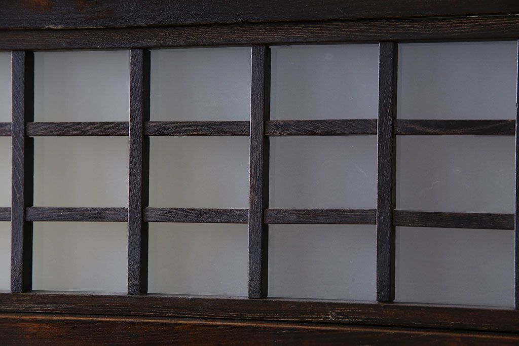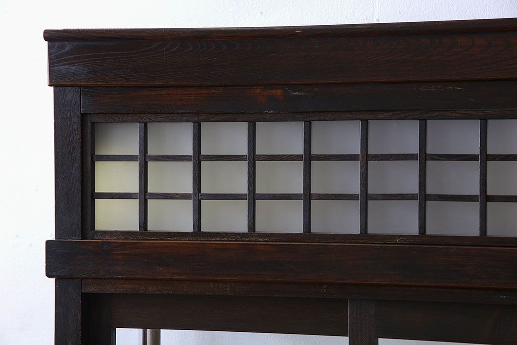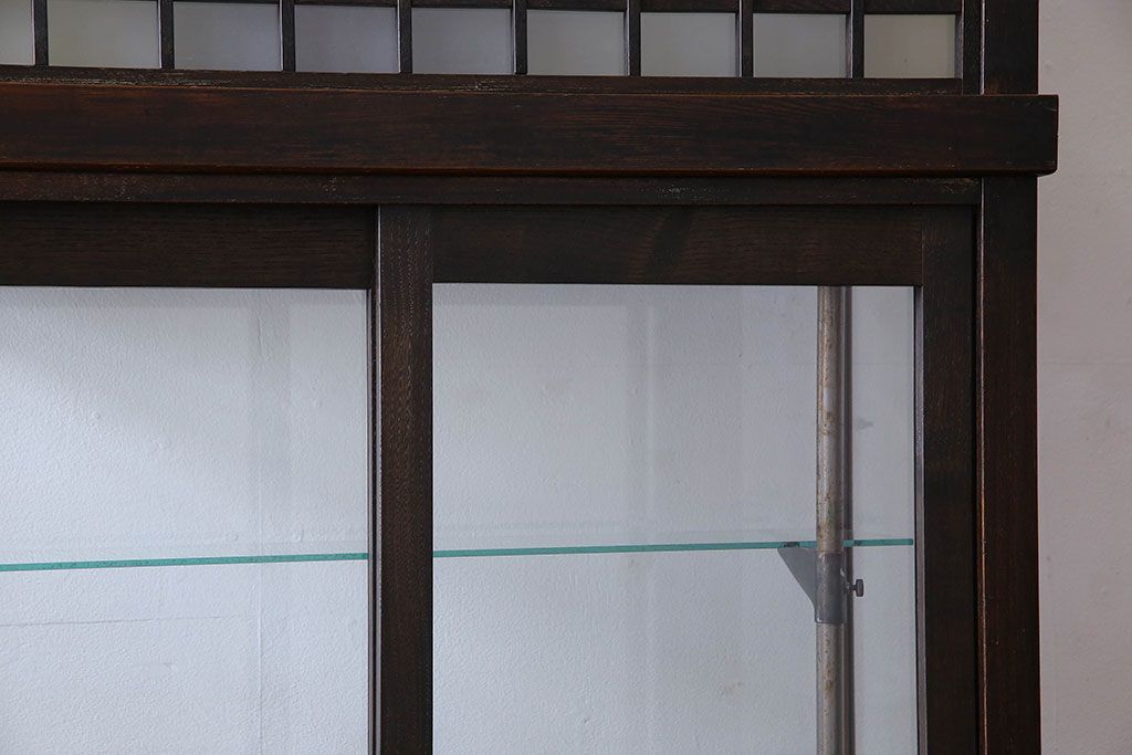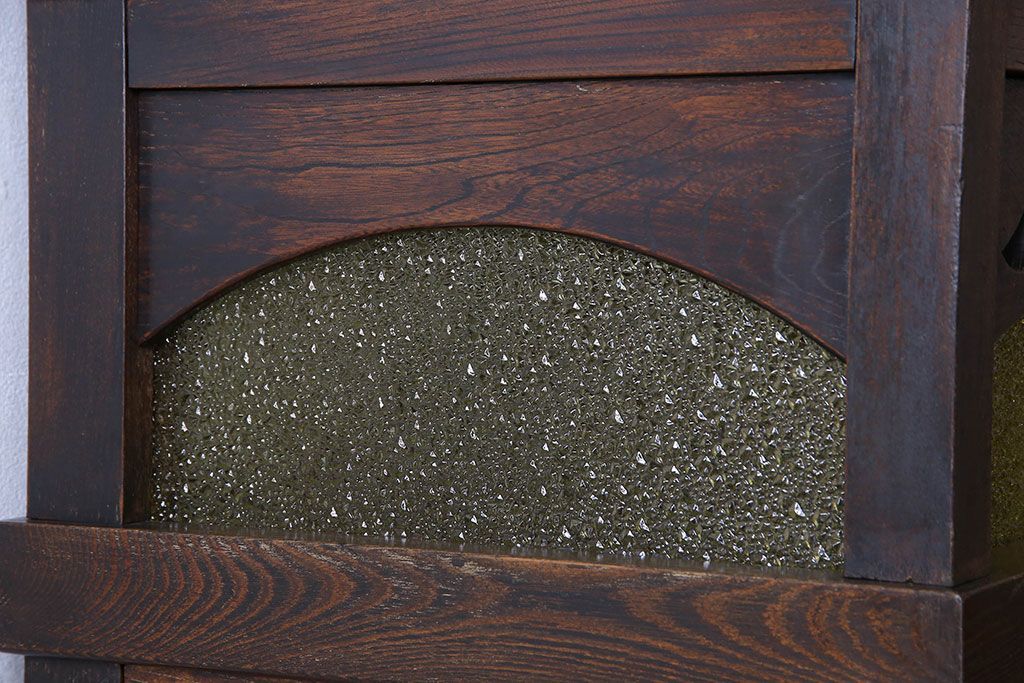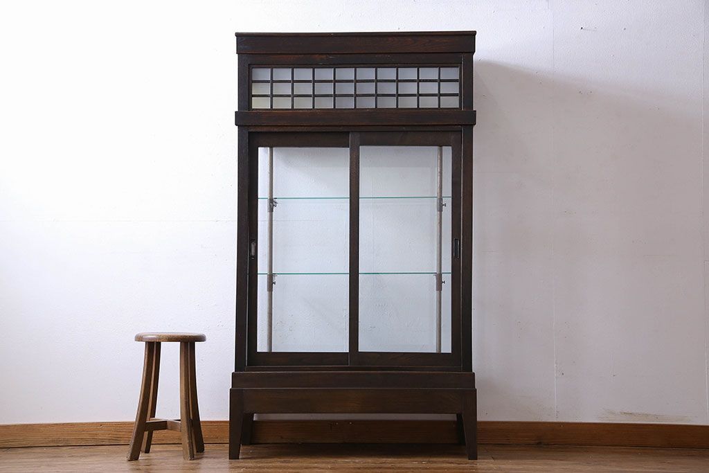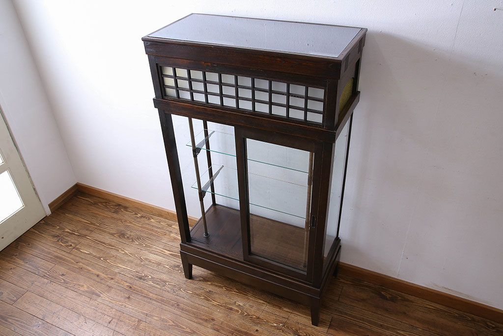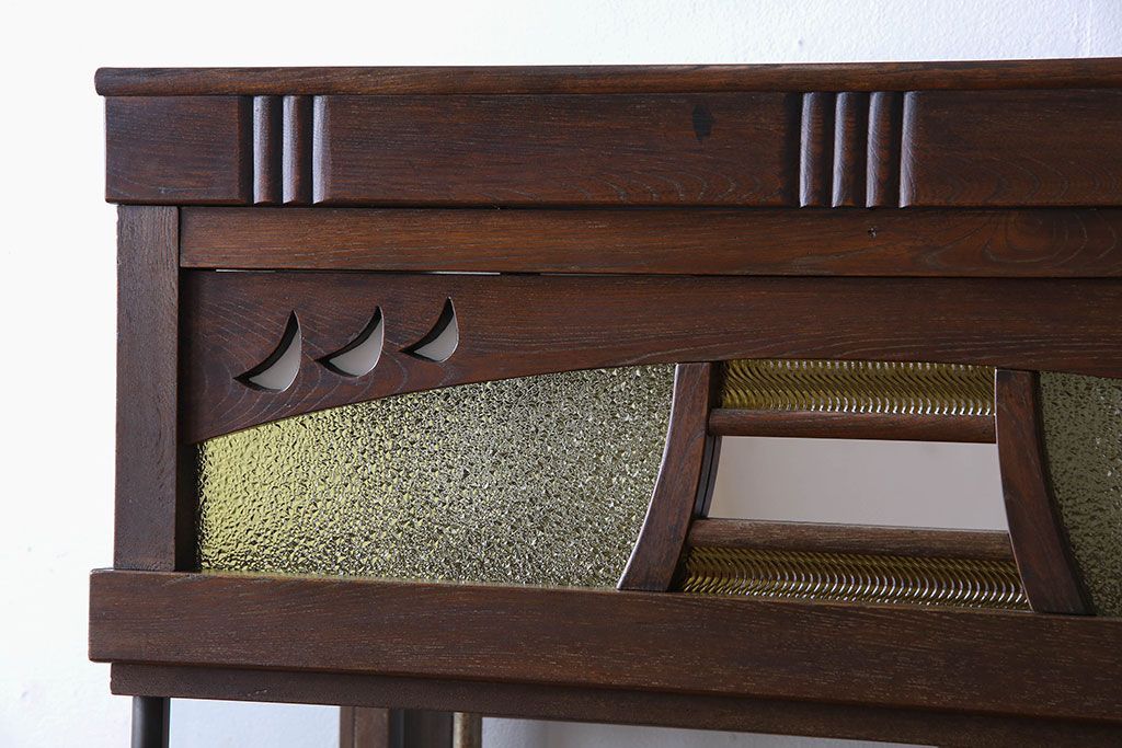 ラフジュ工房> ガラスケース・ショーケース > アンティーク家具 大正ロマン 色ガラス入り シックな雰囲気漂うタバコ屋の台付きガラスケース(ショーケース、飾り棚、陳列棚)