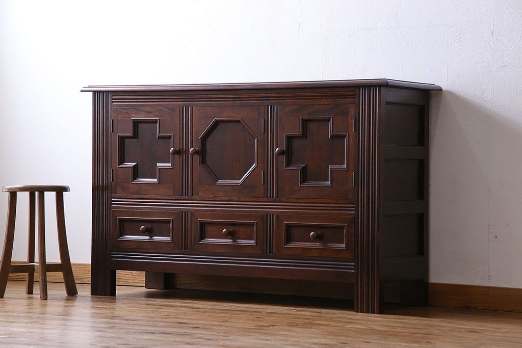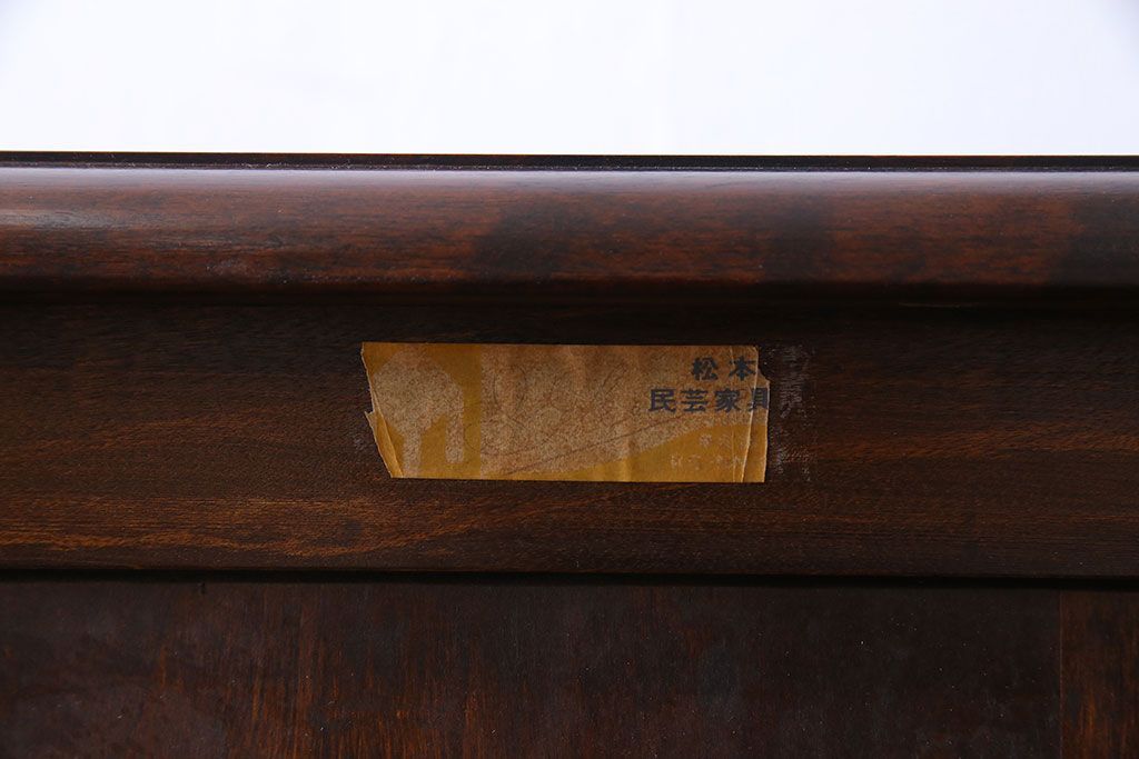 中古 松本民芸家具 デザインが印象的なD型サイドボード(収納棚)(定価43万円)