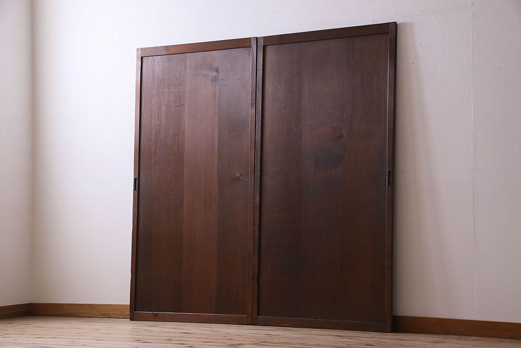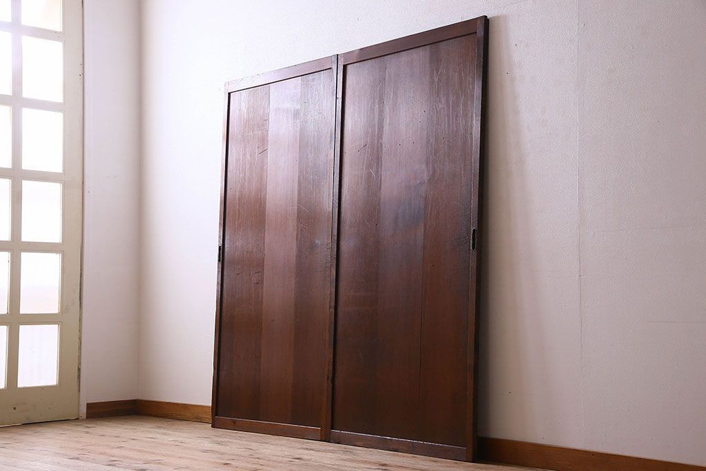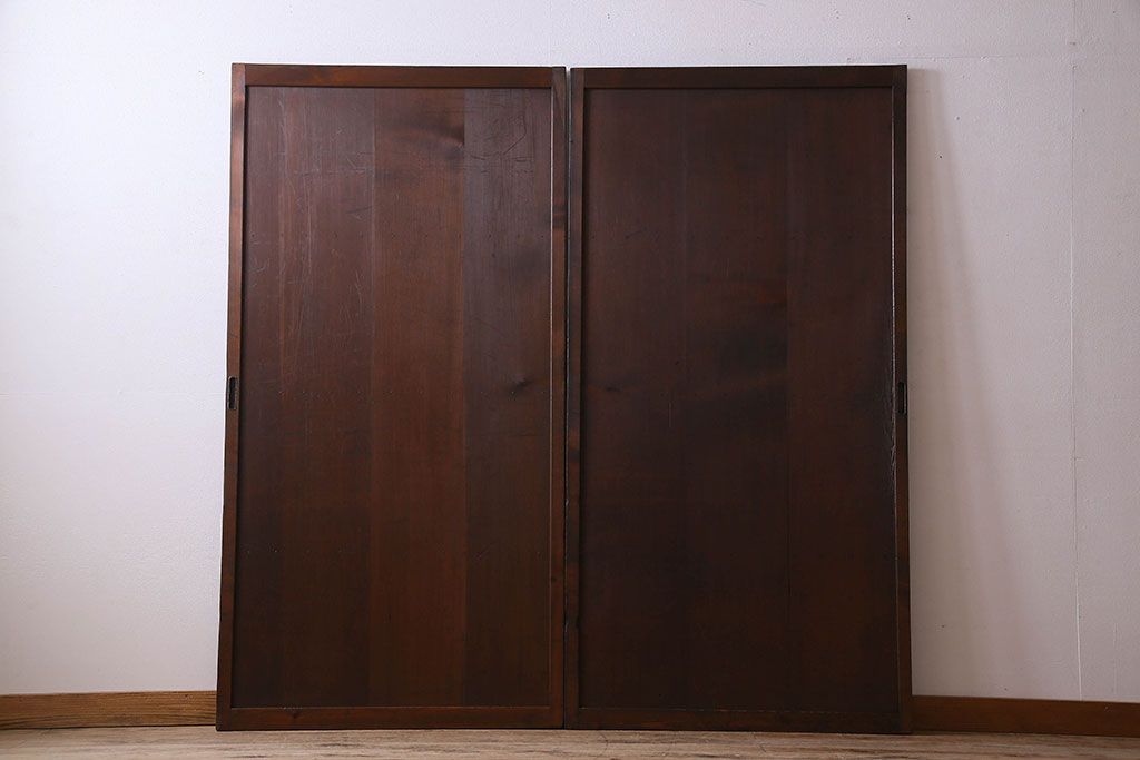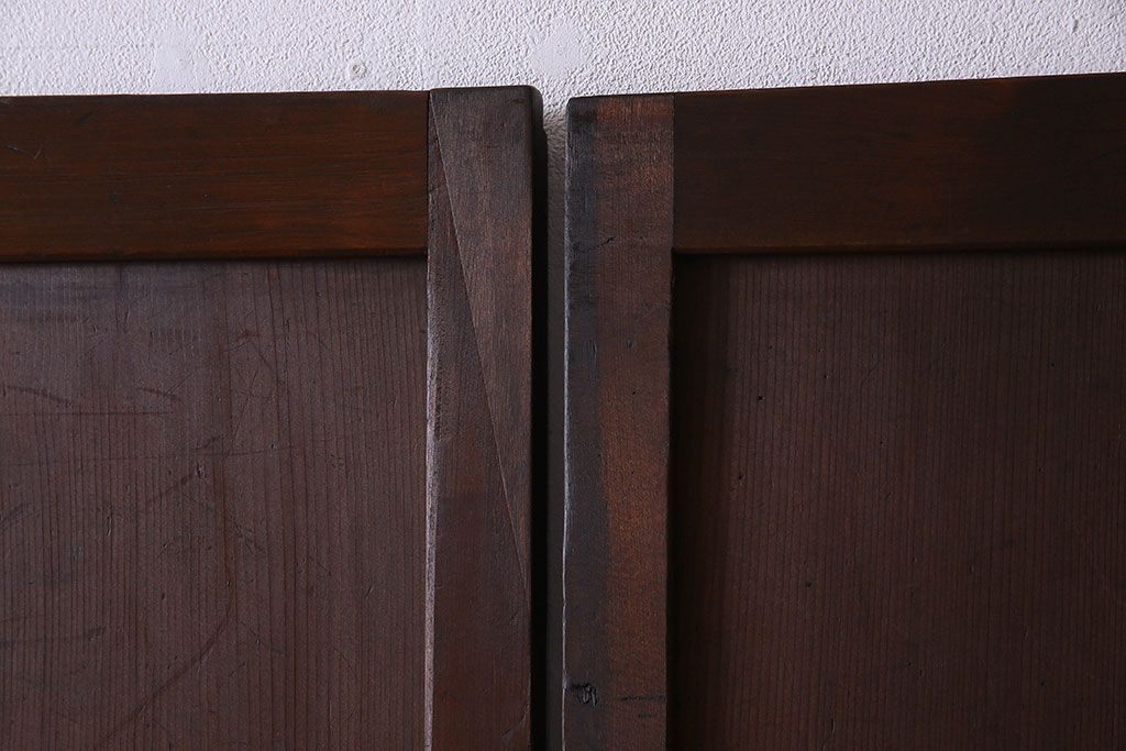 和製アンティーク 杉材の美しい柾目が印象的な板戸(帯戸、建具)2枚セット