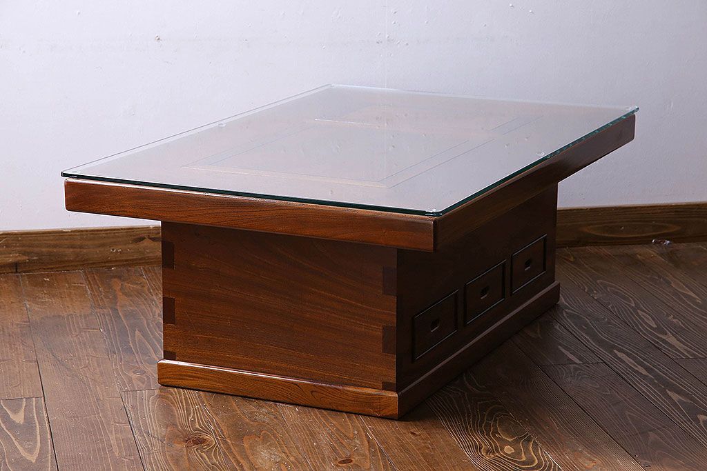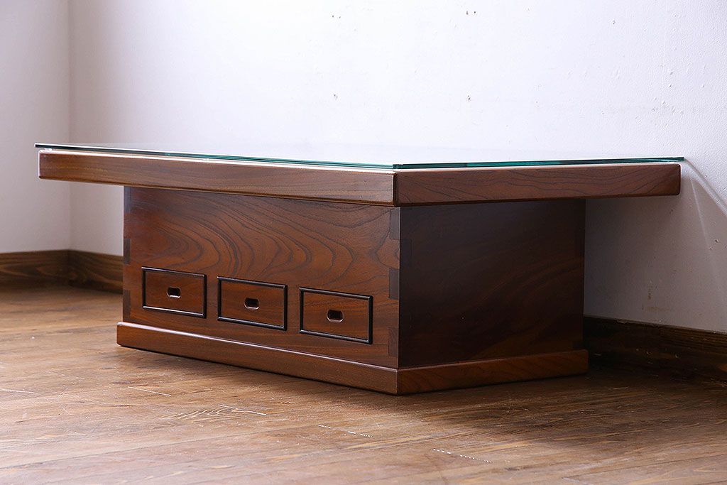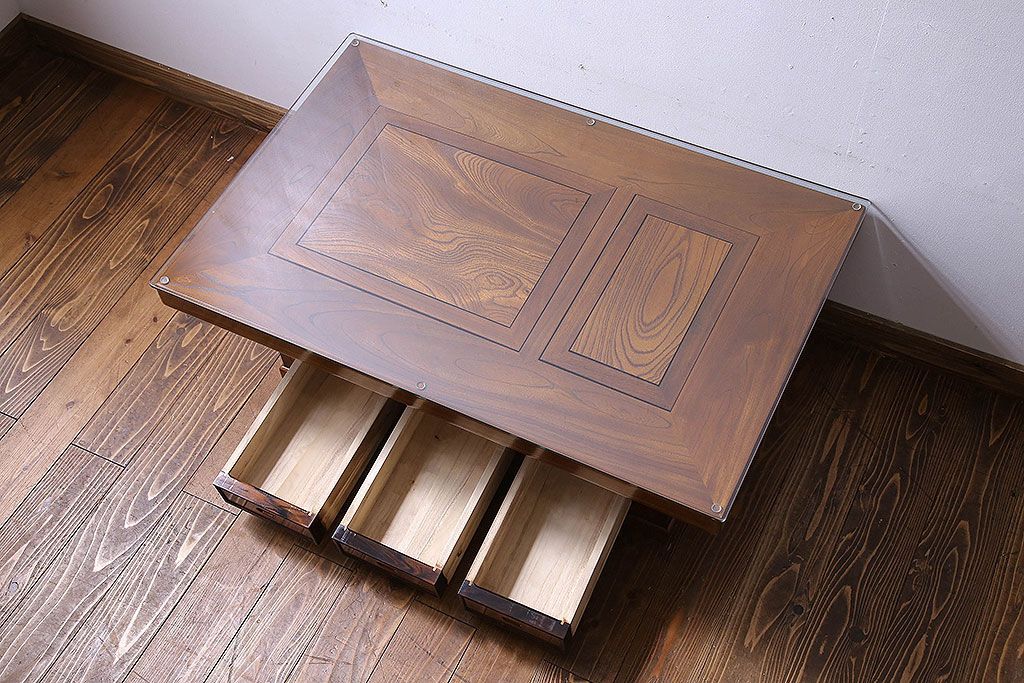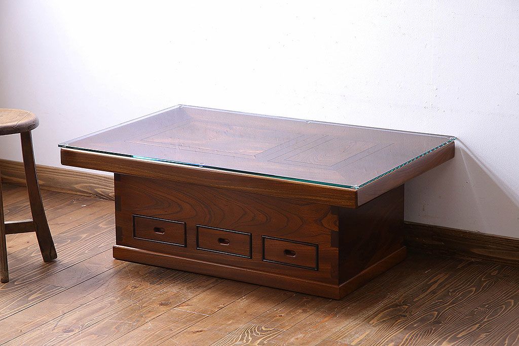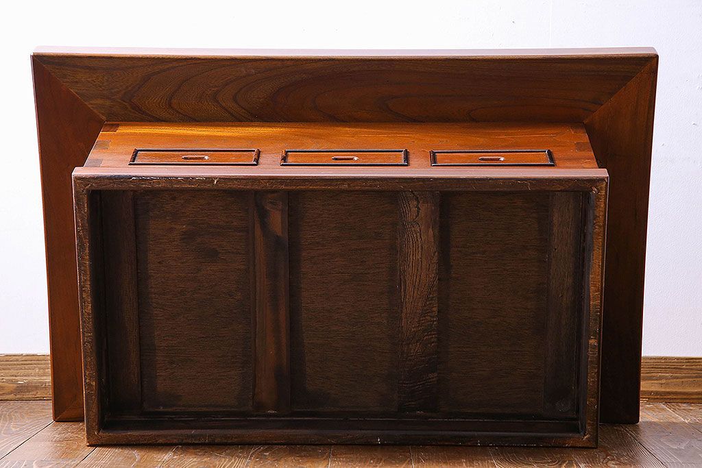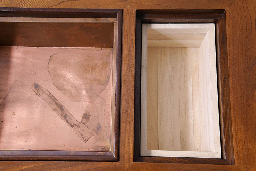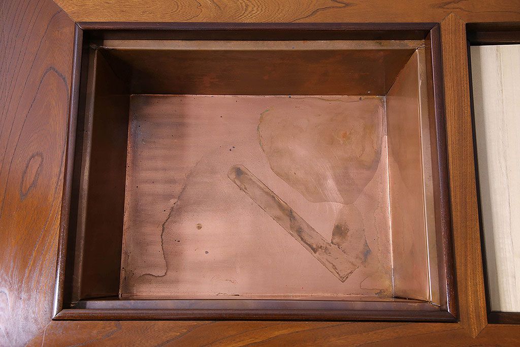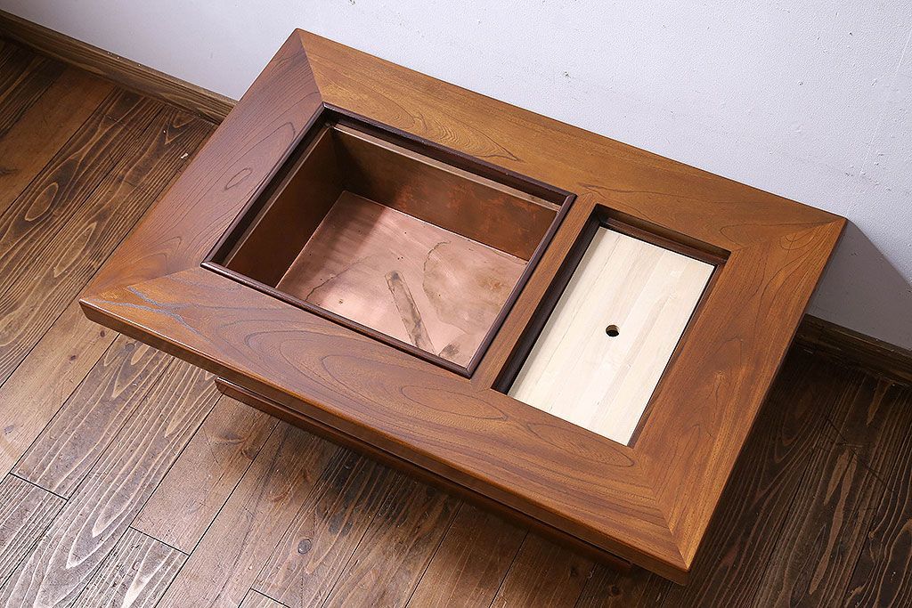 ラフジュ工房> 火鉢> 木製火鉢 > アンティーク雑貨 中古 昭和期 杢目が美しい上品な関西火鉢(長火鉢、囲炉裏、テーブル)