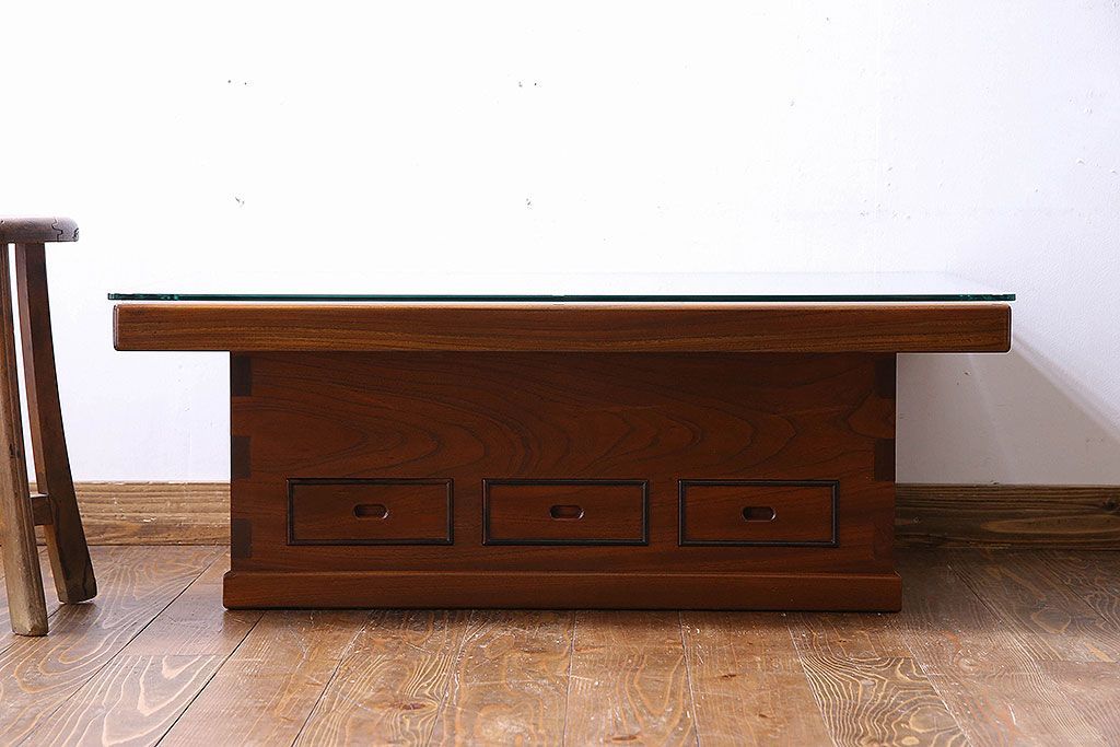 アンティーク雑貨 中古 昭和期 杢目が美しい上品な関西火鉢(長火鉢、囲炉裏、テーブル)