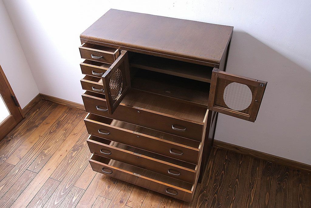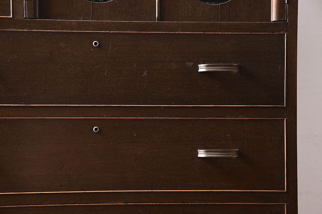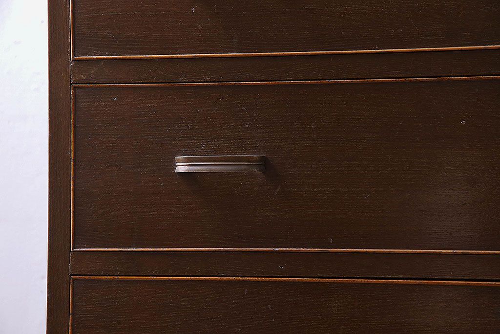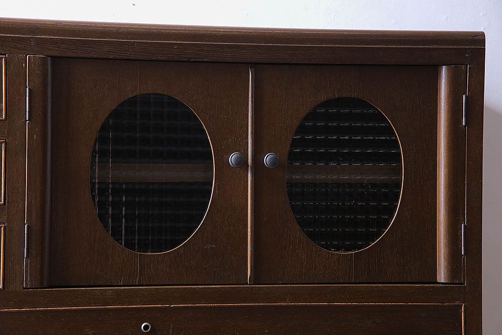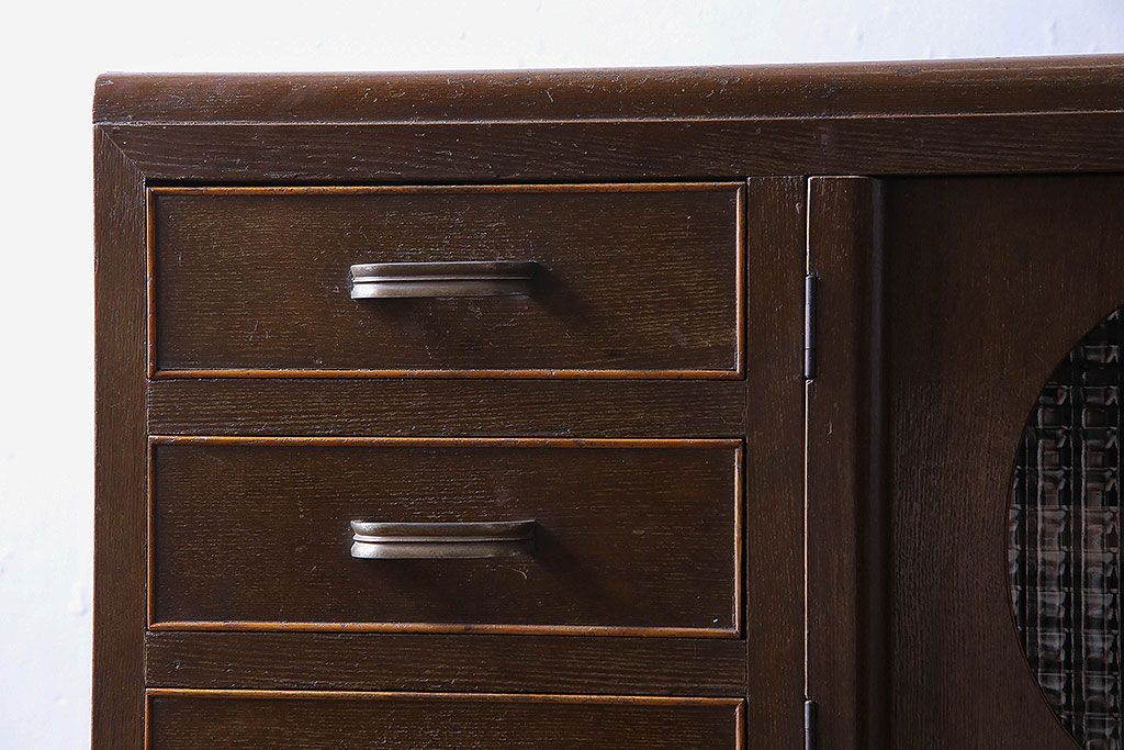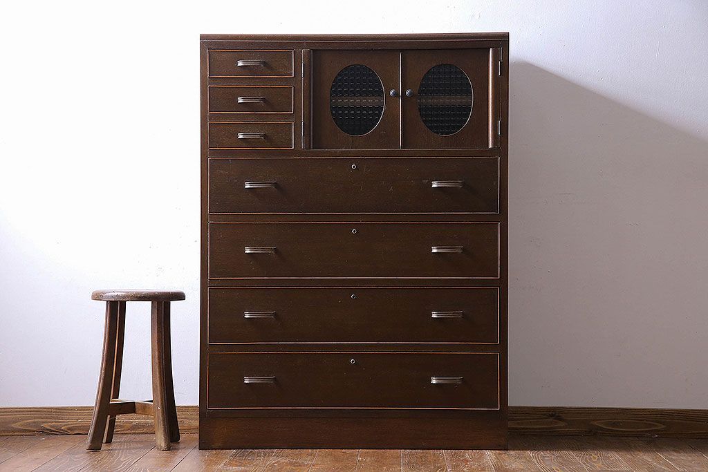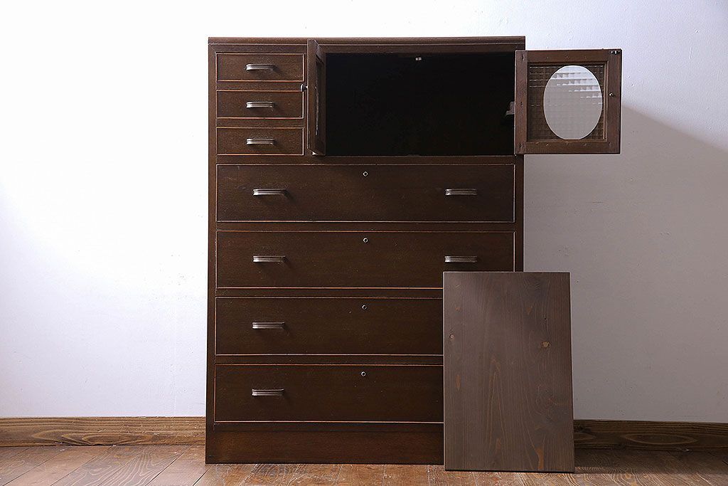 レトロ家具 昭和レトロ チェッカーガラス入りのレトロなチェスト(タンス、衣装箪笥、引き出し、キャビネット)
