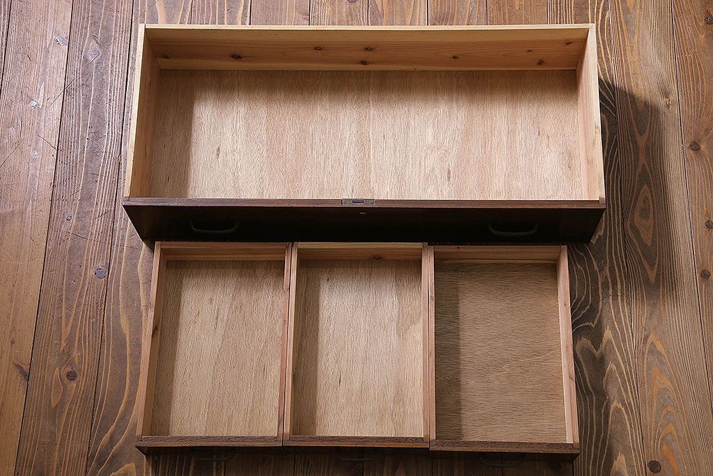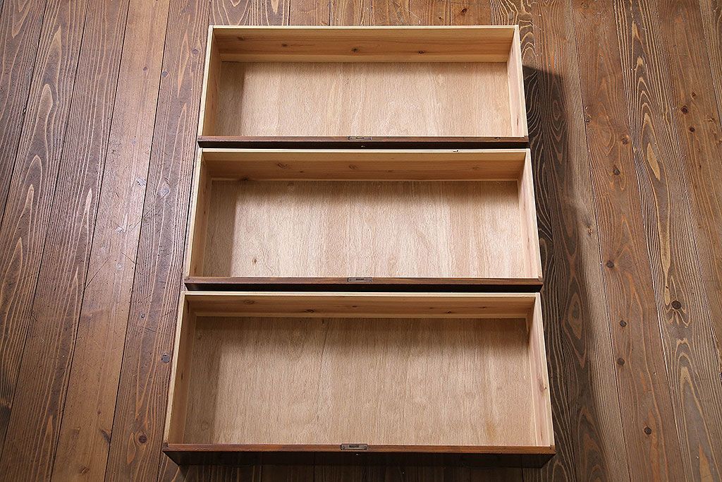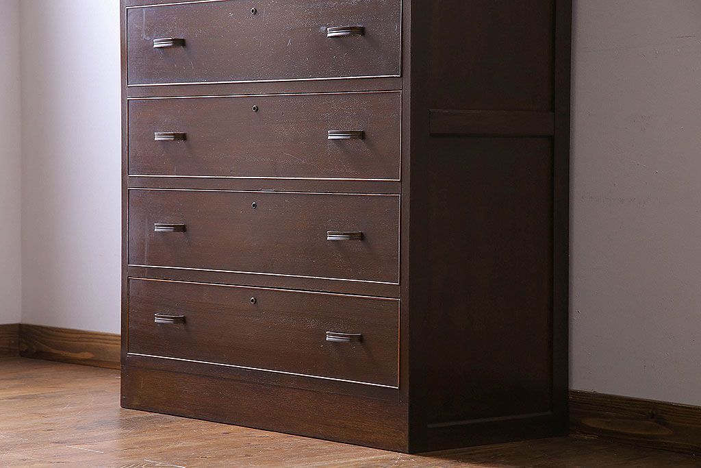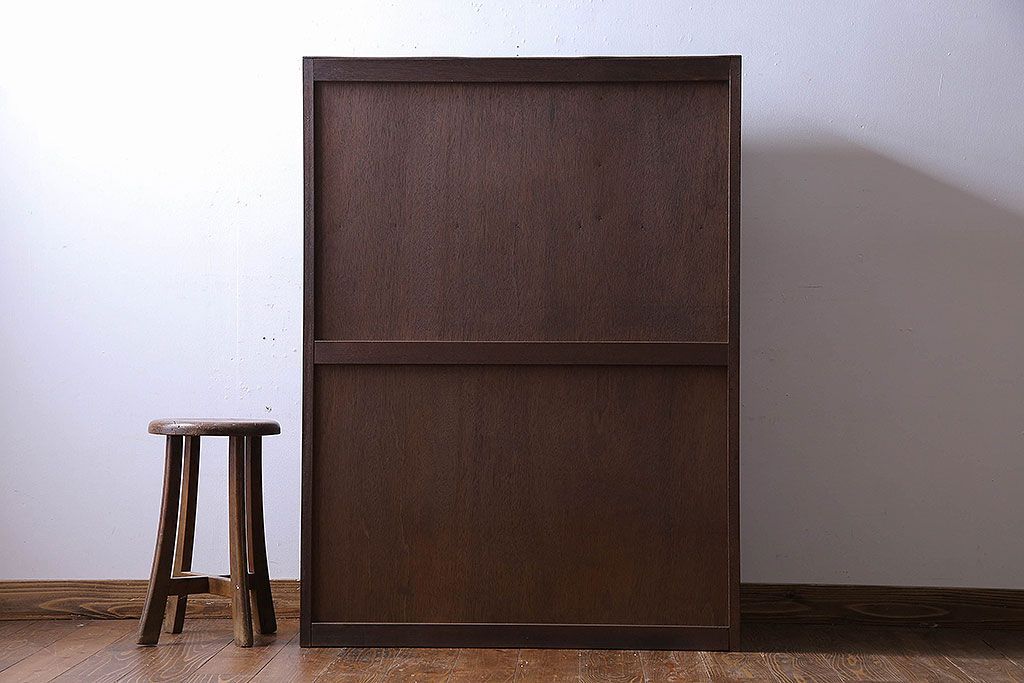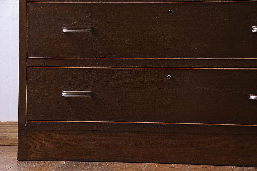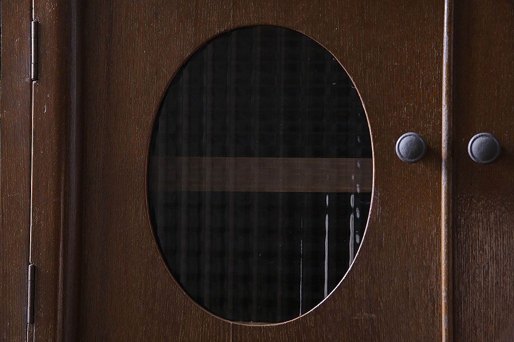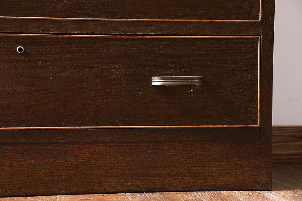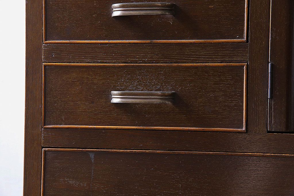 レトロ家具 昭和レトロ チェッカーガラス入りのレトロなチェスト(タンス、衣装箪笥、引き出し、キャビネット)