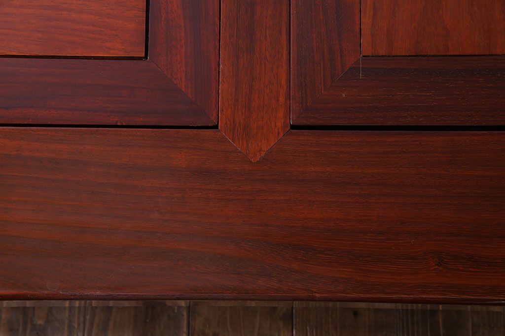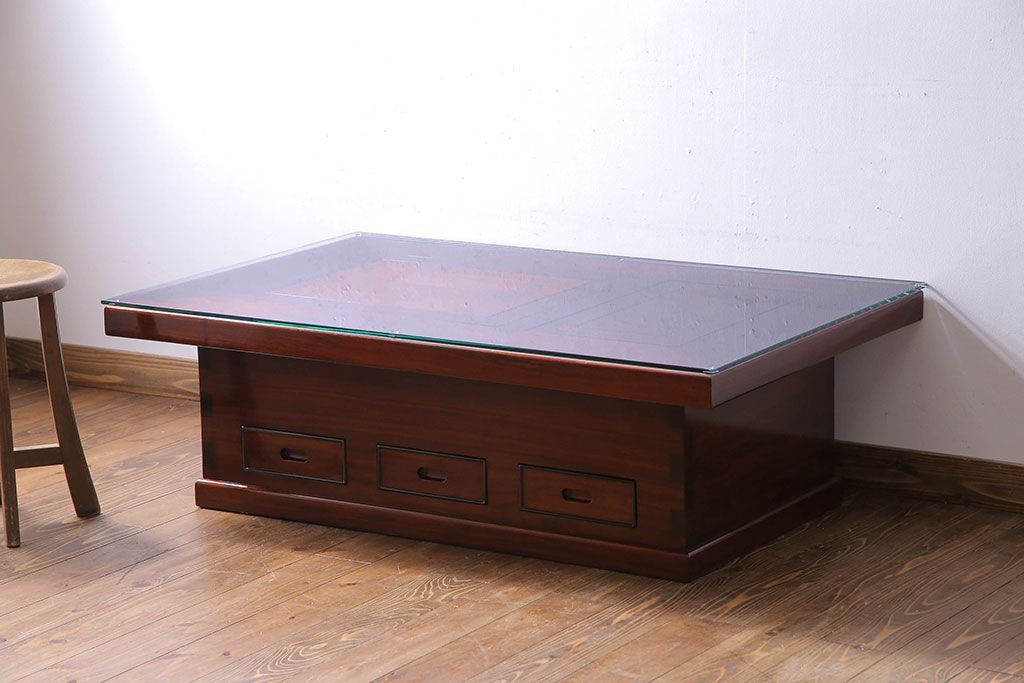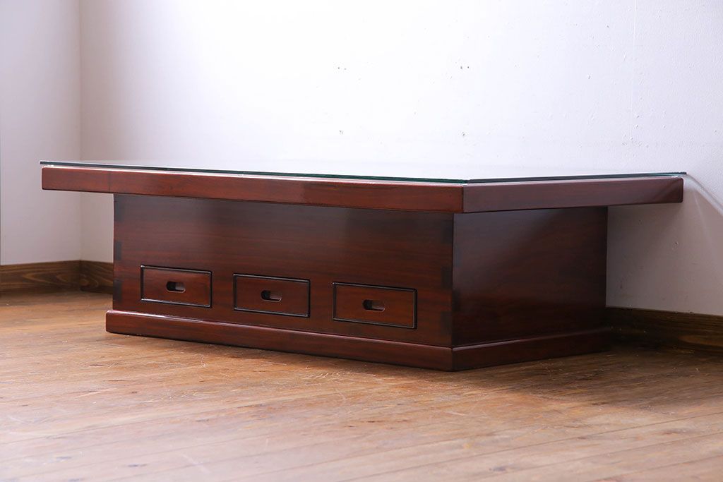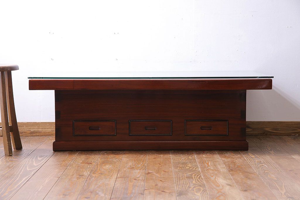 アンティーク雑貨 中古 カリン材 ガラス天板付きの四尺関西火鉢(長火鉢、囲炉裏、ローテーブル、花梨材)