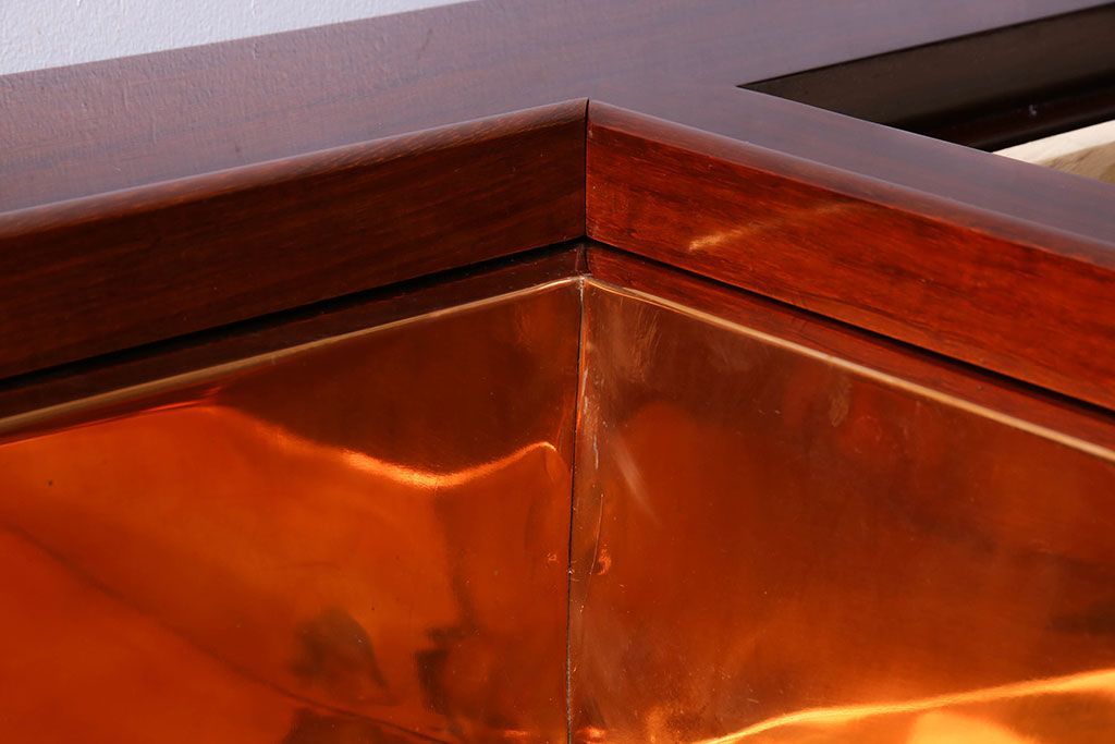 ラフジュ工房> 火鉢> 木製火鉢 > アンティーク雑貨 中古 カリン材 ガラス天板付きの四尺関西火鉢(長火鉢、囲炉裏、ローテーブル、花梨材)