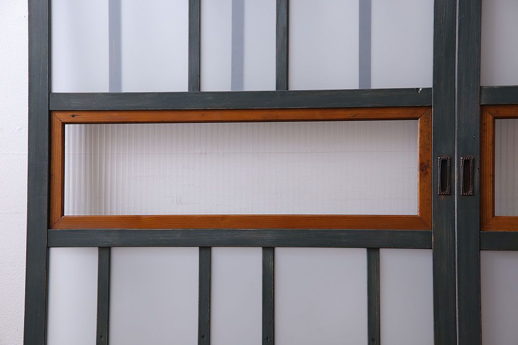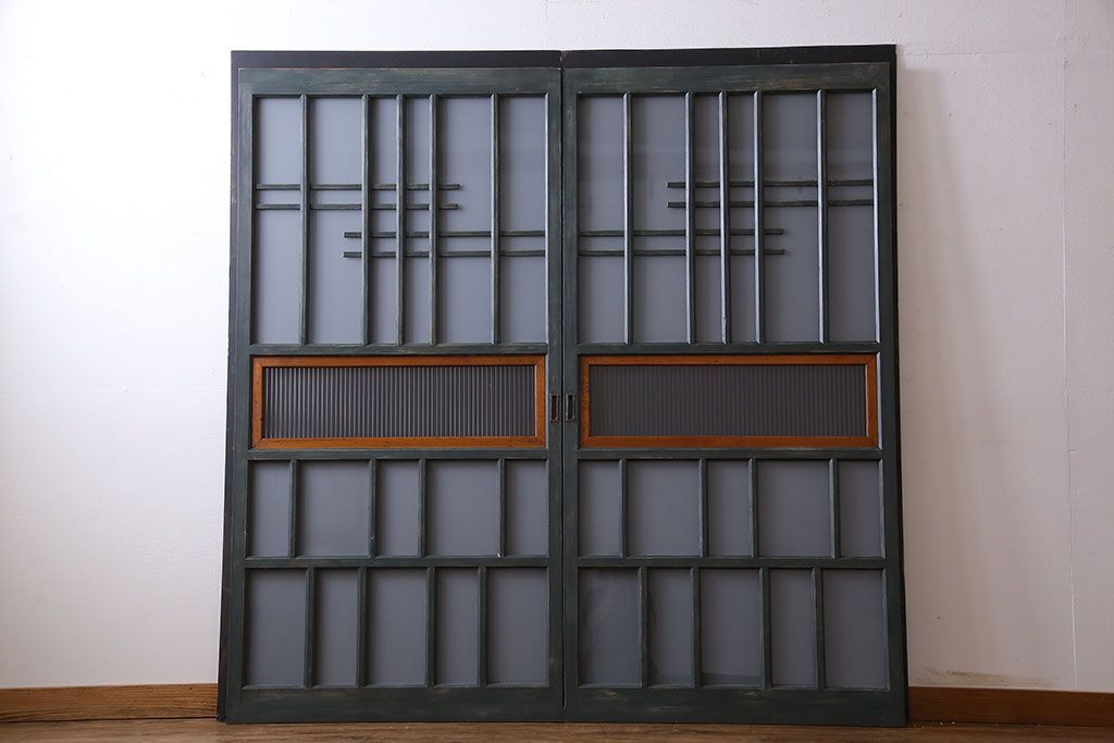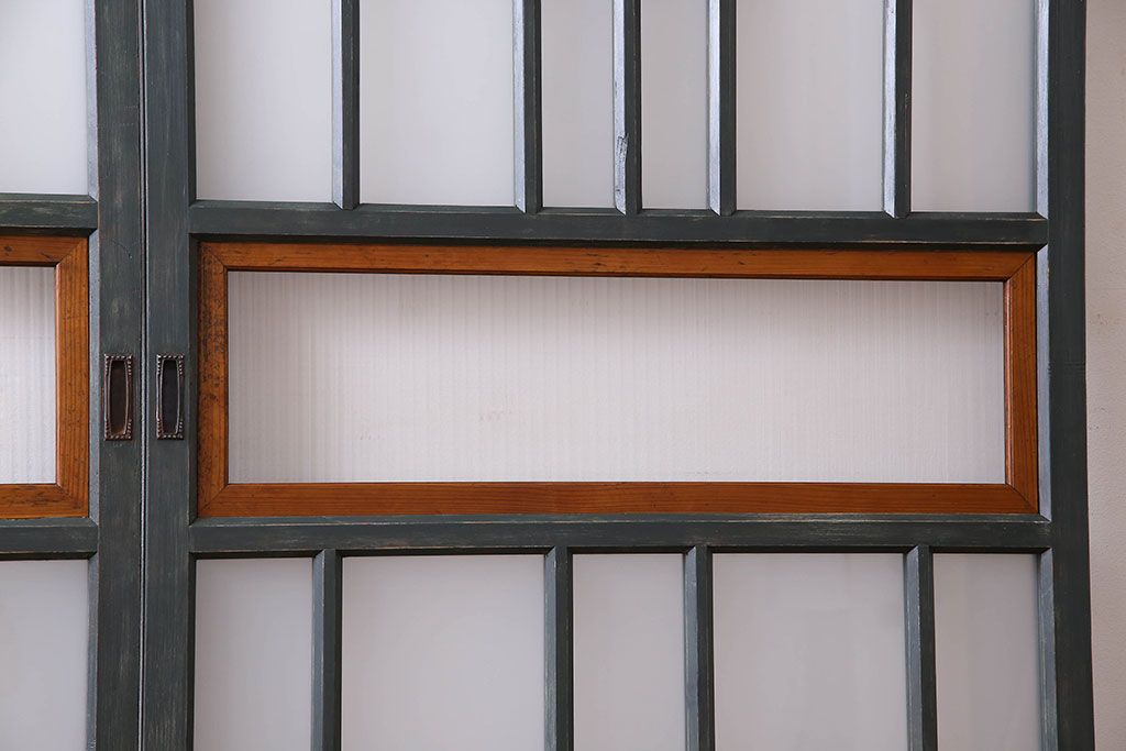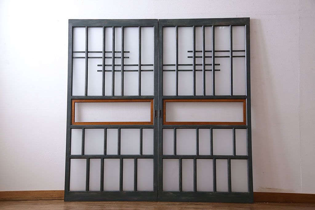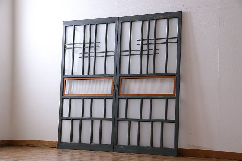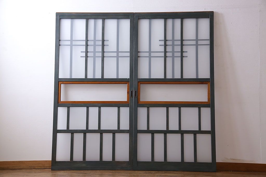 レトロガラス入り!珍しいデザインのガラス帯戸(ガラス戸、引き戸、建具)2枚組