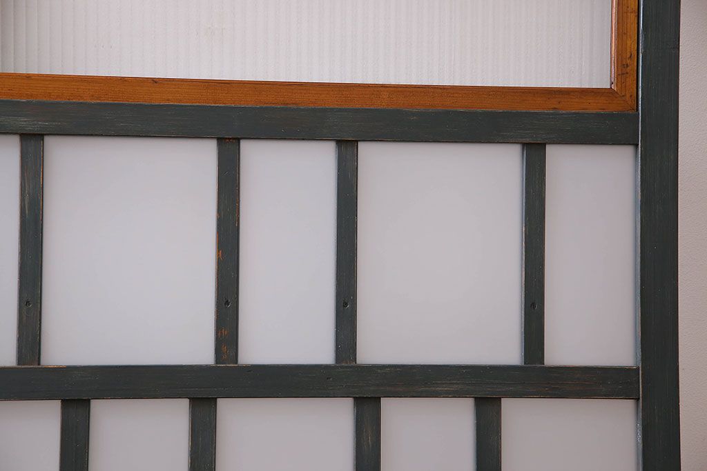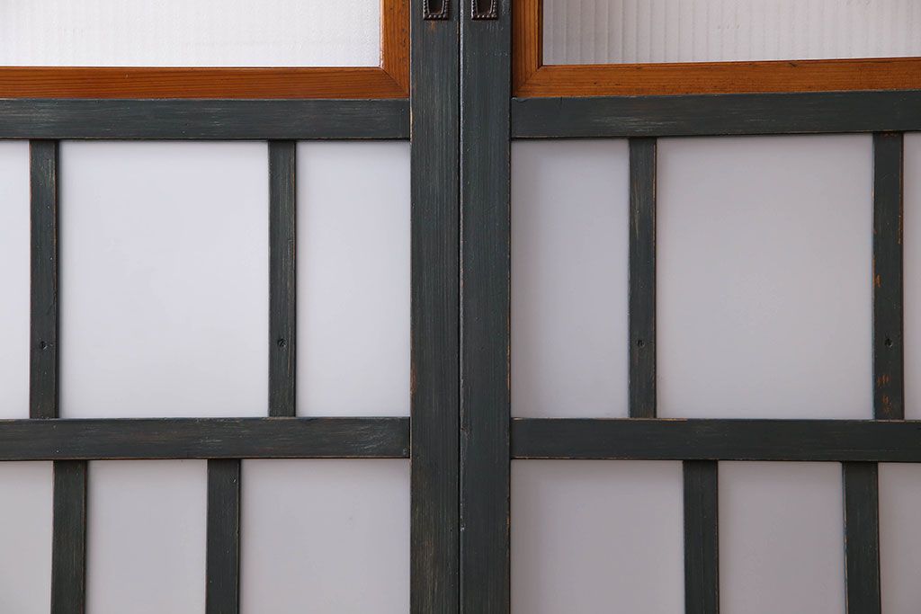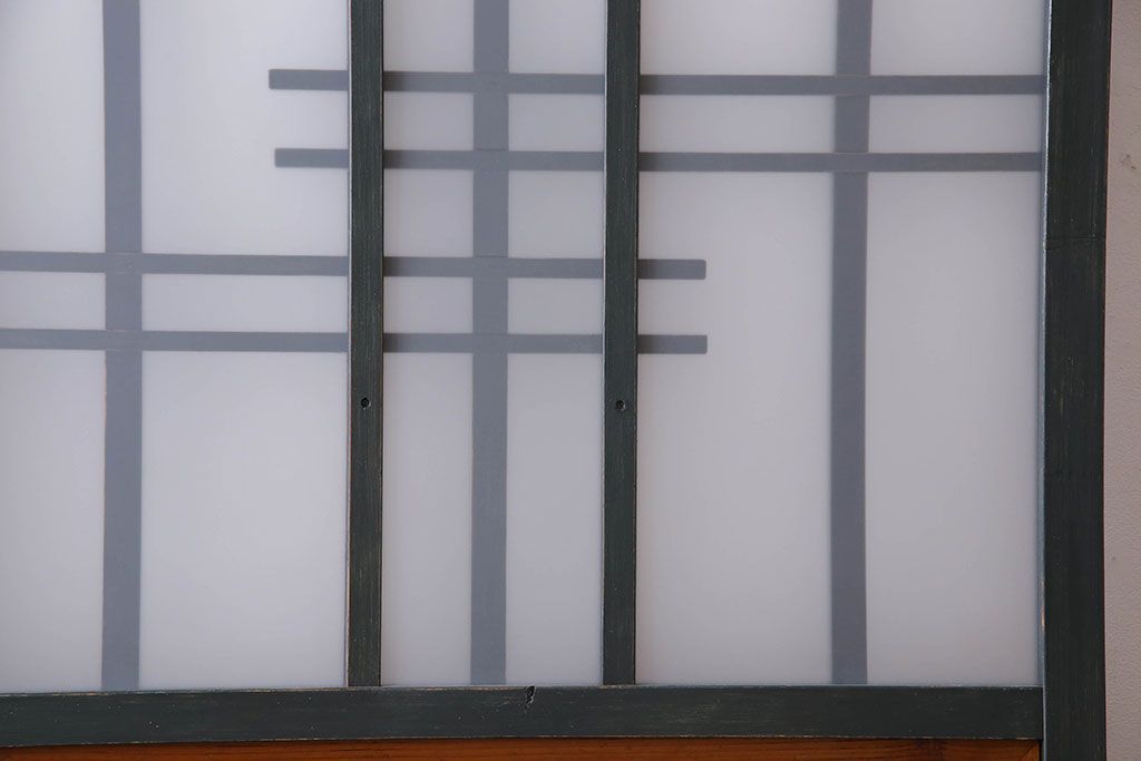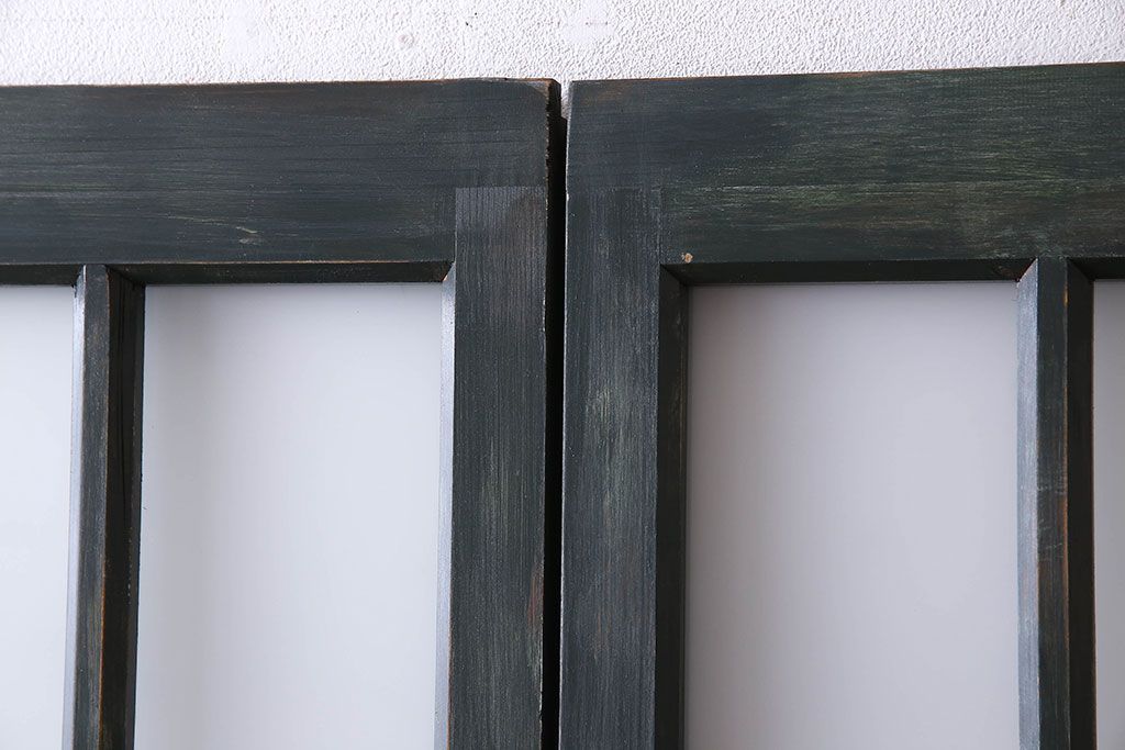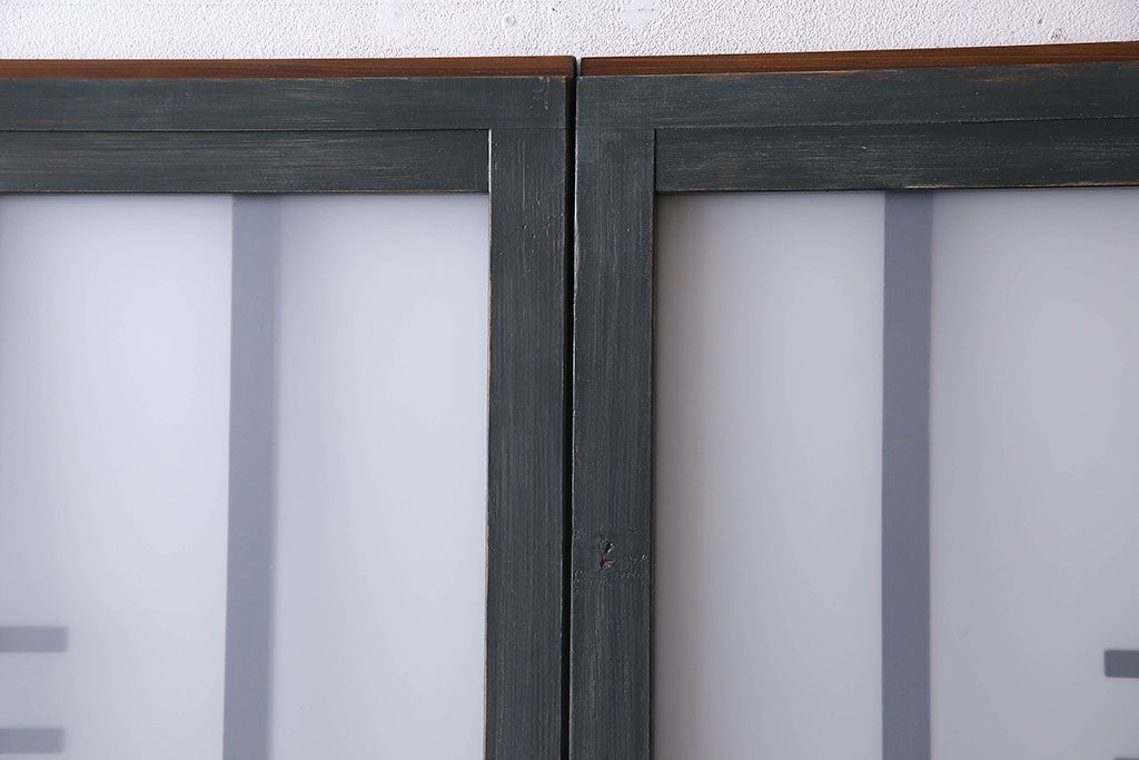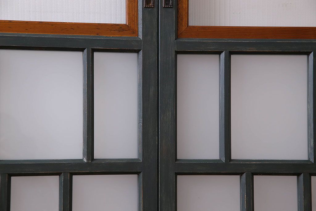 レトロガラス入り!珍しいデザインのガラス帯戸(ガラス戸、引き戸、建具)2枚組