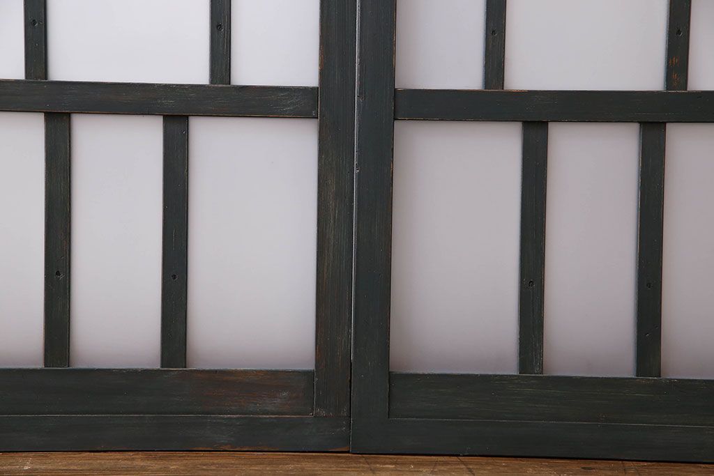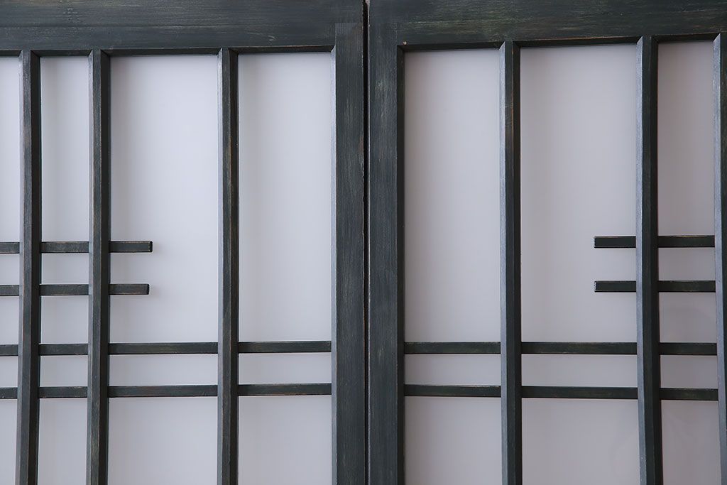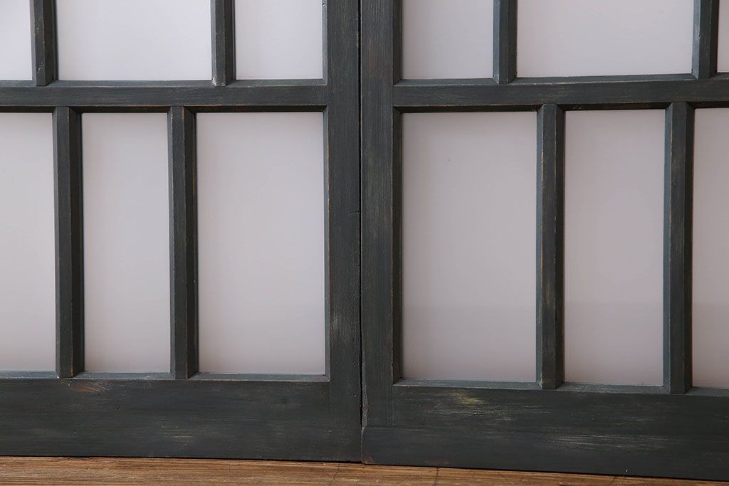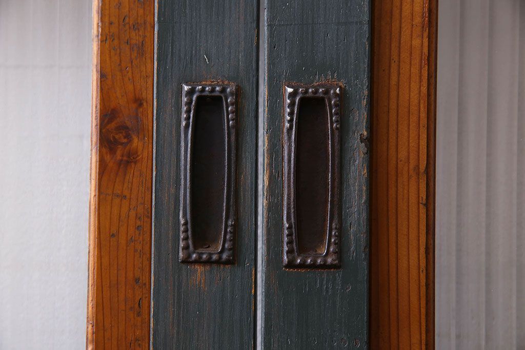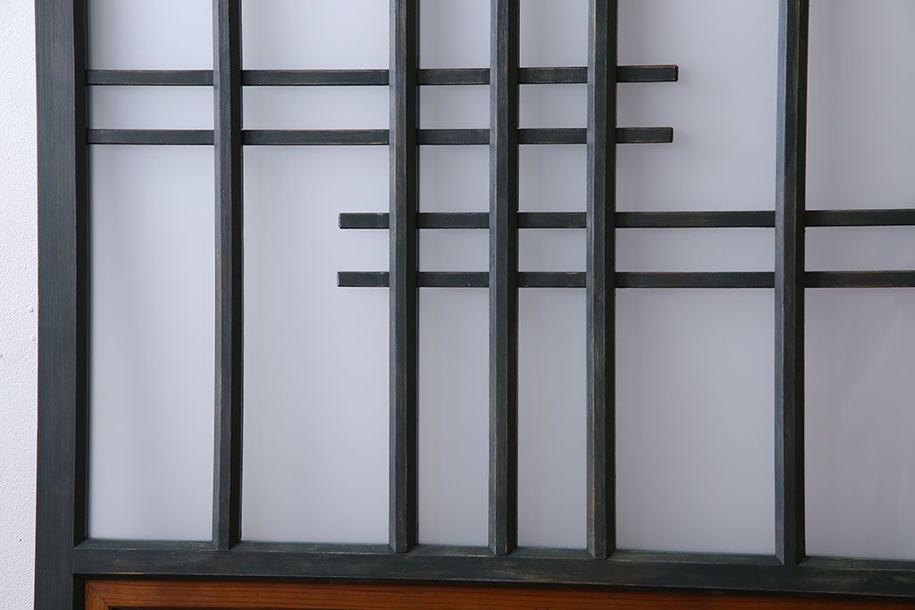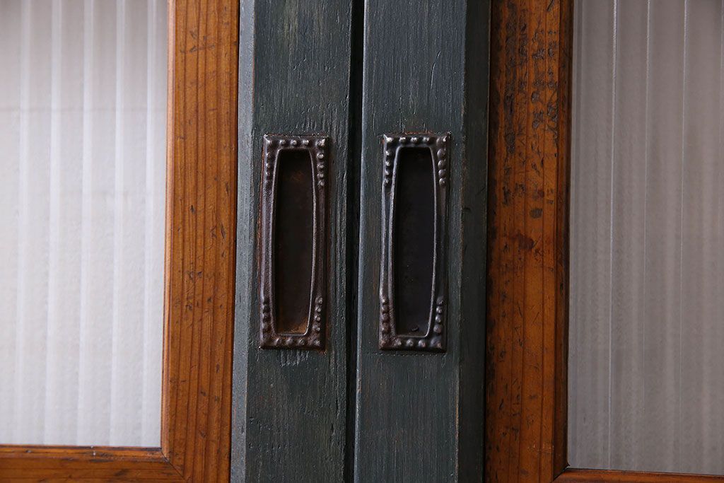 レトロガラス入り!珍しいデザインのガラス帯戸(ガラス戸、引き戸、建具)2枚組