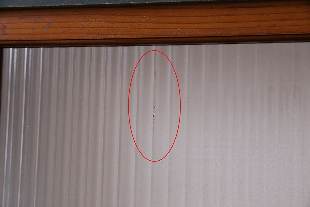 32枚目の画像にありますようにモールガラスにダメージがありますが、使用上、強度上に問題はありません。1枚目の画像にあるガラス戸2枚のうち、左のみ計測致しましたので、そちらをご参考ください。