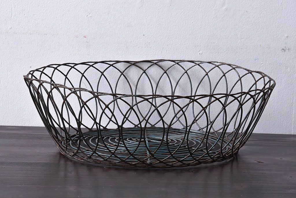 アンティーク雑貨 和製アンティーク シャビーな質感が魅力的なアイアンのカゴ(小物入れ、ディスプレイ雑貨)