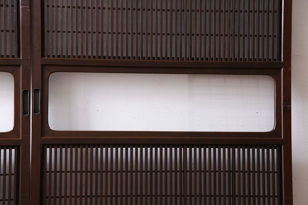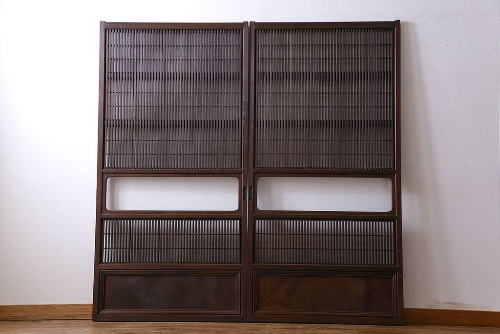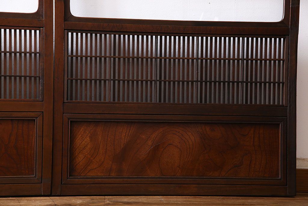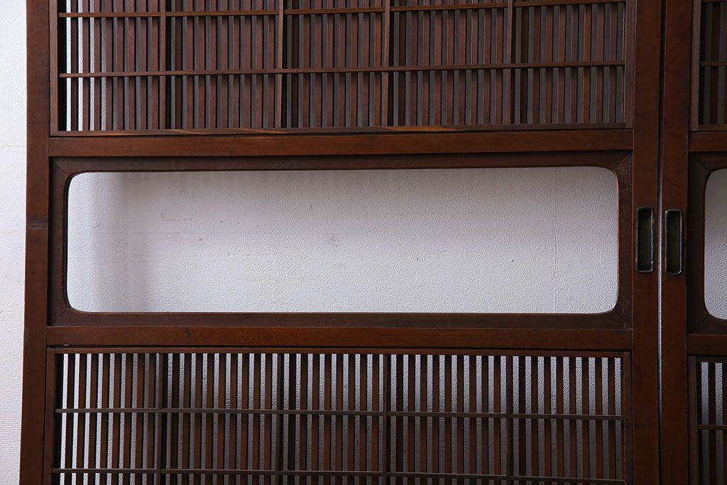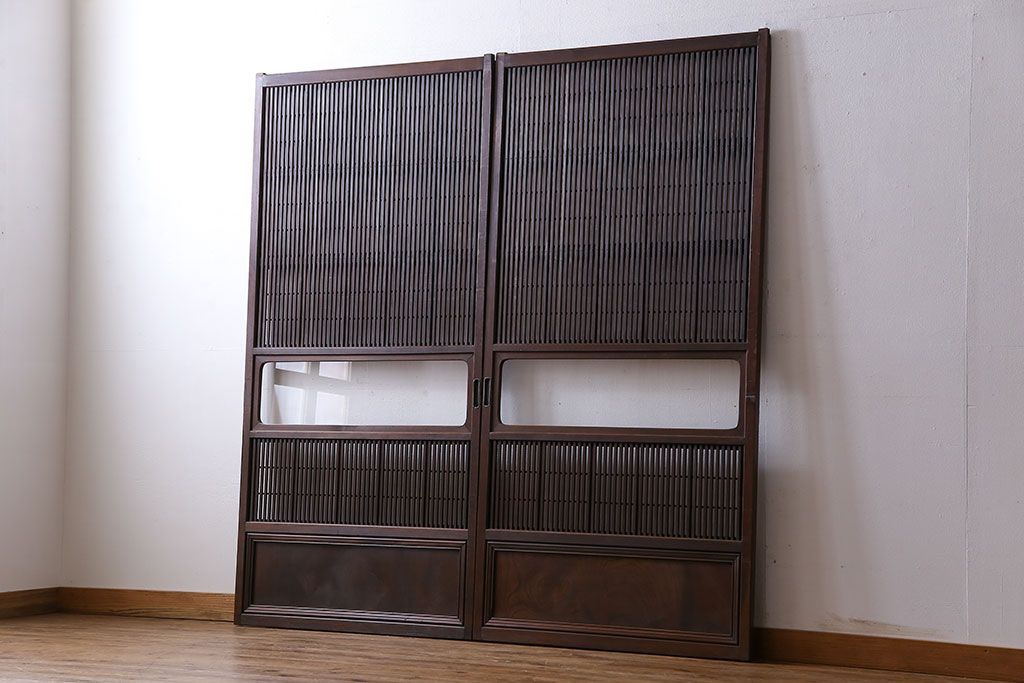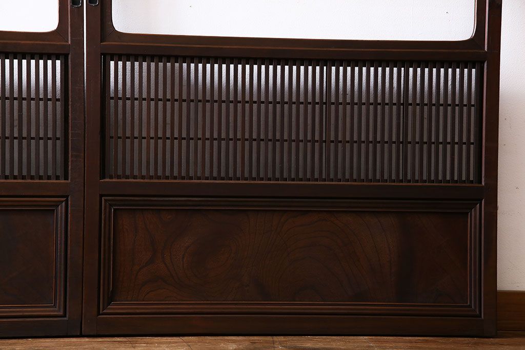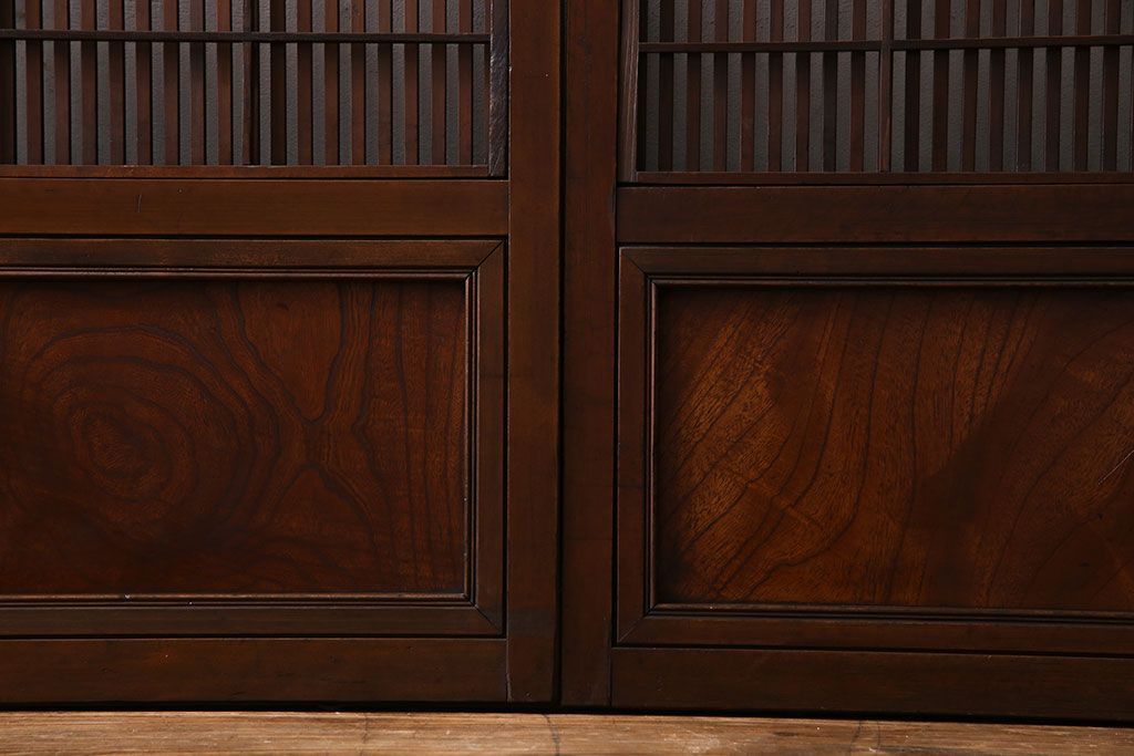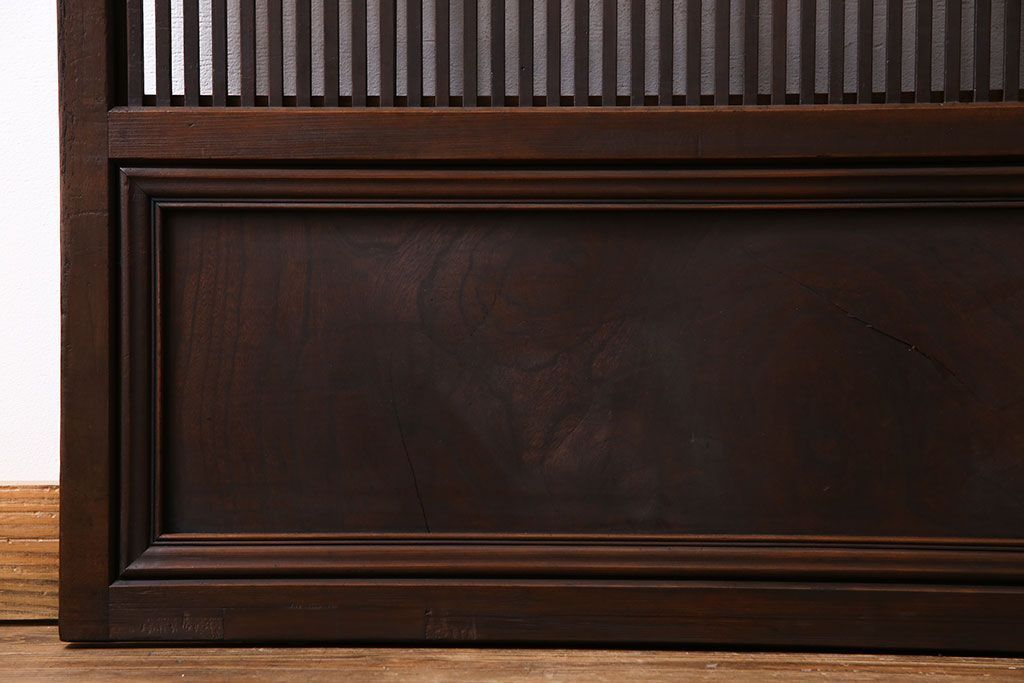 和製アンティーク 腰板ケヤキ材 モダンな雰囲気の裏障子付き帯格子戸(引き戸、建具)2枚組(2)