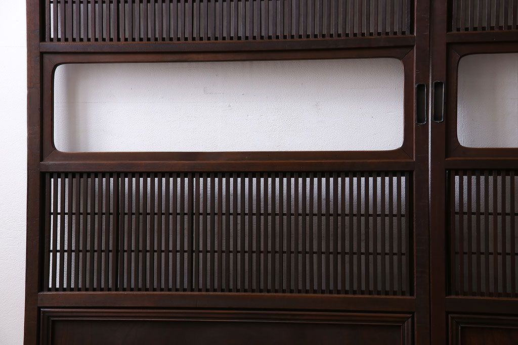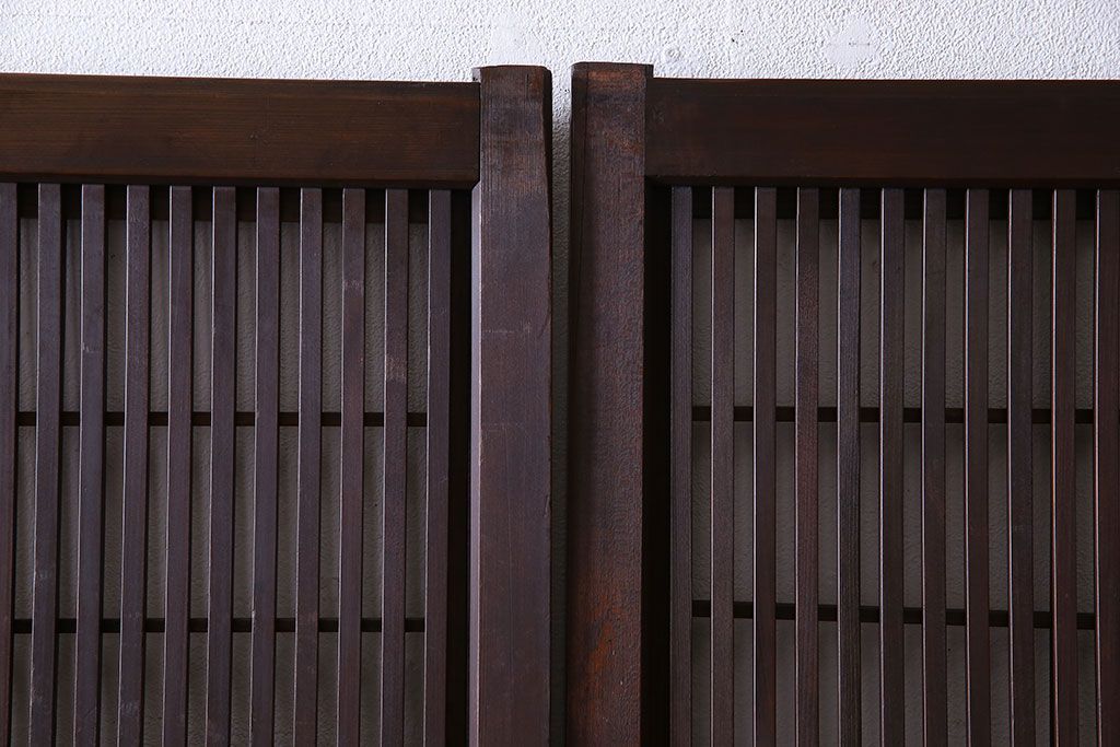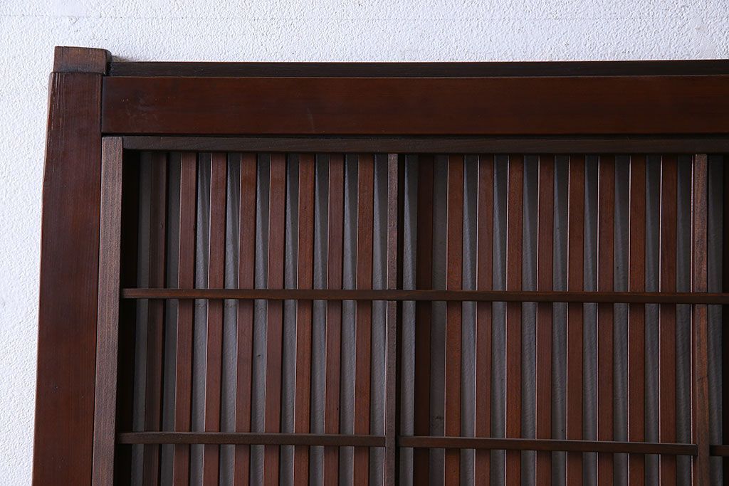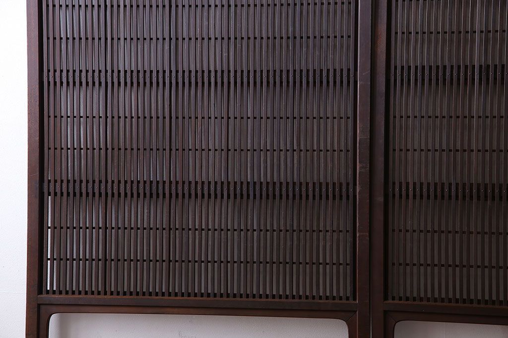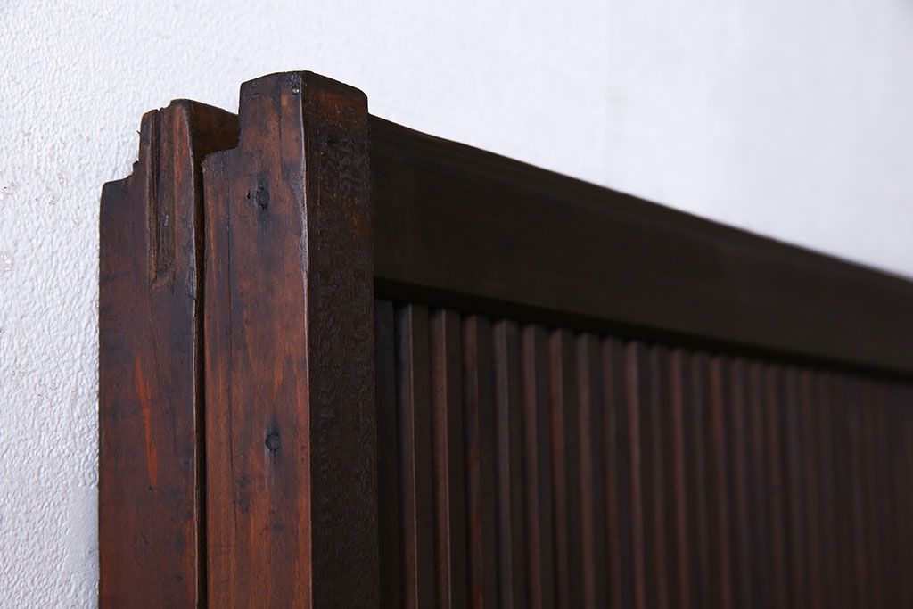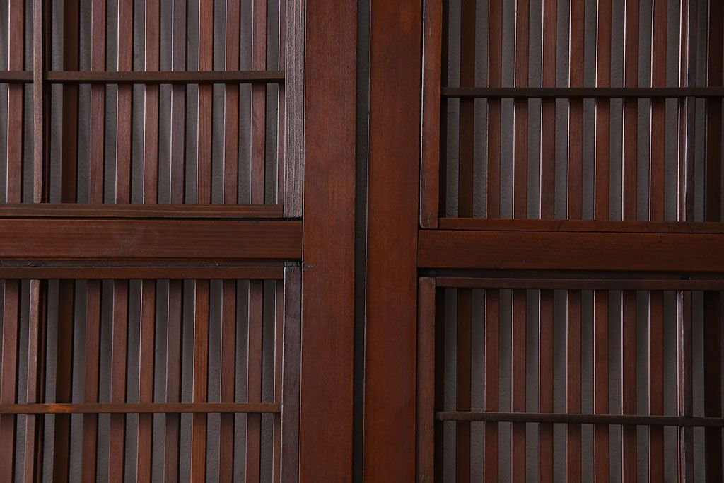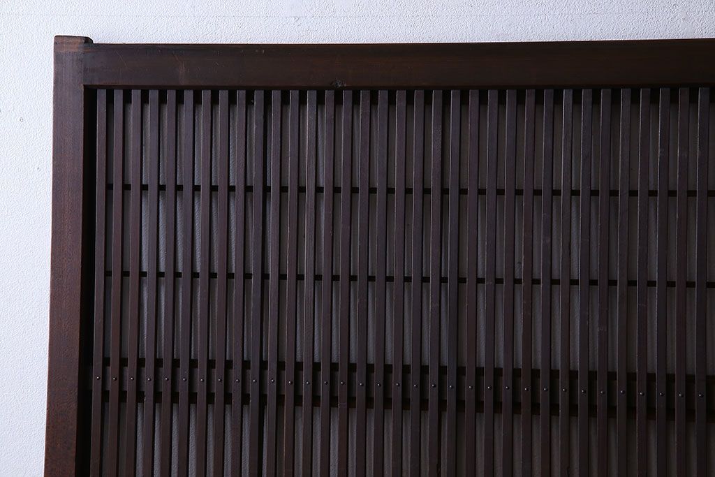 和製アンティーク 腰板ケヤキ材 モダンな雰囲気の裏障子付き帯格子戸(引き戸、建具)2枚組(2)