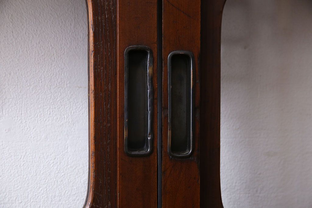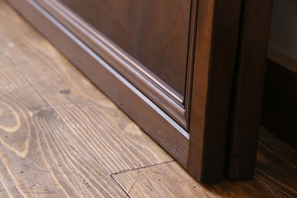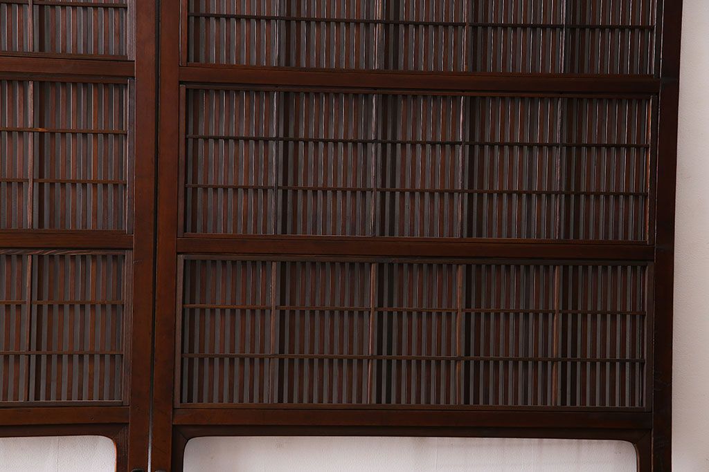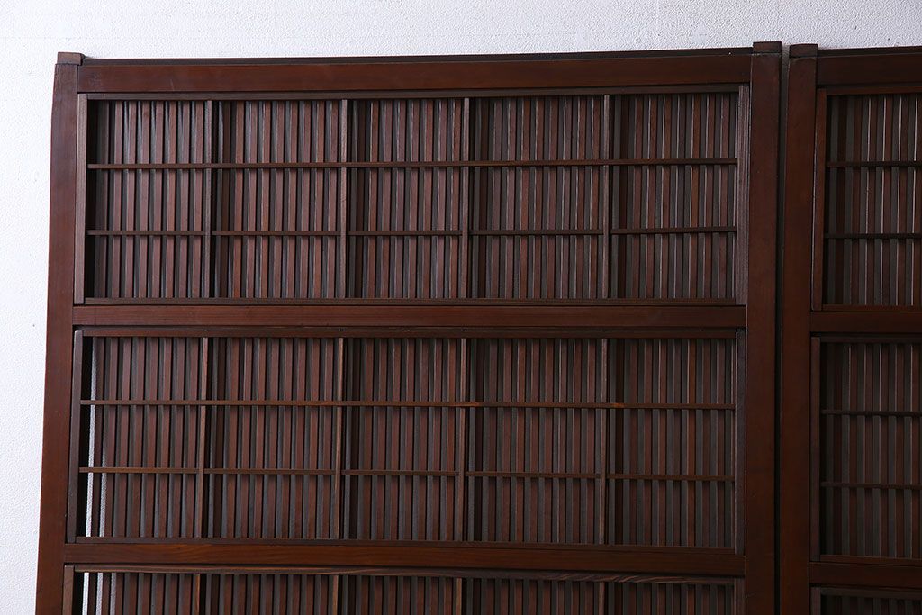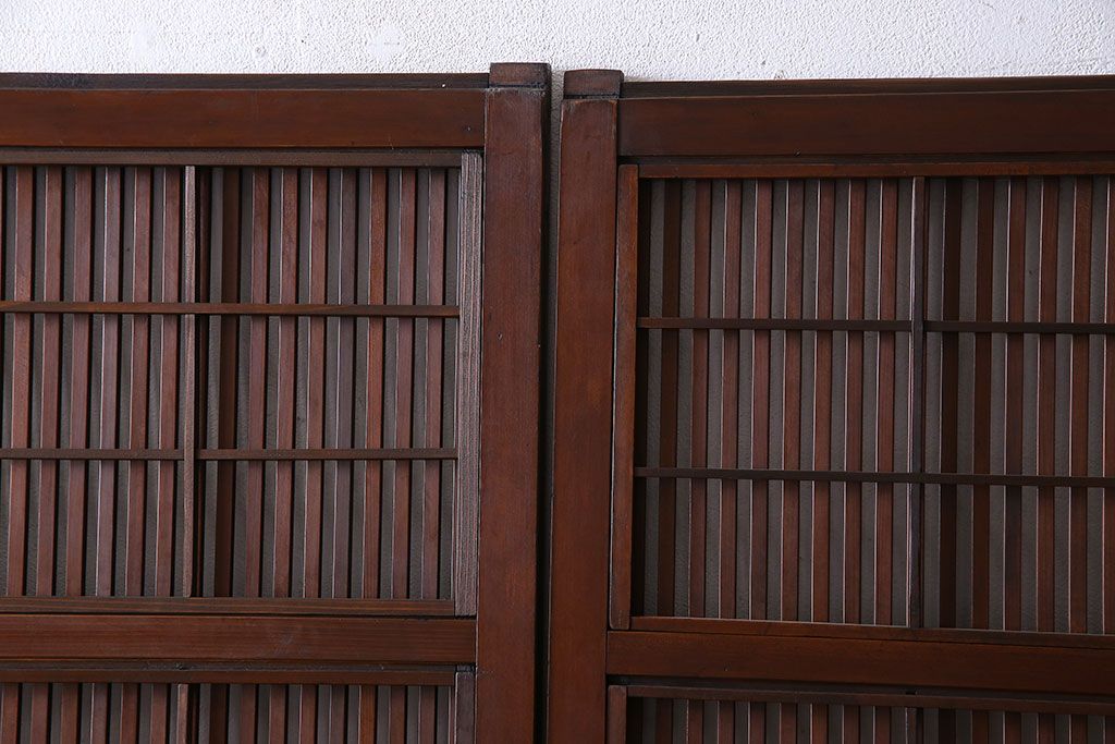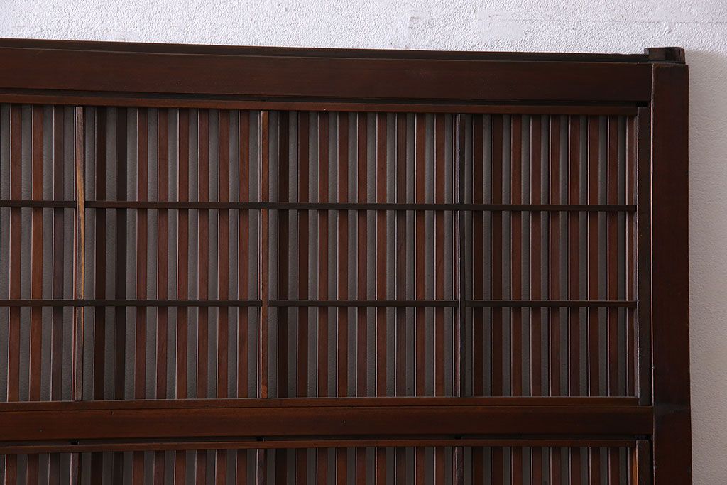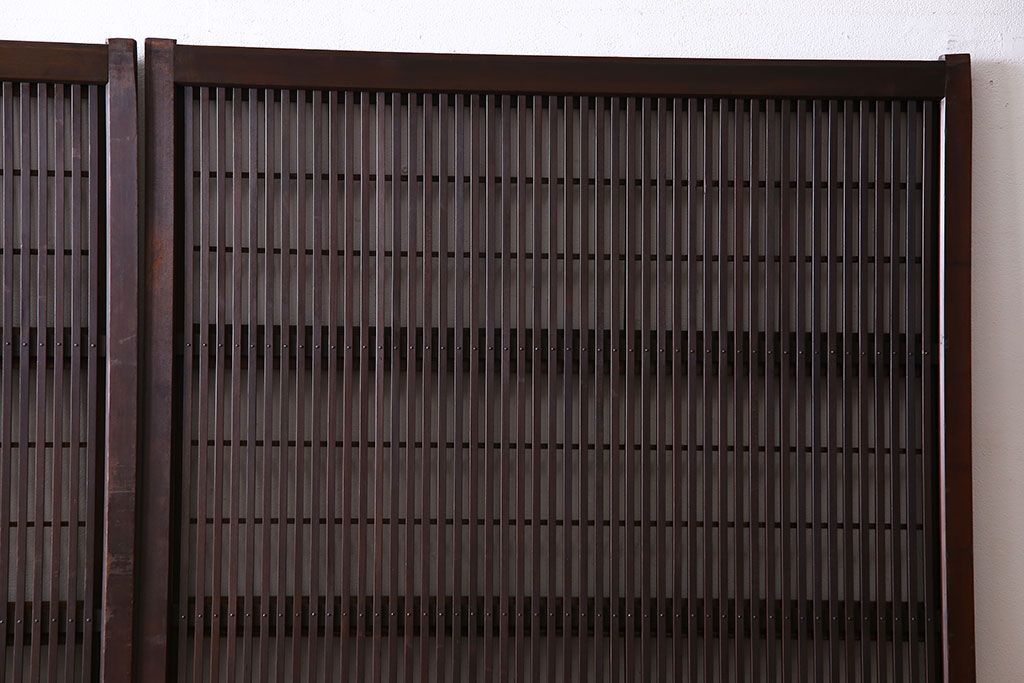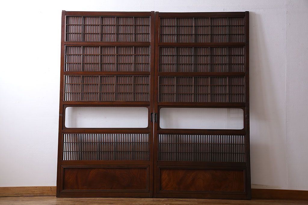 和製アンティーク 腰板ケヤキ材 モダンな雰囲気の裏障子付き帯格子戸(引き戸、建具)2枚組(2)