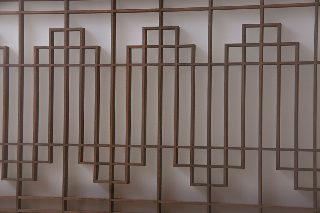 ドア・建具> 明り取り・欄間 > アンティーク雑貨 【S様ご成約・ご決済用】レトロガラス入り!美しい組子が目を惹くアンティーク欄間(明かり取り、明り取り)(1)