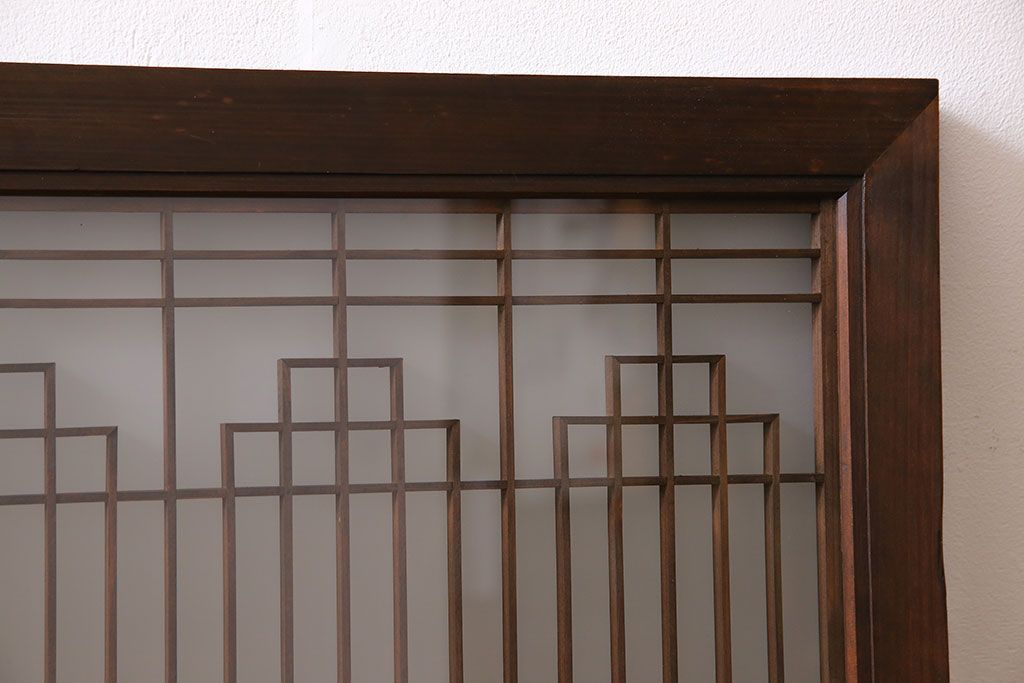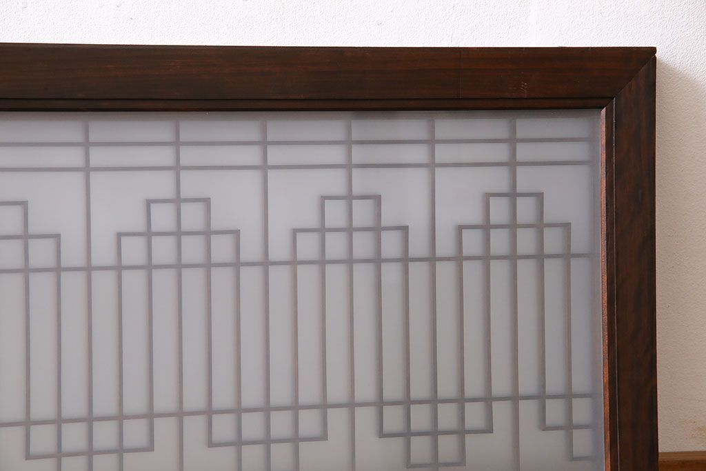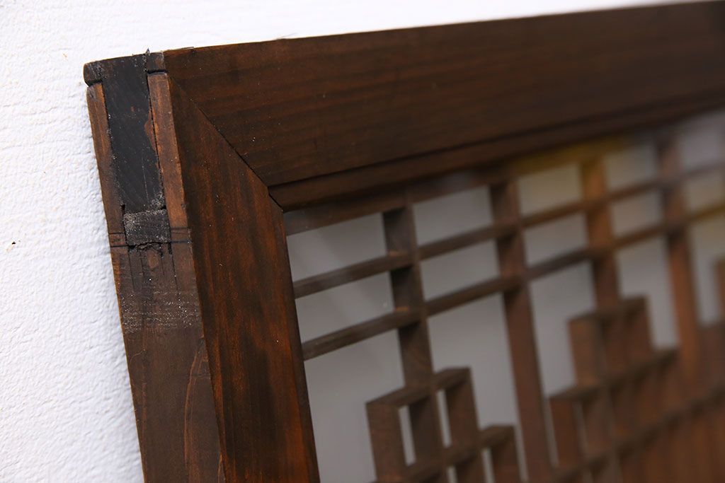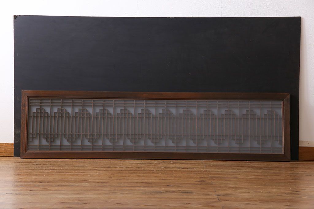 レトロガラス入り!美しい組子が目を惹くアンティーク欄間(明かり取り、明り取り)(2)