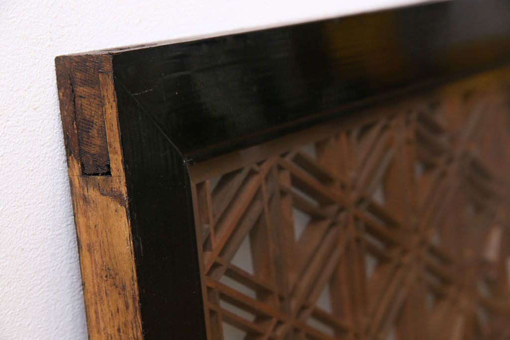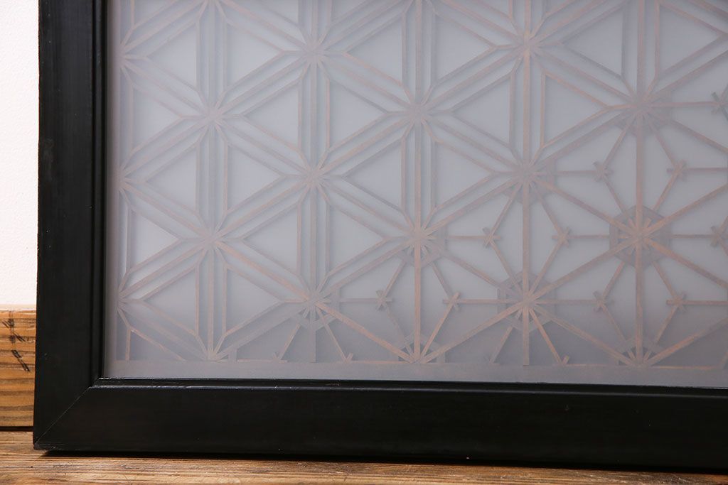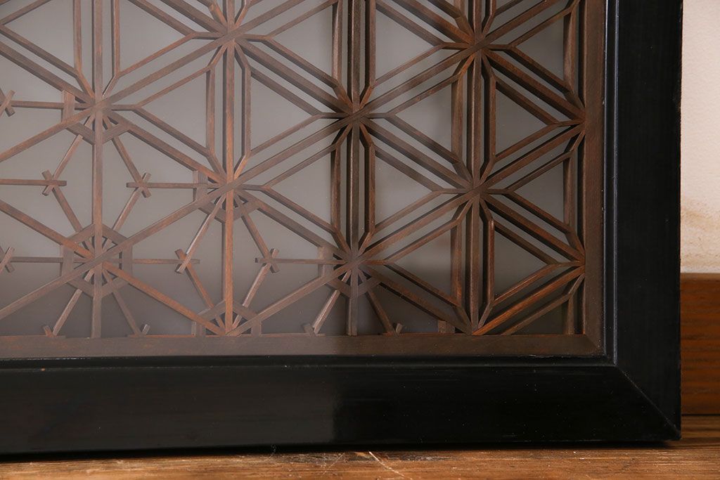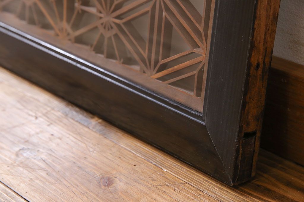アンティーク雑貨 和製アンティーク レトロガラス入り!古い木製の欄間(明かり取り、明り取り)
