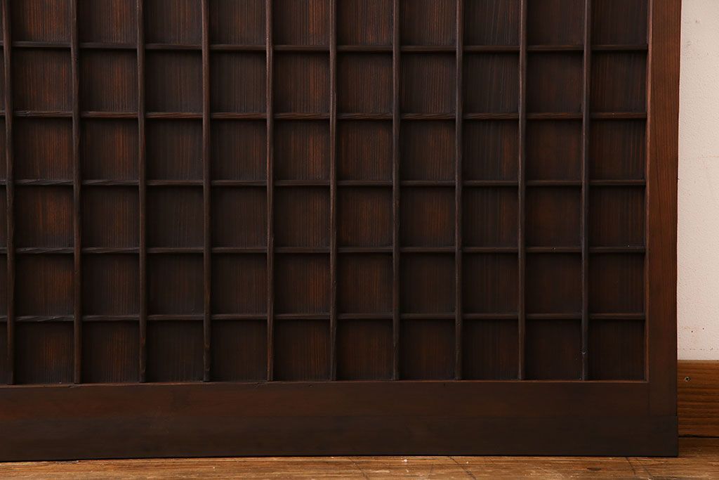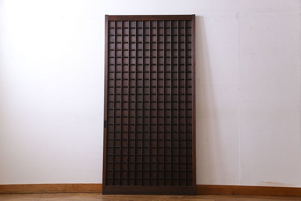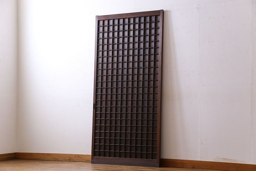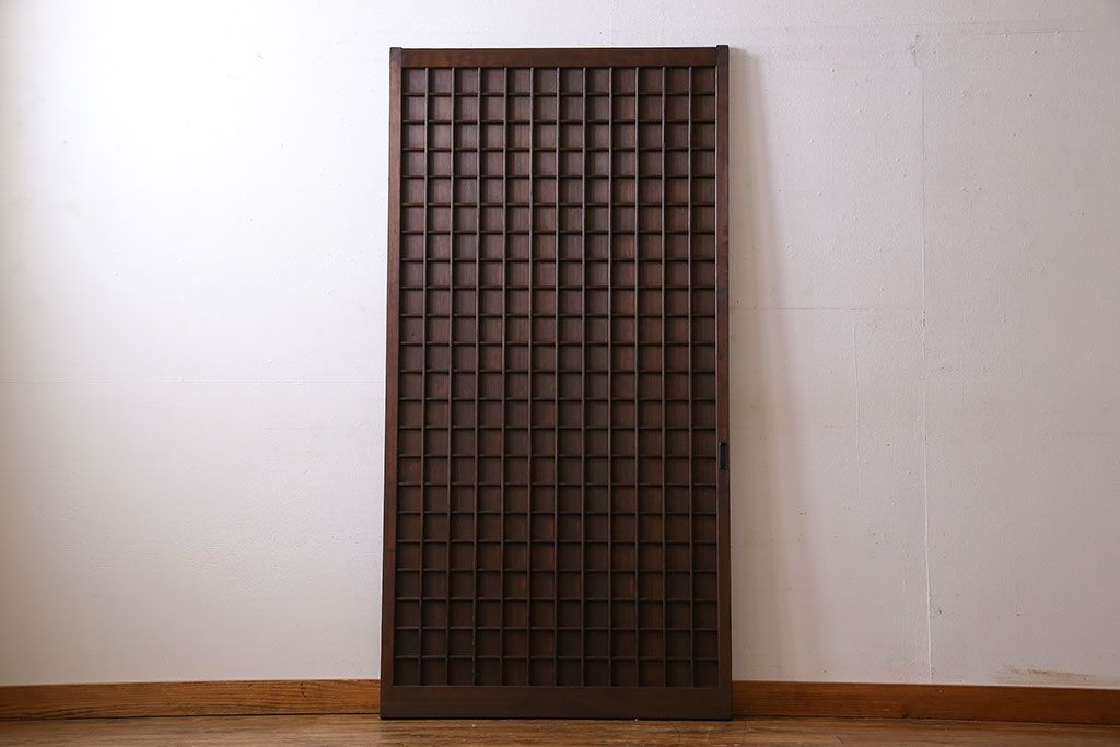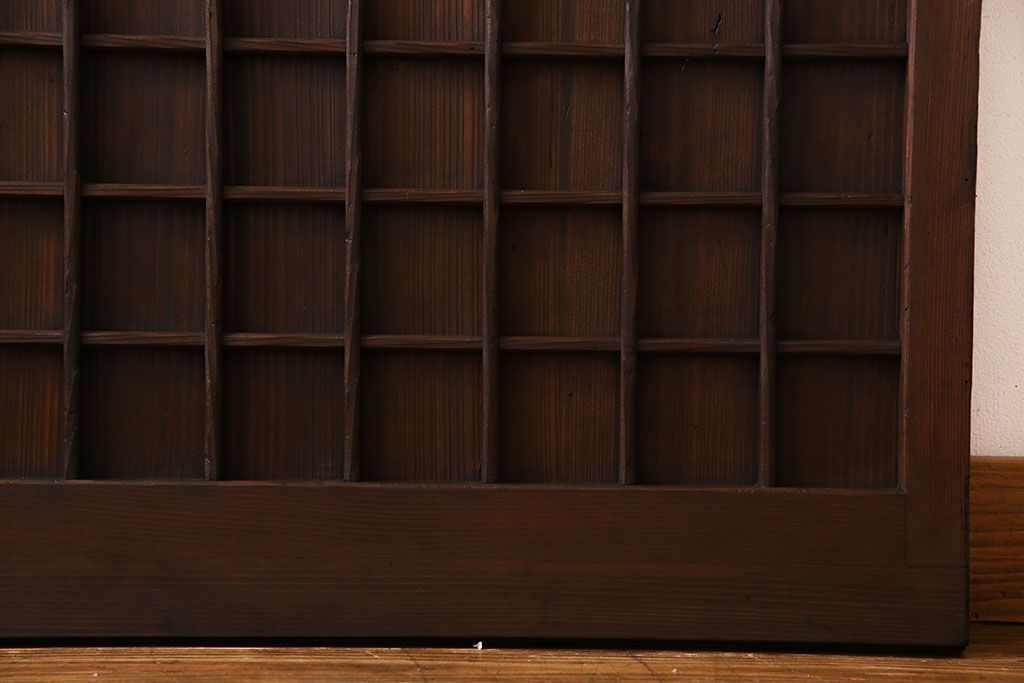 ラフジュ工房> 衝立・パーテーション> スタンド式衝立 > 和製アンティーク 両面マス目格子 シックな色合いの板戸(きつね格子、狐格子、引き戸、仕切り戸、建具)