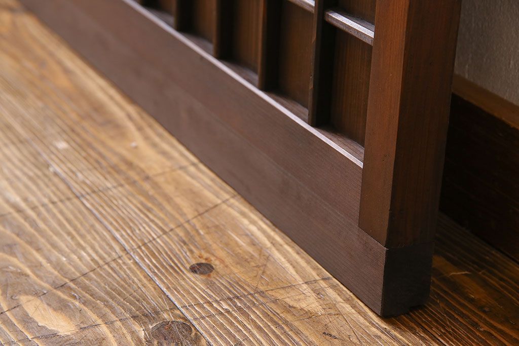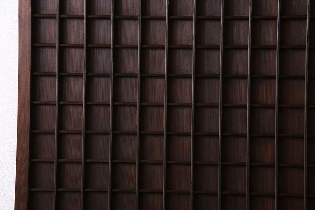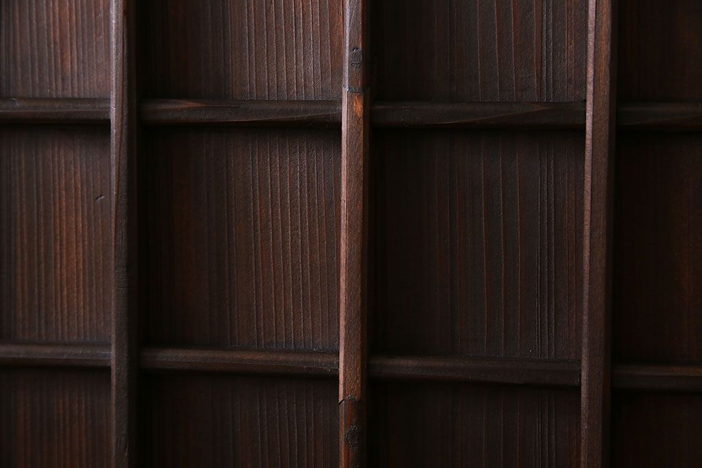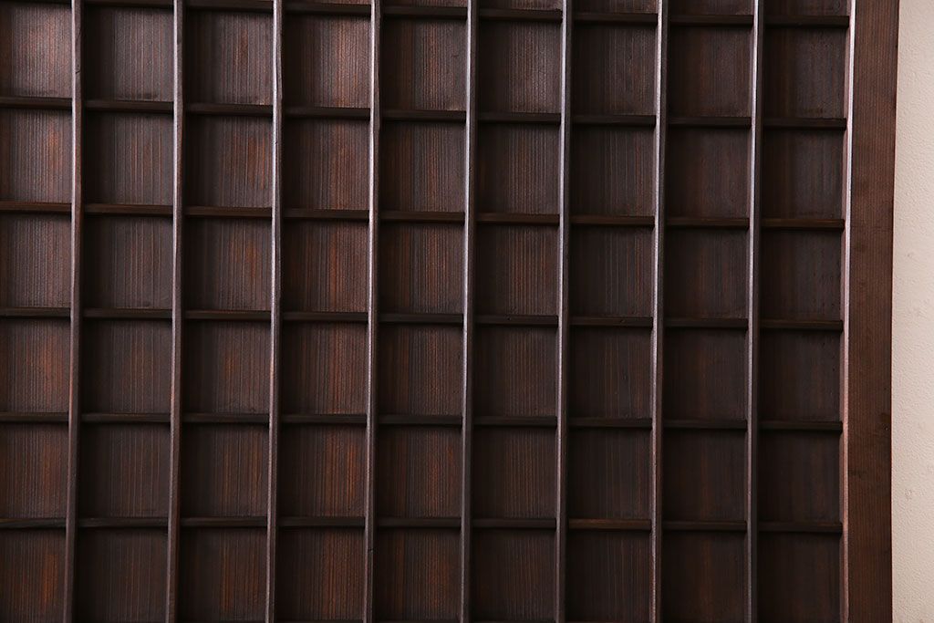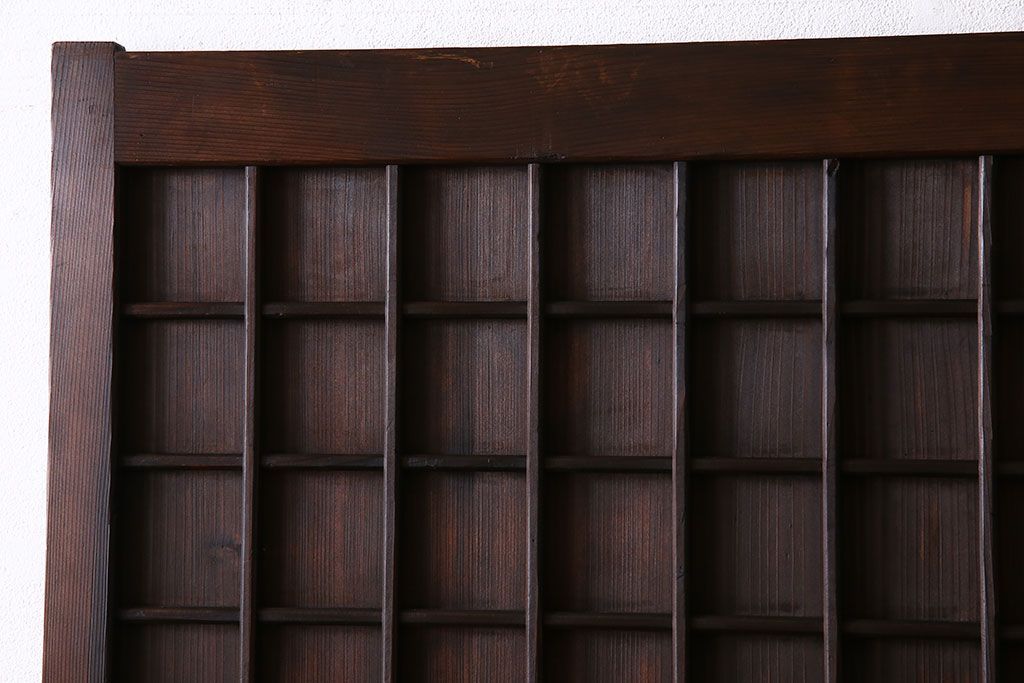 ラフジュ工房> 衝立・パーテーション> スタンド式衝立 > 和製アンティーク 両面マス目格子 シックな色合いの板戸(きつね格子、狐格子、引き戸、仕切り戸、建具)
