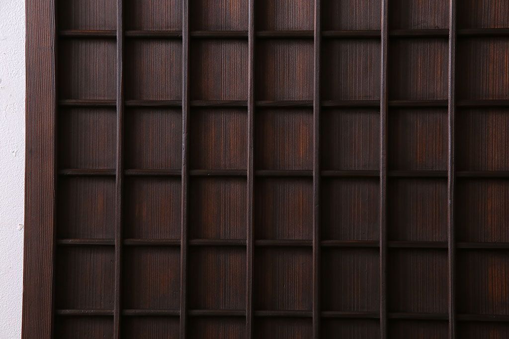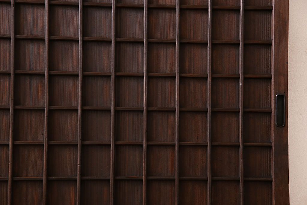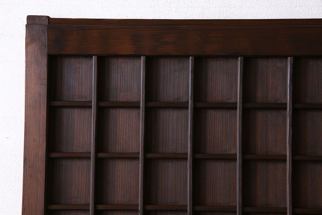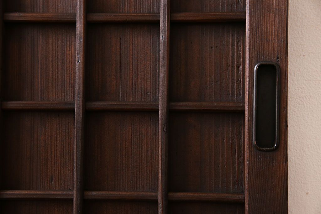 和製アンティーク 両面マス目格子 シックな色合いの板戸(きつね格子、狐格子、引き戸、仕切り戸、建具)