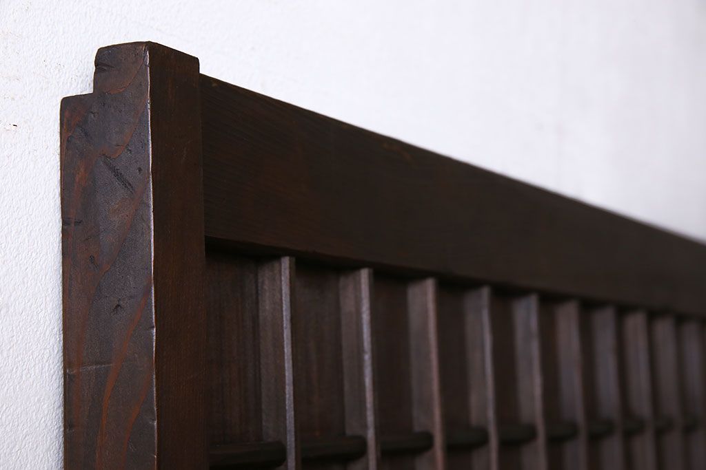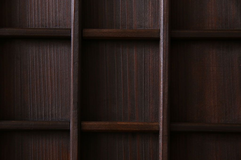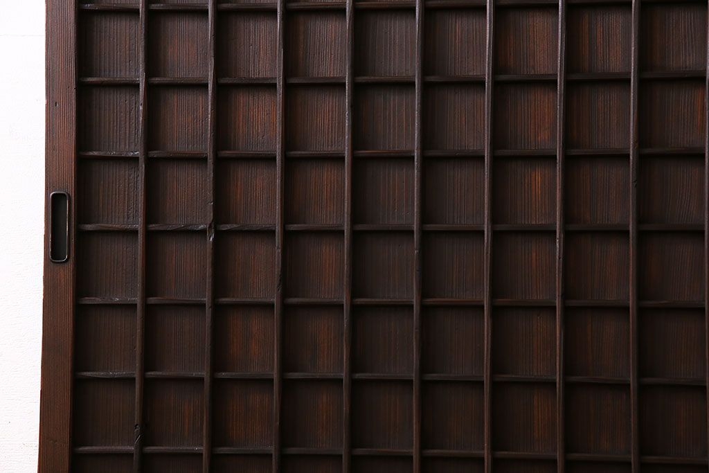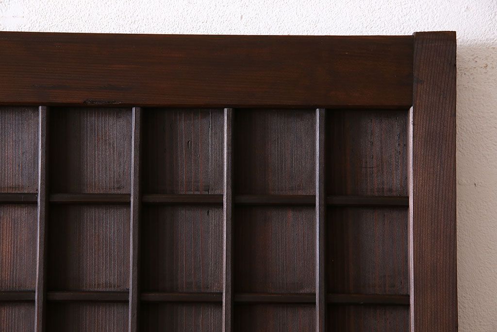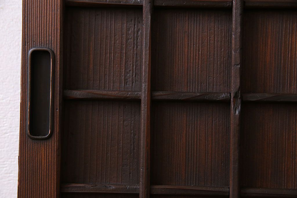 和製アンティーク 両面マス目格子 シックな色合いの板戸(きつね格子、狐格子、引き戸、仕切り戸、建具)