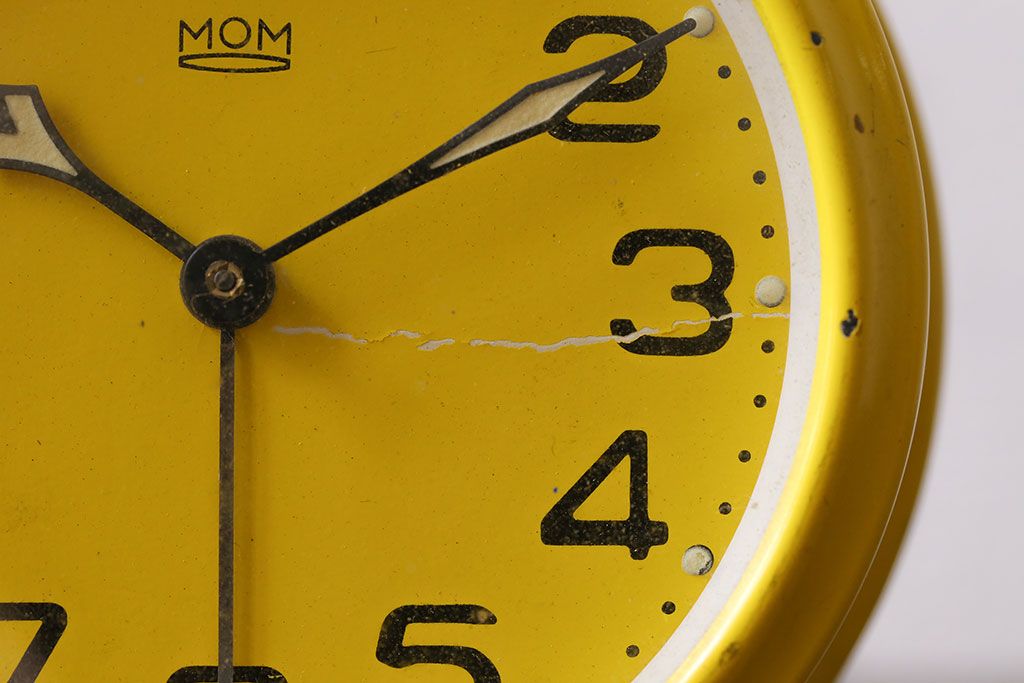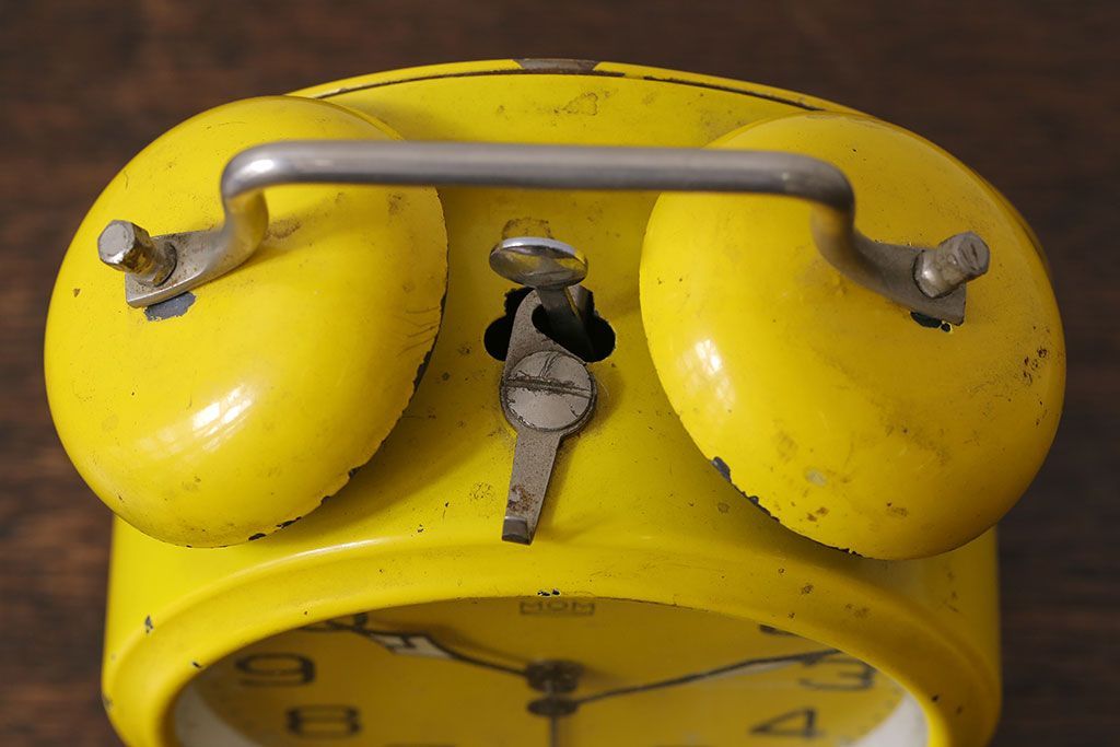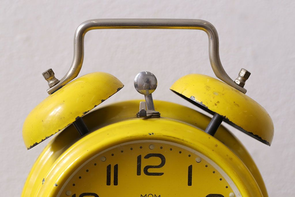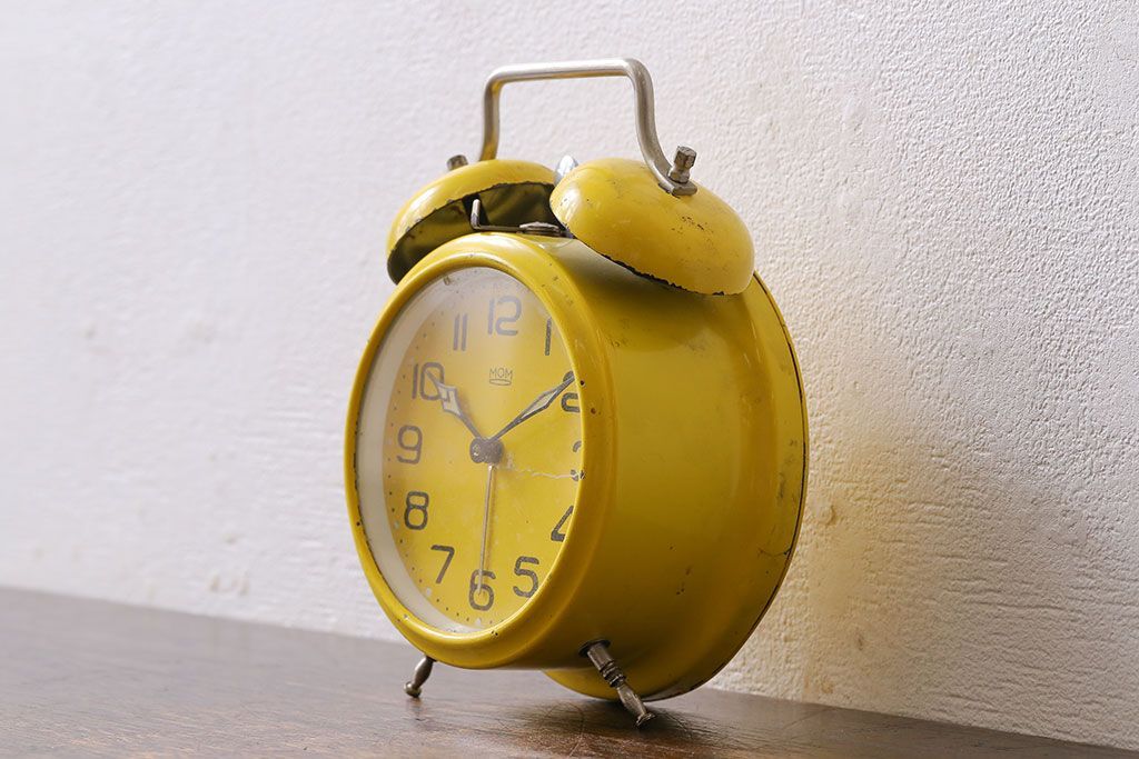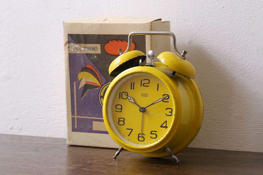 時計> 掛け時計 > アンティーク雑貨 ハンガリー製 MOM 箱付き!レトロなビンテージ置時計(目覚まし時計、枕時計)・イエロー