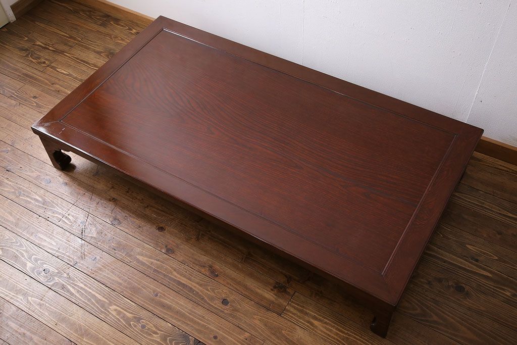 アンティーク家具 和製アンティーク 希少 総ケヤキ材 天板一枚板 漆塗りが美しい座卓(ローテーブル)