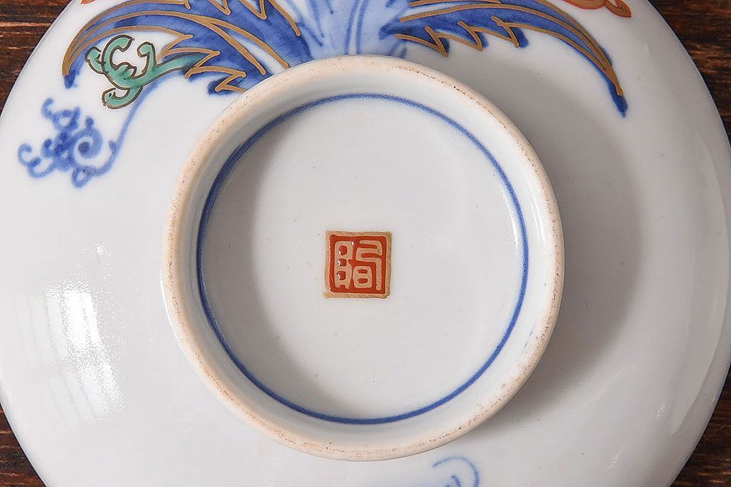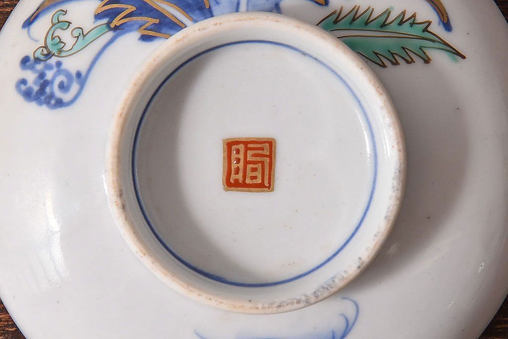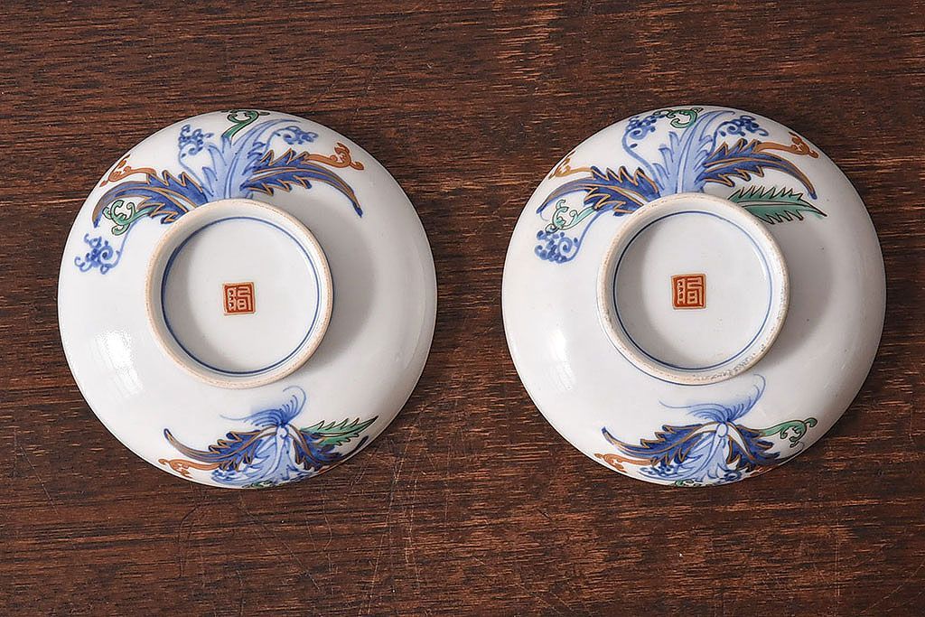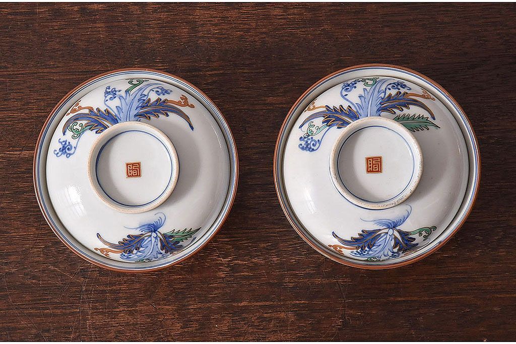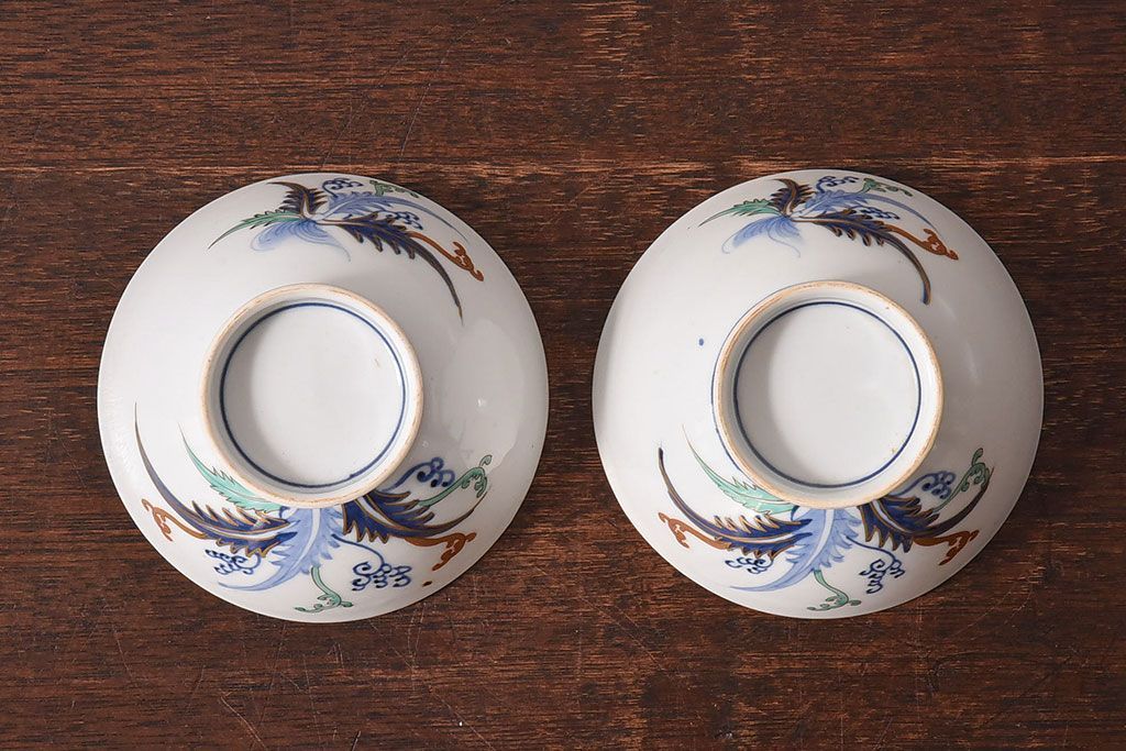 アンティーク雑貨 和製アンティーク 色絵 蓋付き茶碗2客セット(2)