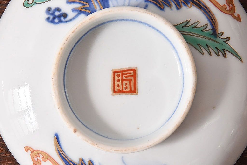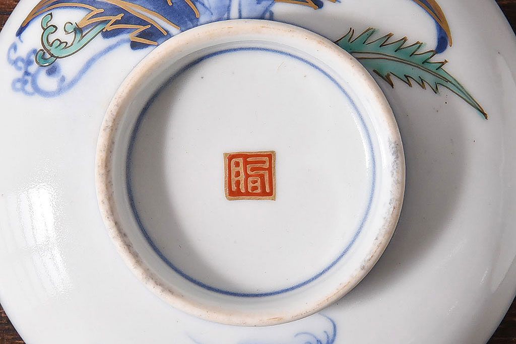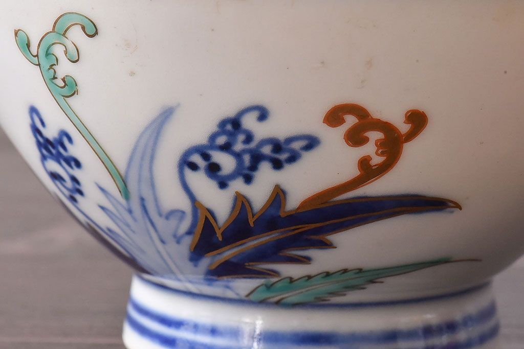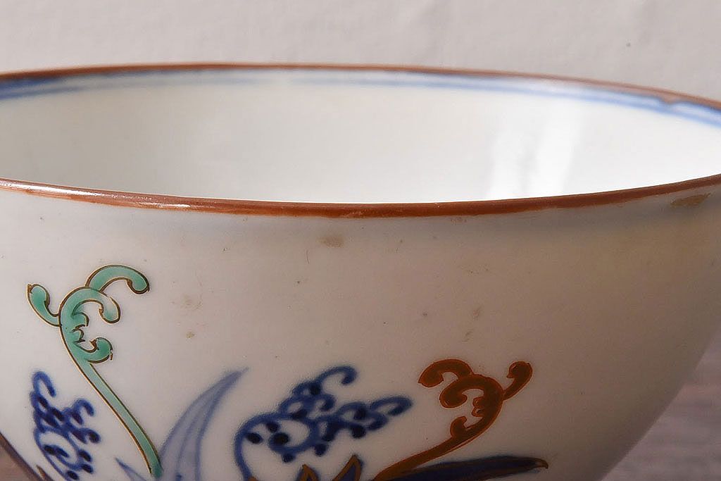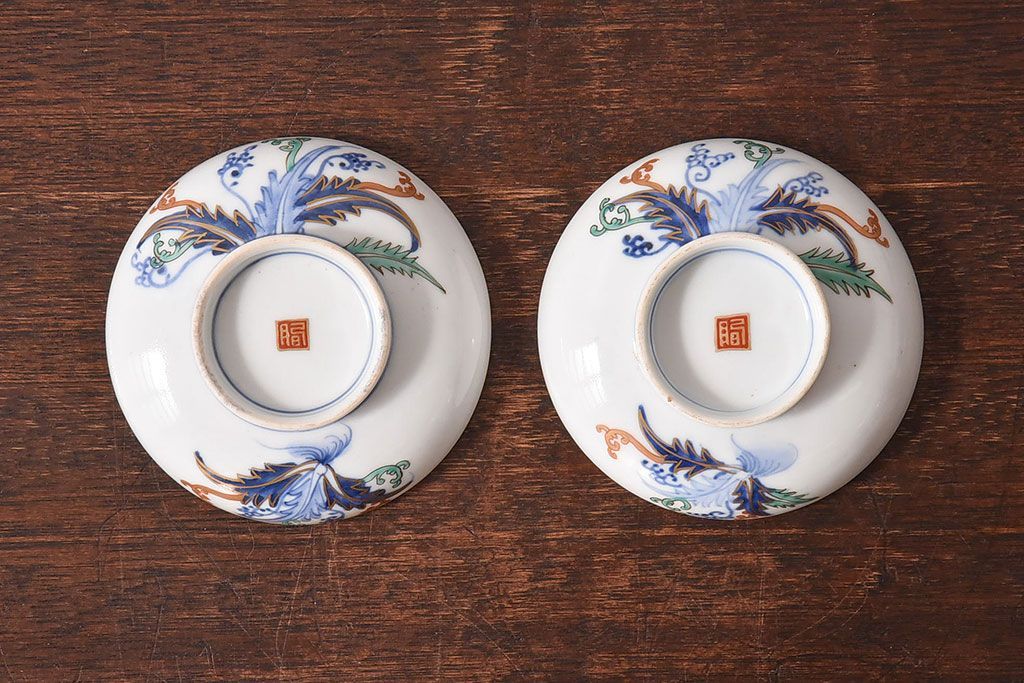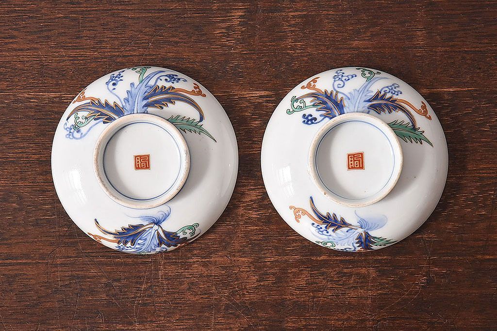 アンティーク雑貨 和食器 色絵 アンティーク蓋付き茶碗2客セット(1)