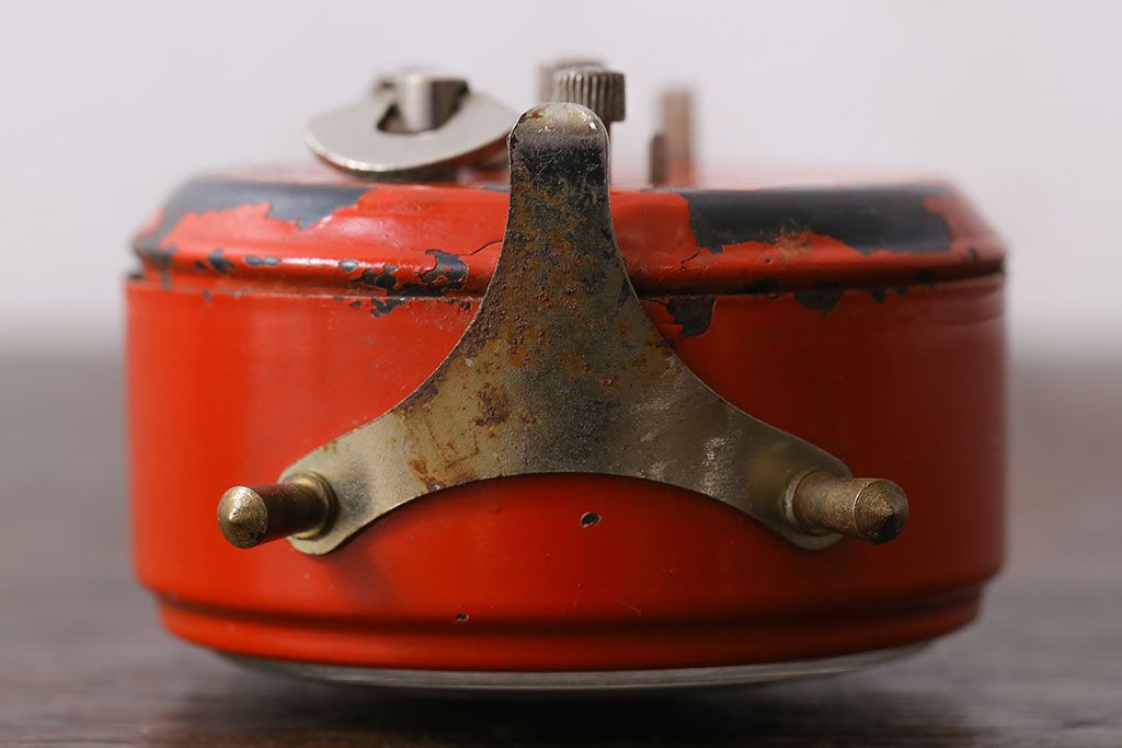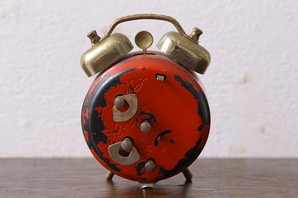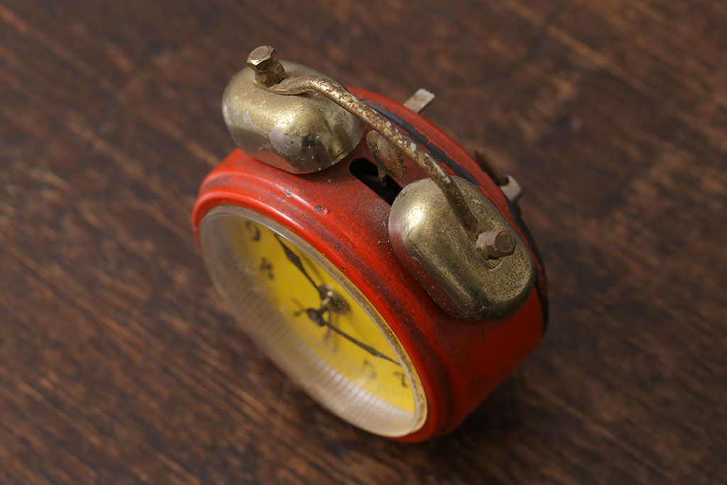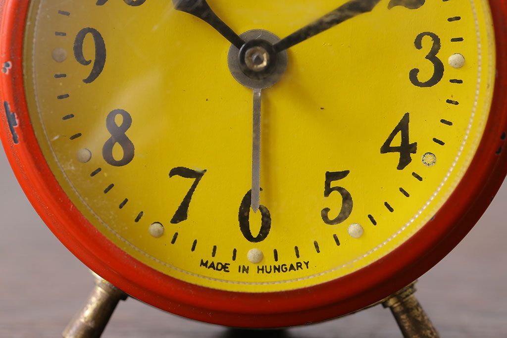 アンティーク雑貨 ハンガリー製 MOM レトロなビンテージ置時計(目ざまし時計、枕時計)・レッド