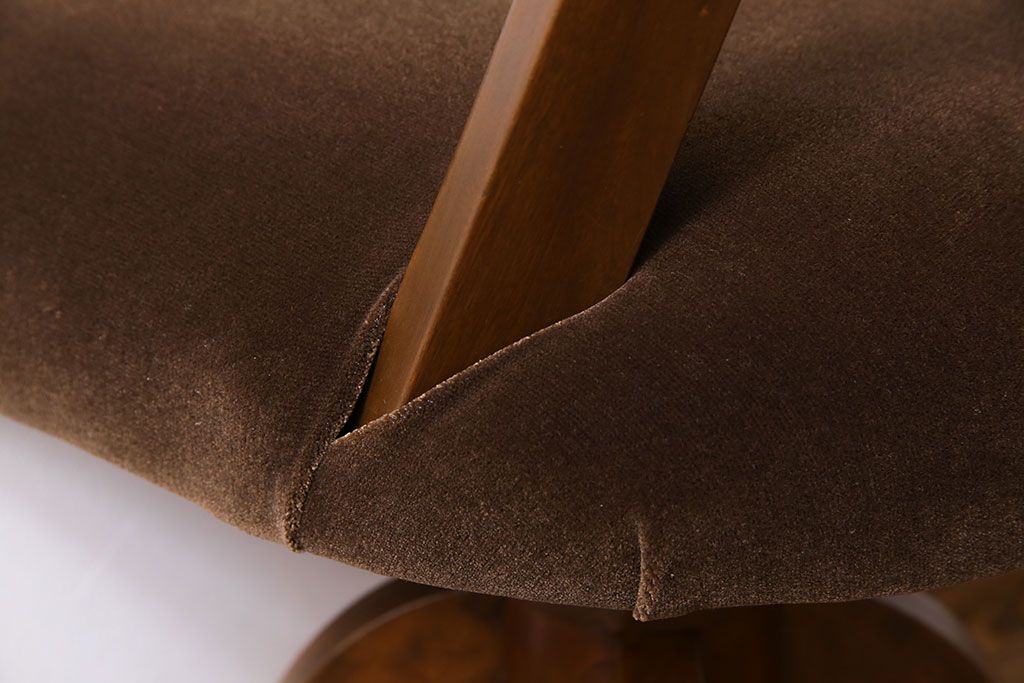 座面生地とクッション(座面内スポンジ)は当店にて張り替えておりますので、しっかりとしております。