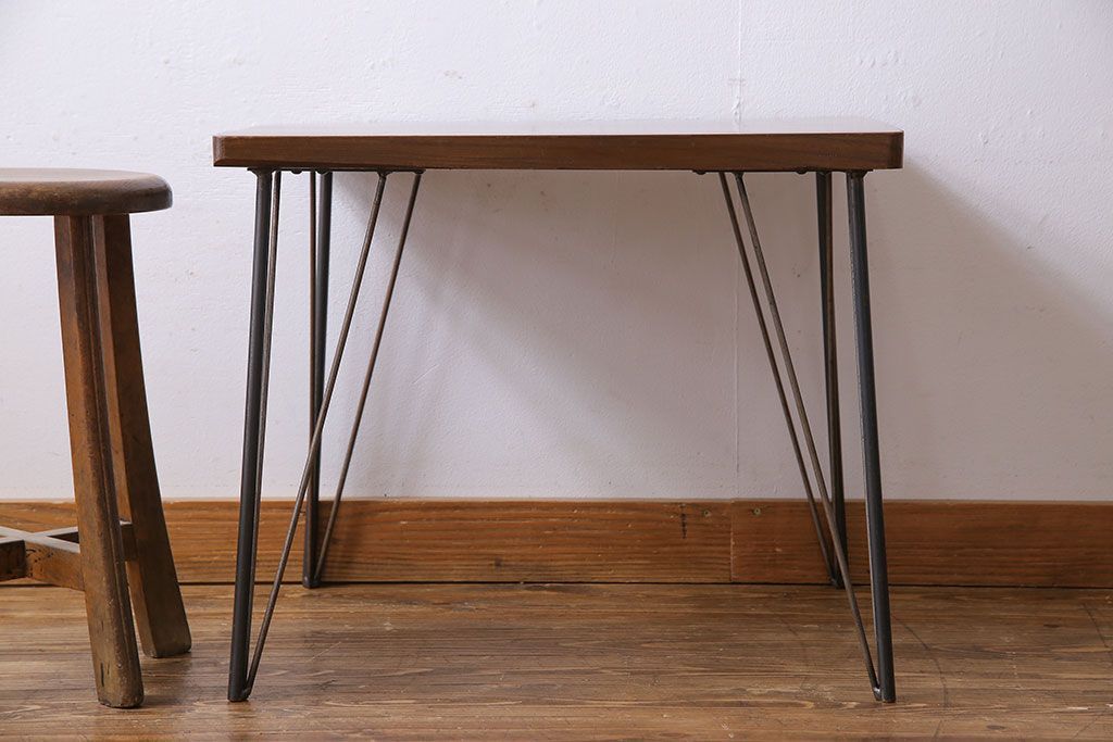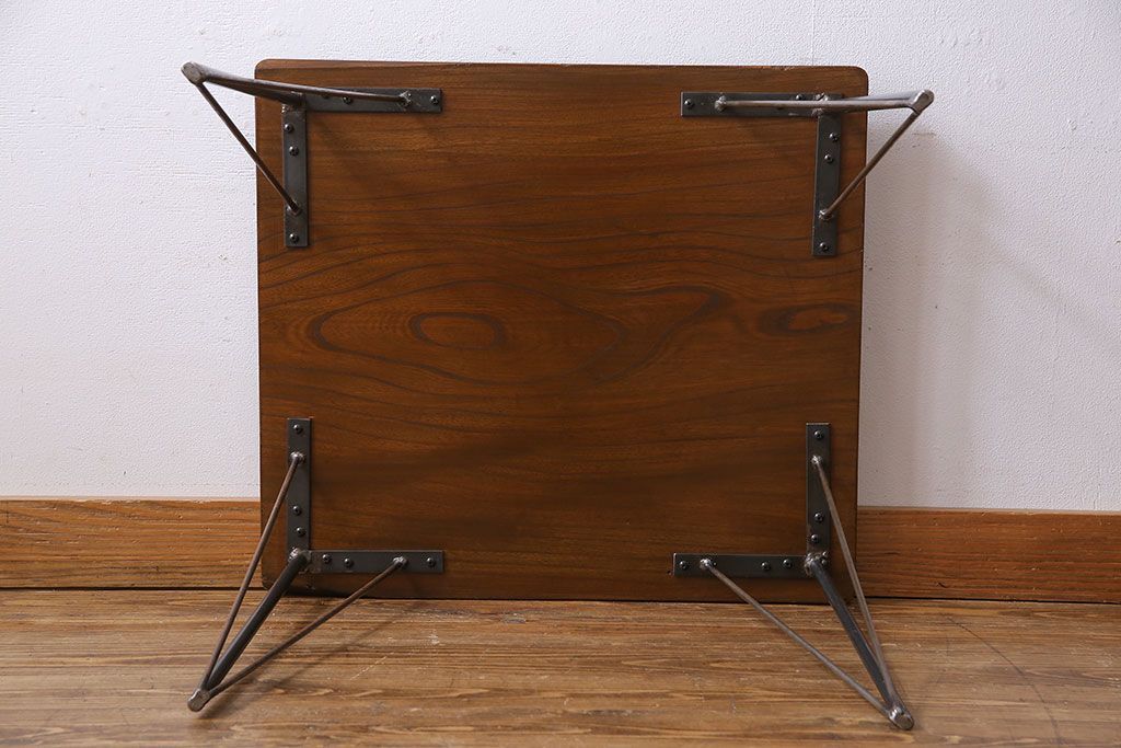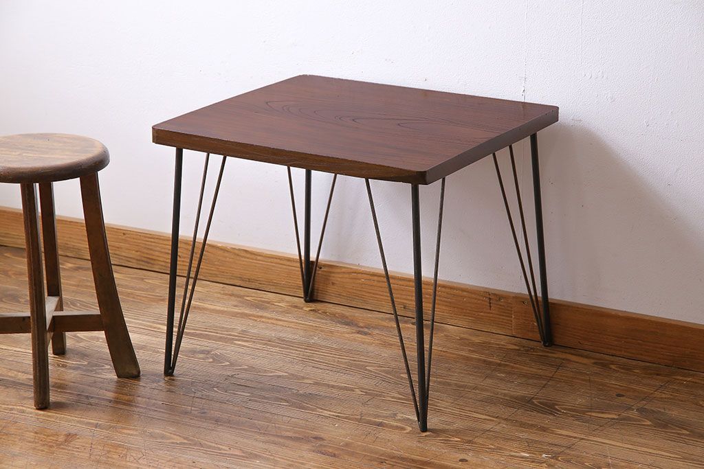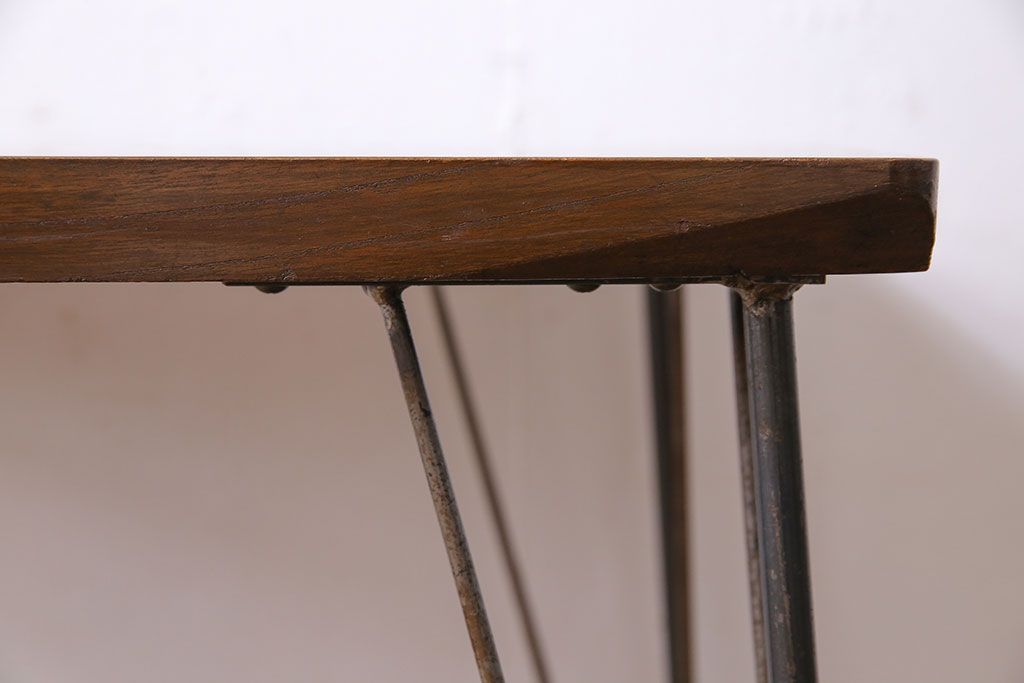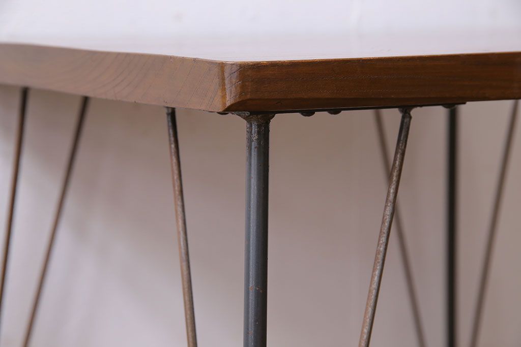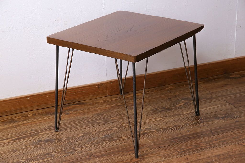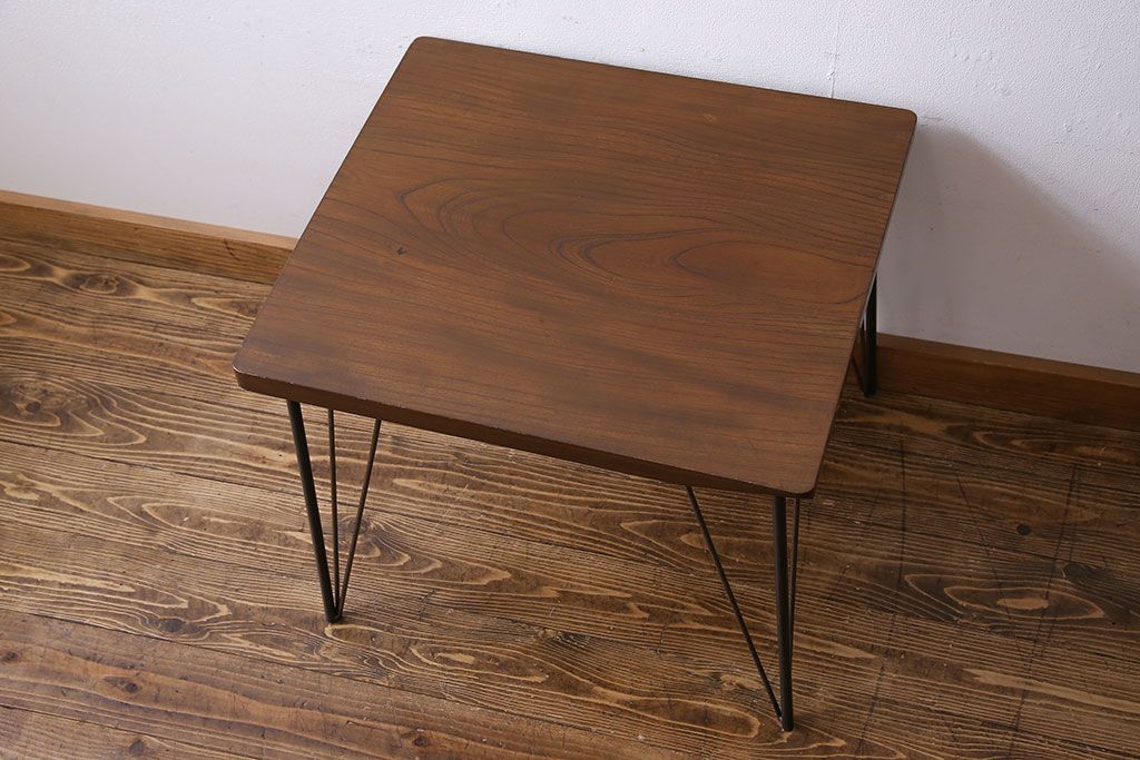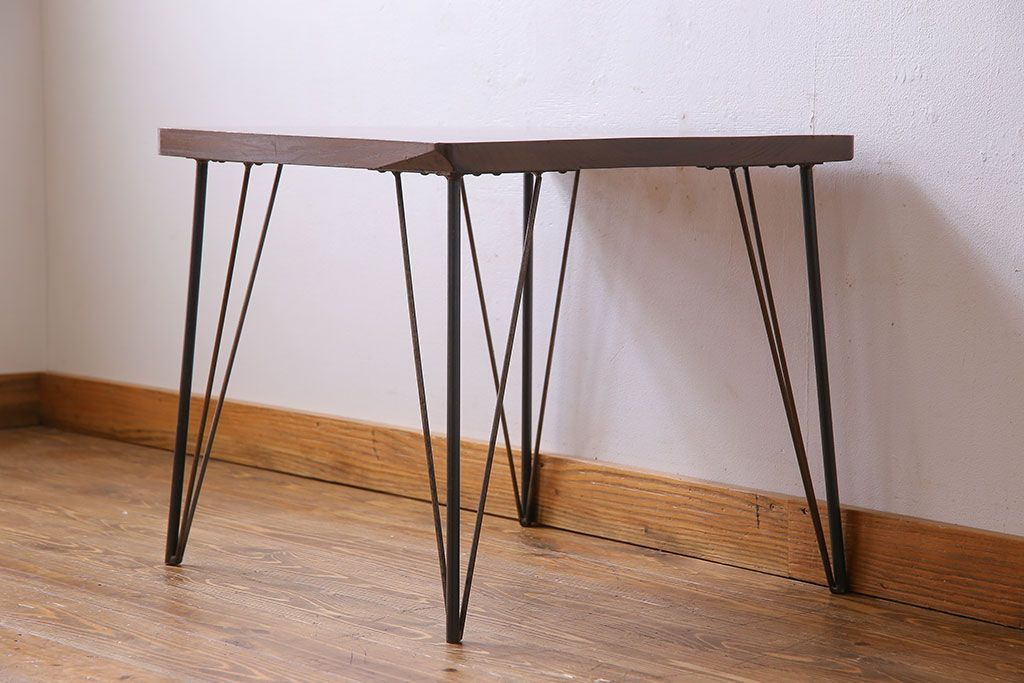 アンティーク家具 和製アンティーク 天板一枚板 ケヤキ材の木目が魅力的な鉄脚ローテーブル(サイドテーブル、カフェテーブル)