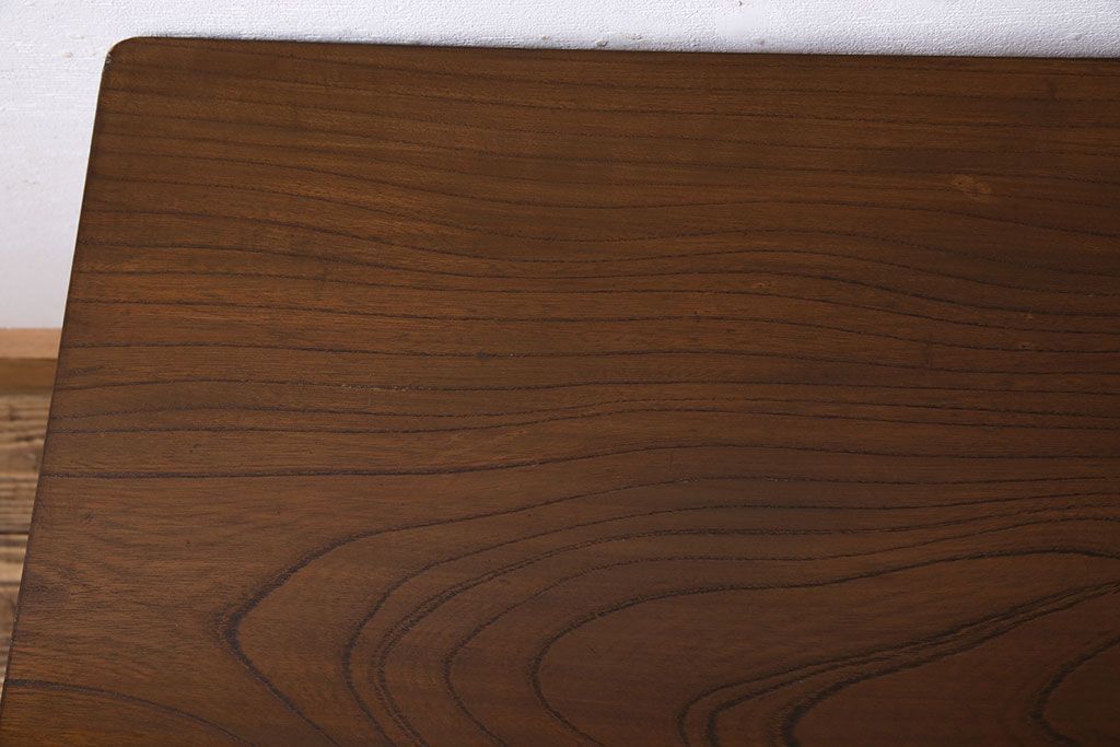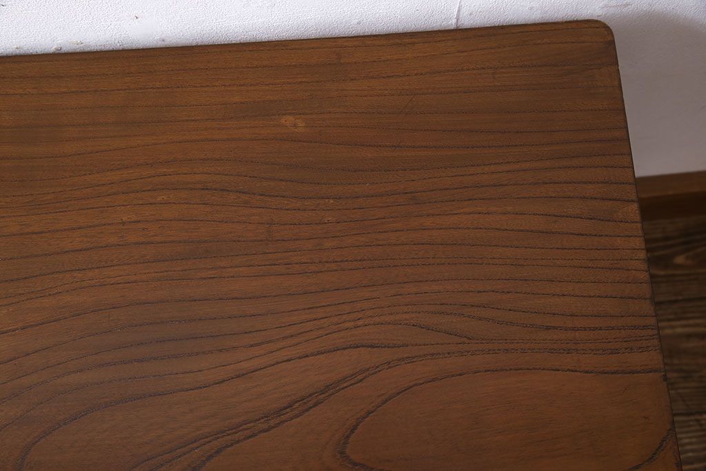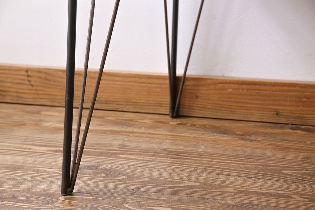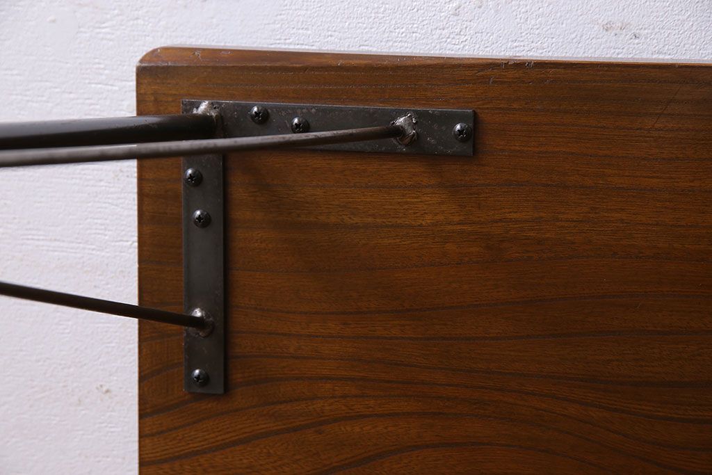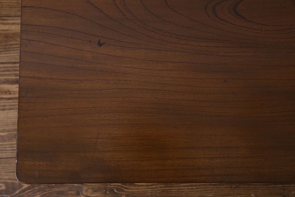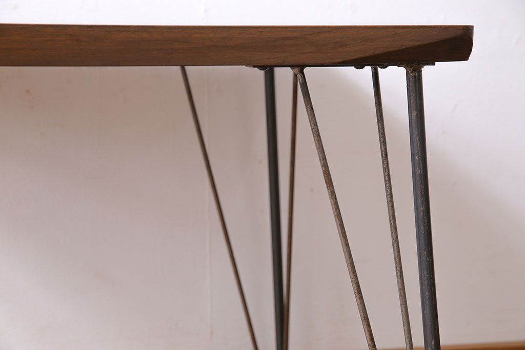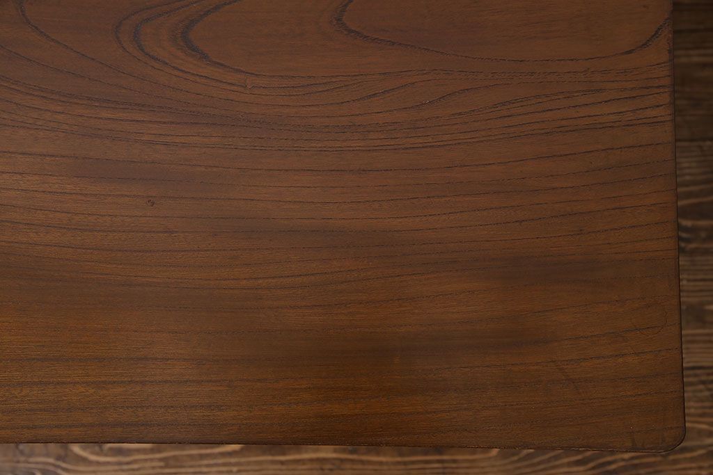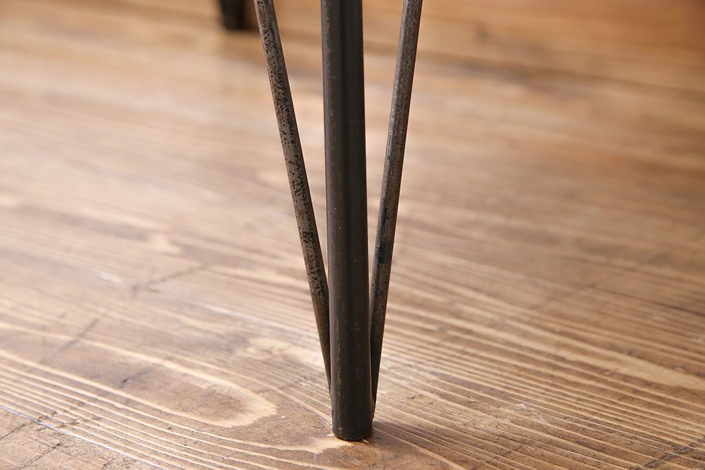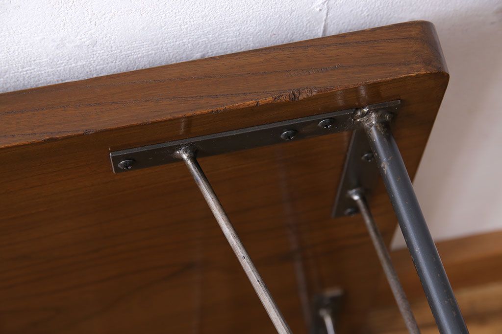 アンティーク家具 和製アンティーク 天板一枚板 ケヤキ材の木目が魅力的な鉄脚ローテーブル(サイドテーブル、カフェテーブル)