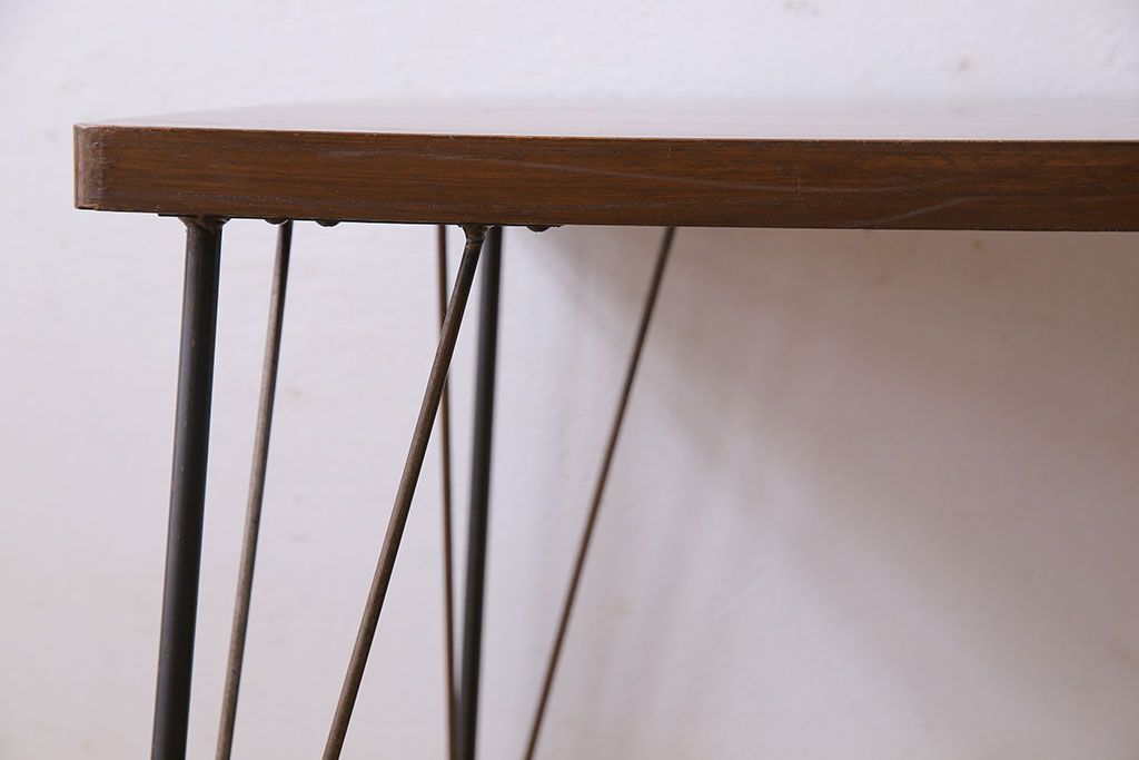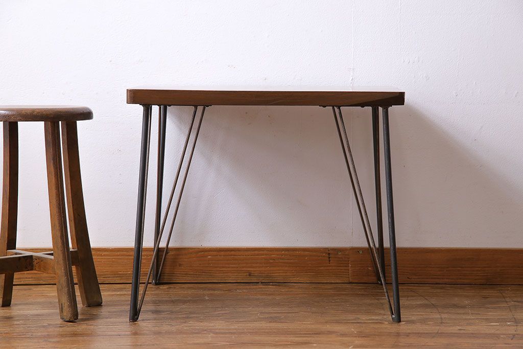 ラフジュ工房> テーブル> 鉄脚テーブル > アンティーク家具 和製アンティーク 天板一枚板 ケヤキ材の木目が魅力的な鉄脚ローテーブル(サイドテーブル、カフェテーブル)